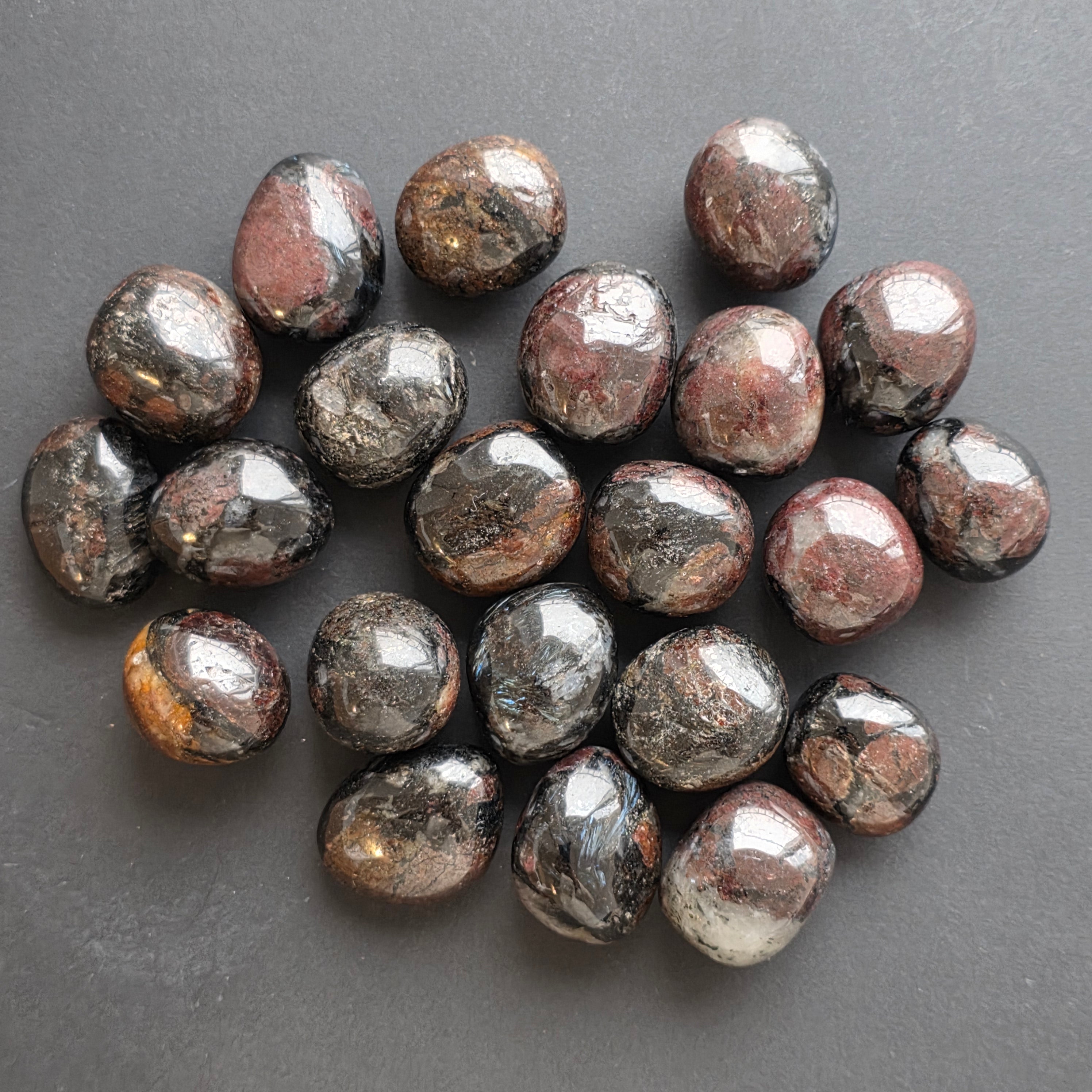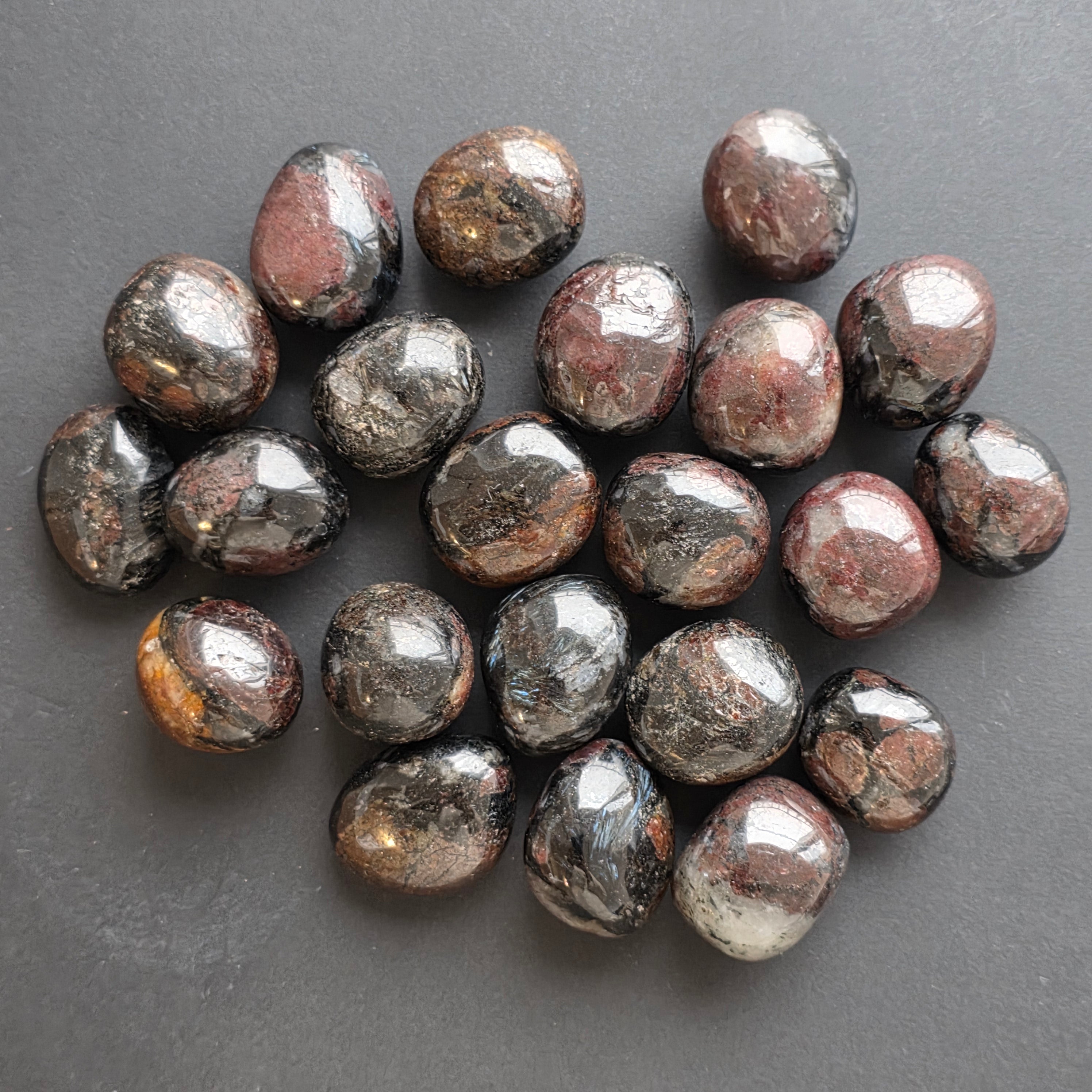 A gránáttal kombinált antofilit ritka ásványi kombináció, amely akkor képződik, amikor az antofilit rostos kristályai a vöröses-barna gránáttal együtt növekednek. Esztétikailag és energetikailag is értékes darab, amely belső stabilitással, bátorsággal és döntésképességgel társul. A gránát felerősíti az antofilit szerkezetét, biztosítva egy stabil, védelmező energiát, ami alkalmas meditációhoz, valamint azok számára, akik ellenálló képességet és erőt keresnek átalakulási időszakokban.
