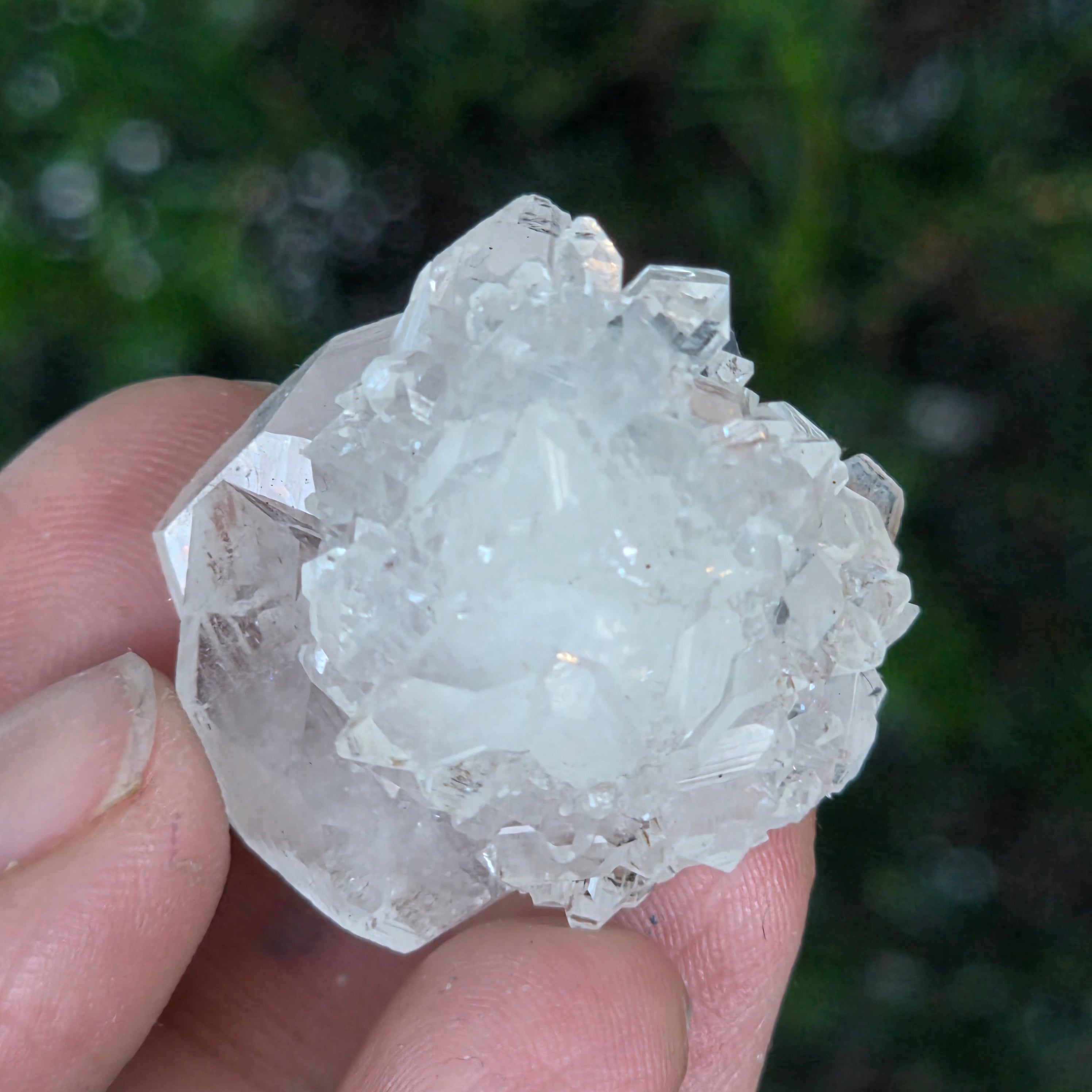 A bazaltos kövek mélyéből született, ott, ahol a természet csendben formázza tökéletes alakjait, ez a apofilit klaszter magában hordozza a tiszta kristályok világosságát és nyugalmát.