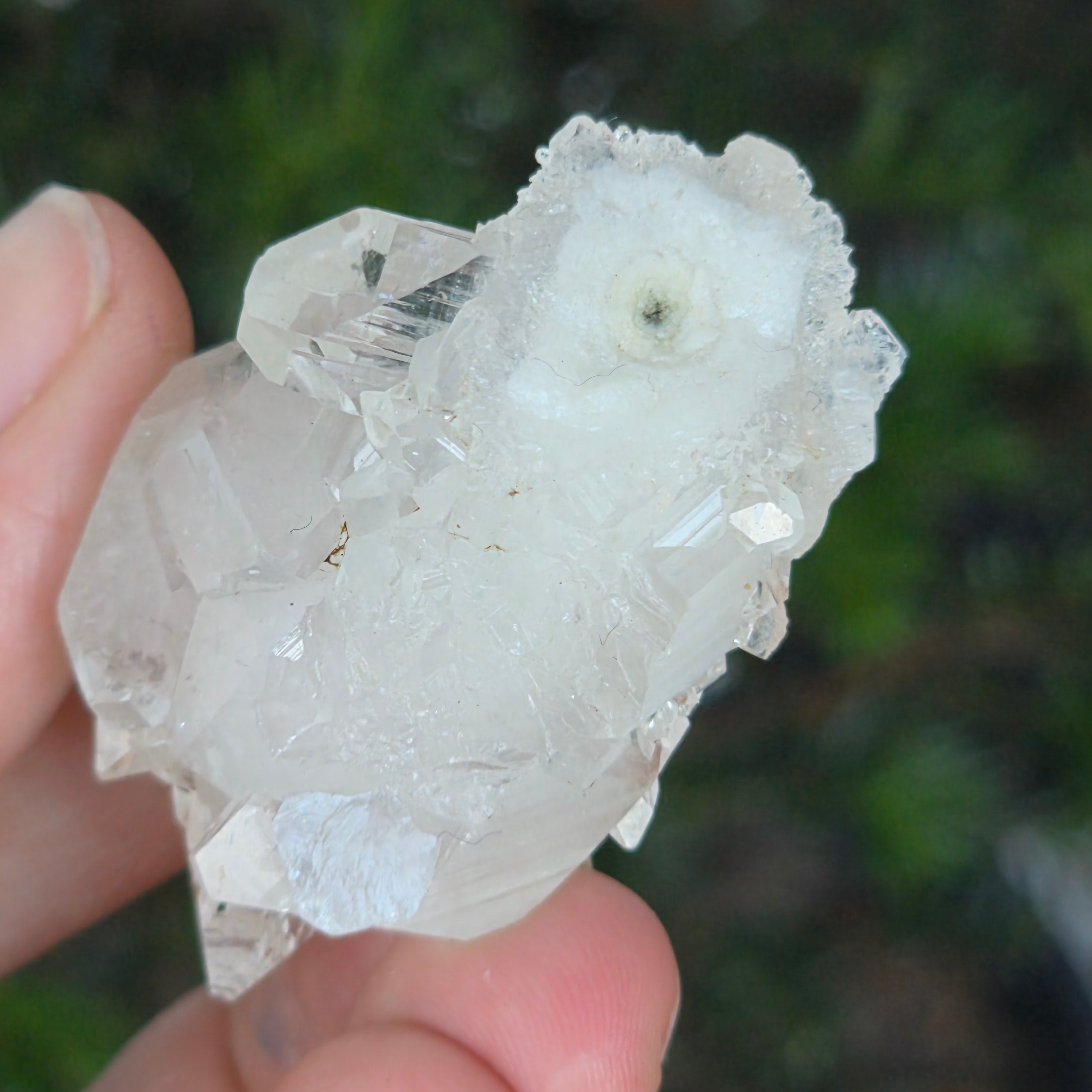 A bazaltos kövek mélyéből született, ott, ahol a természet csendben formázza tökéletes alakjait, ez a apofilit klaszter magában hordozza a tiszta kristályok világosságát és nyugalmát.
