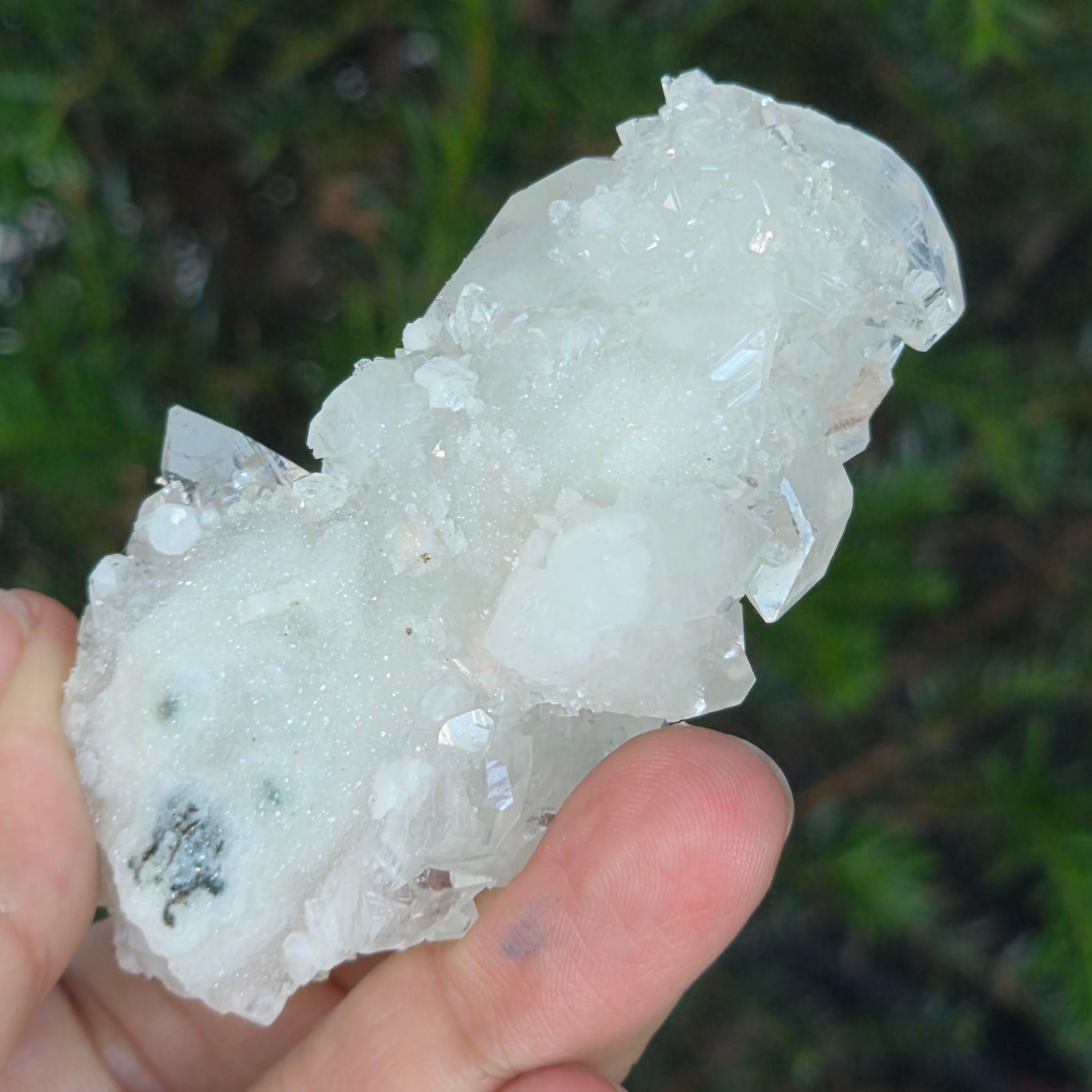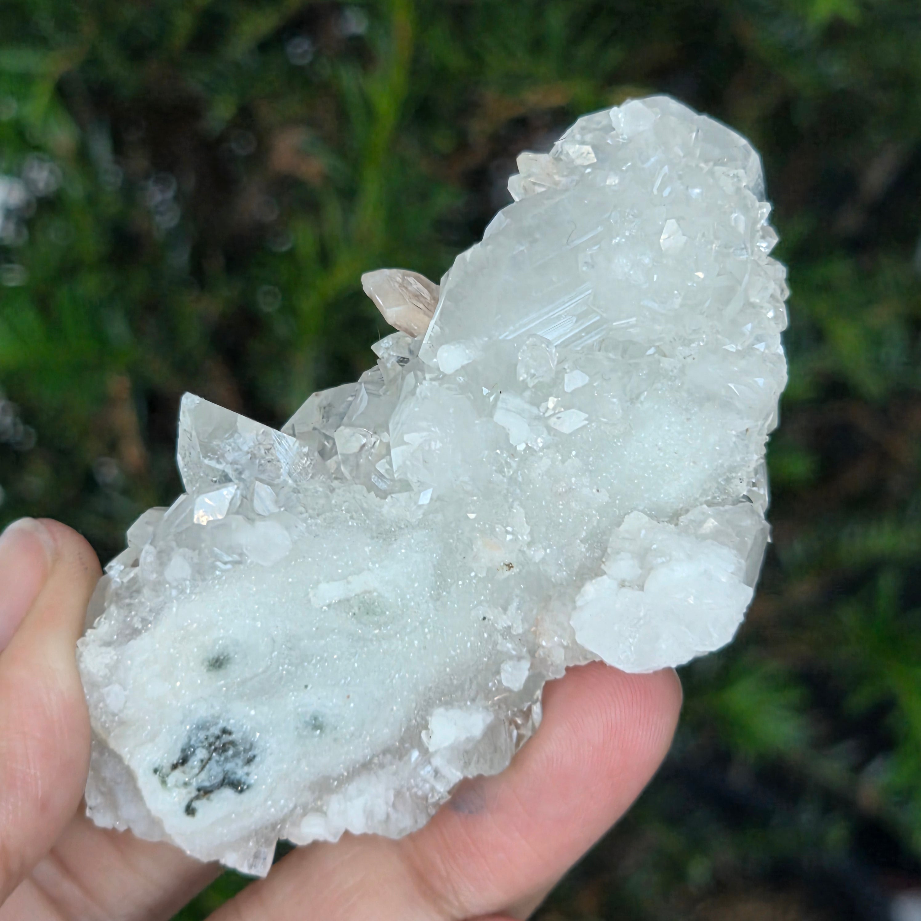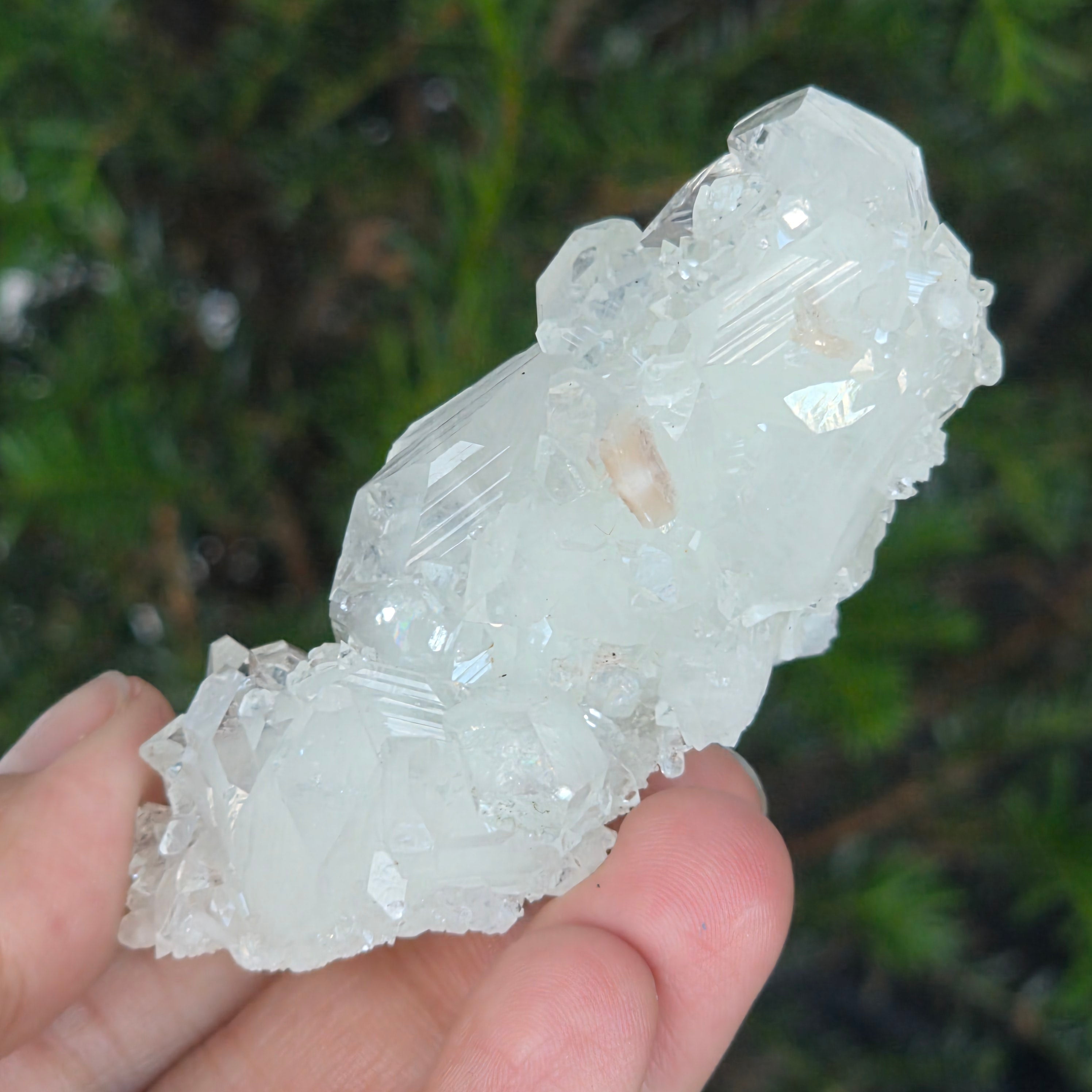 Bazaltsziklák mélyén született, ahol a természet csendben faragja tökéletes formáit, ez apofillit klaszter a tiszta kristályok tisztaságát és nyugalmát hordozza magában.