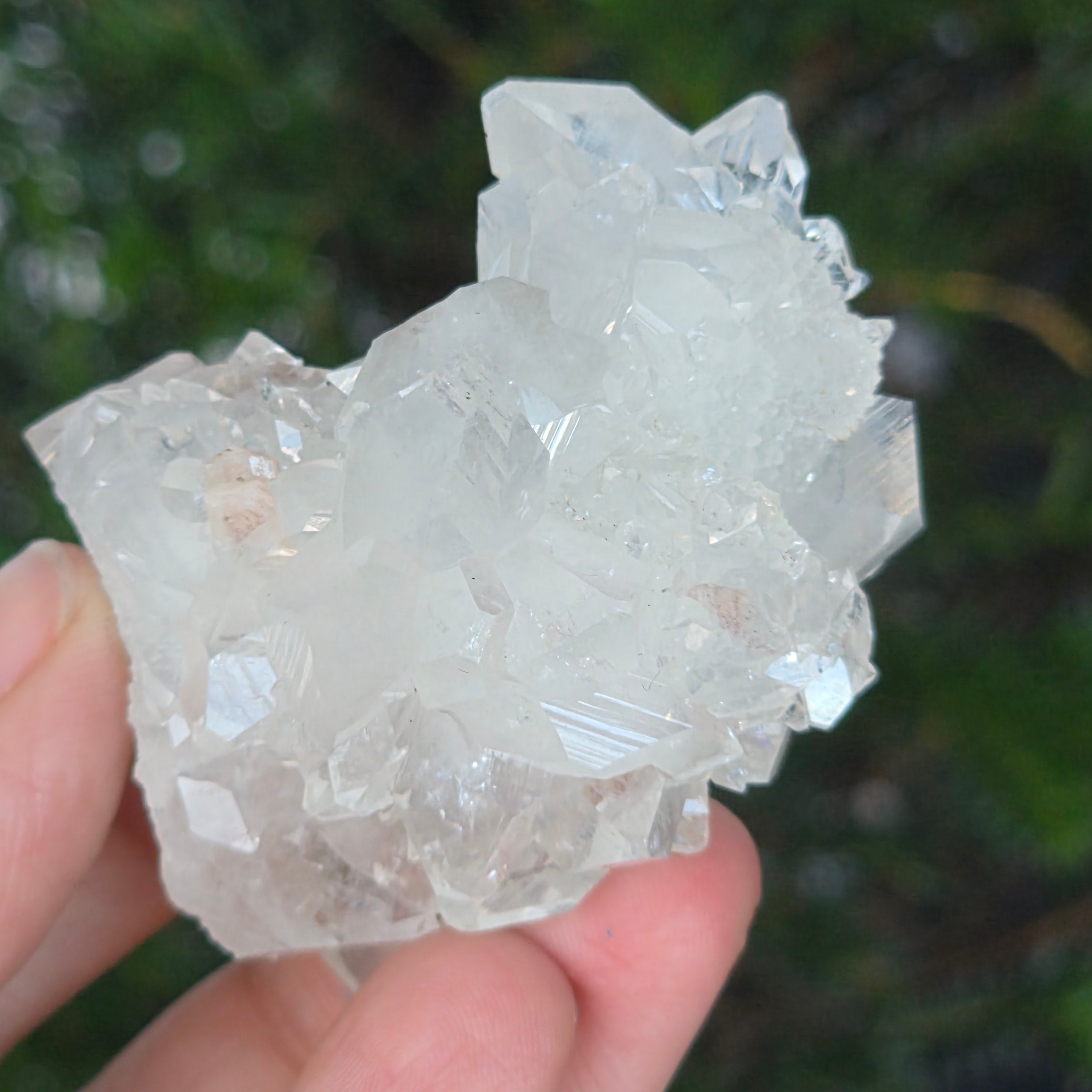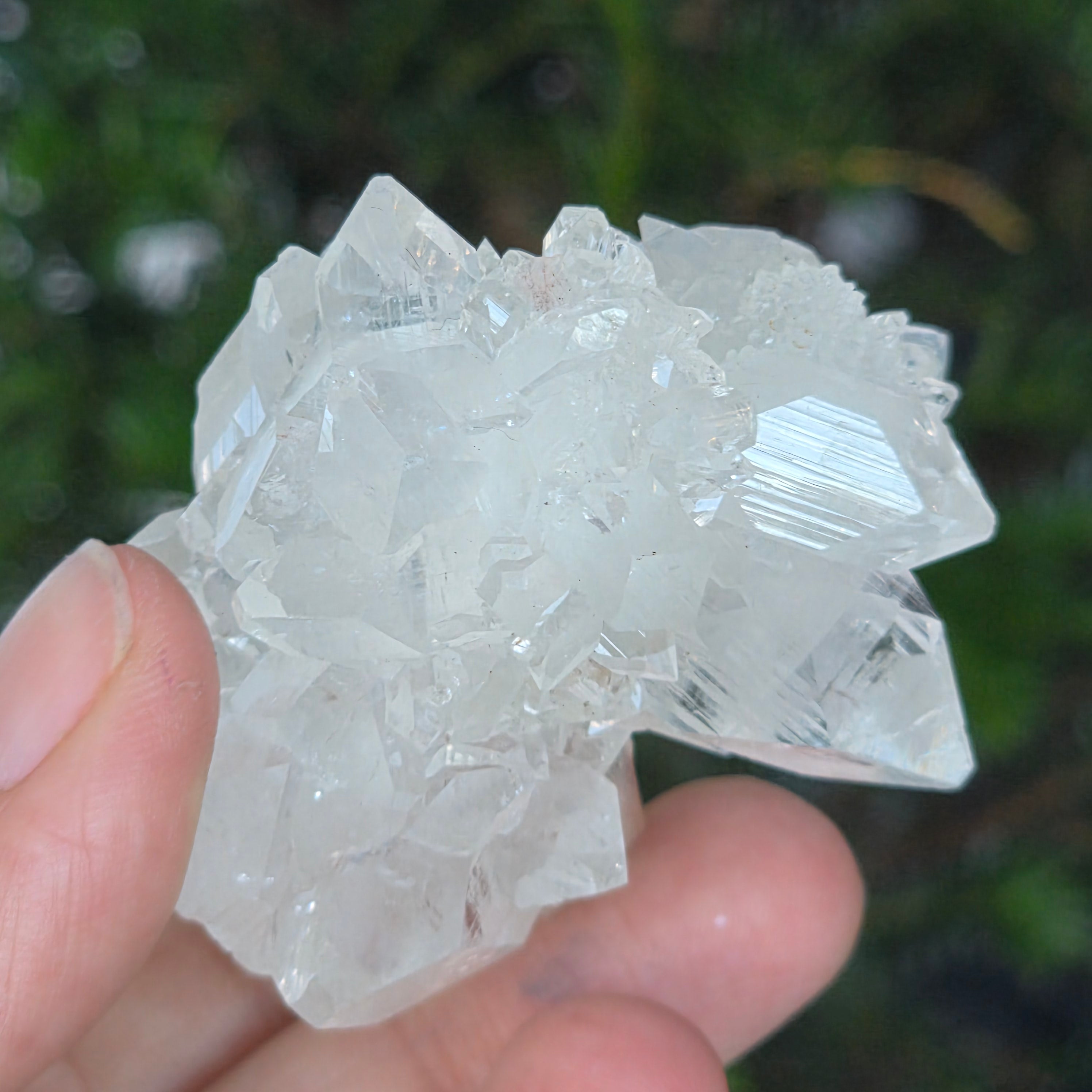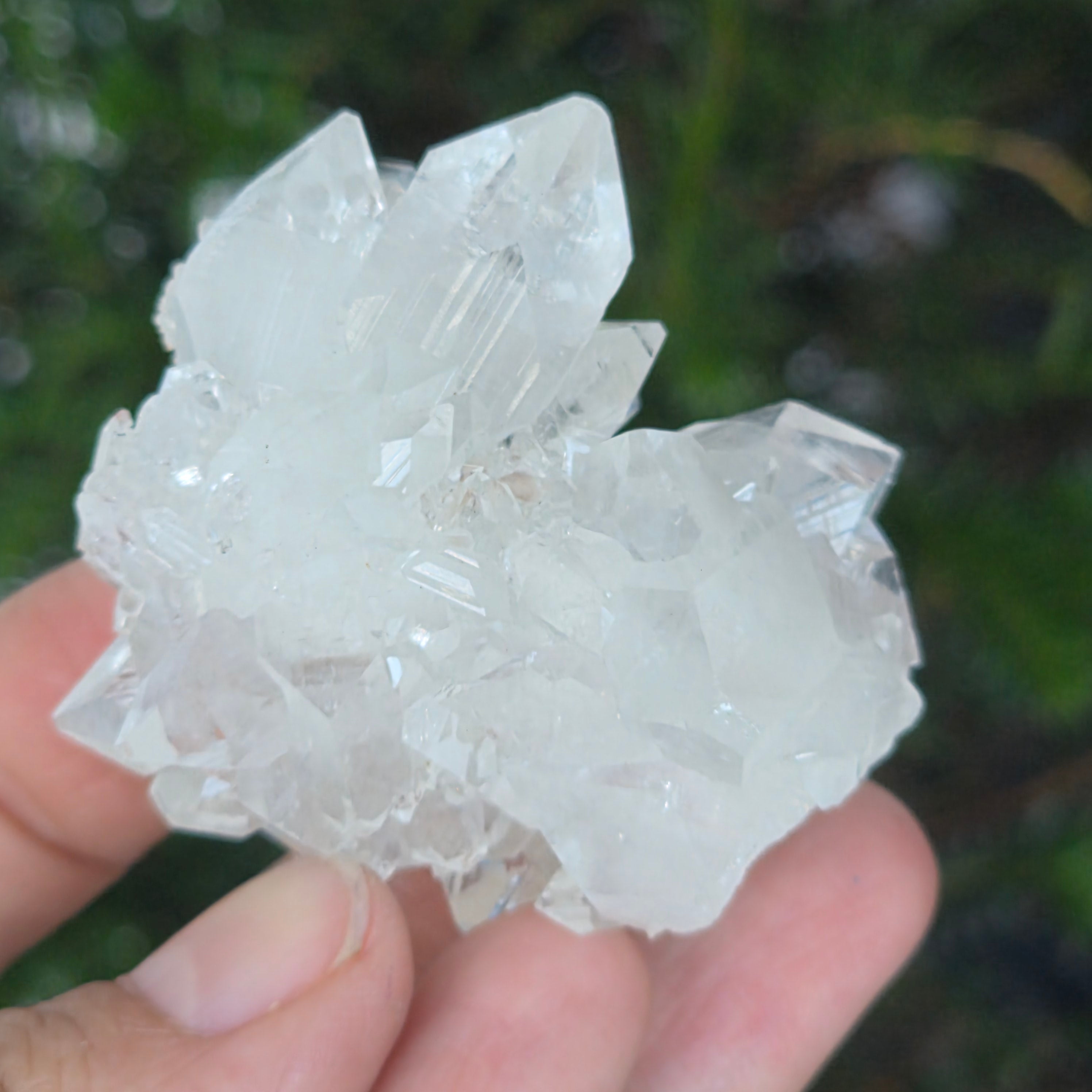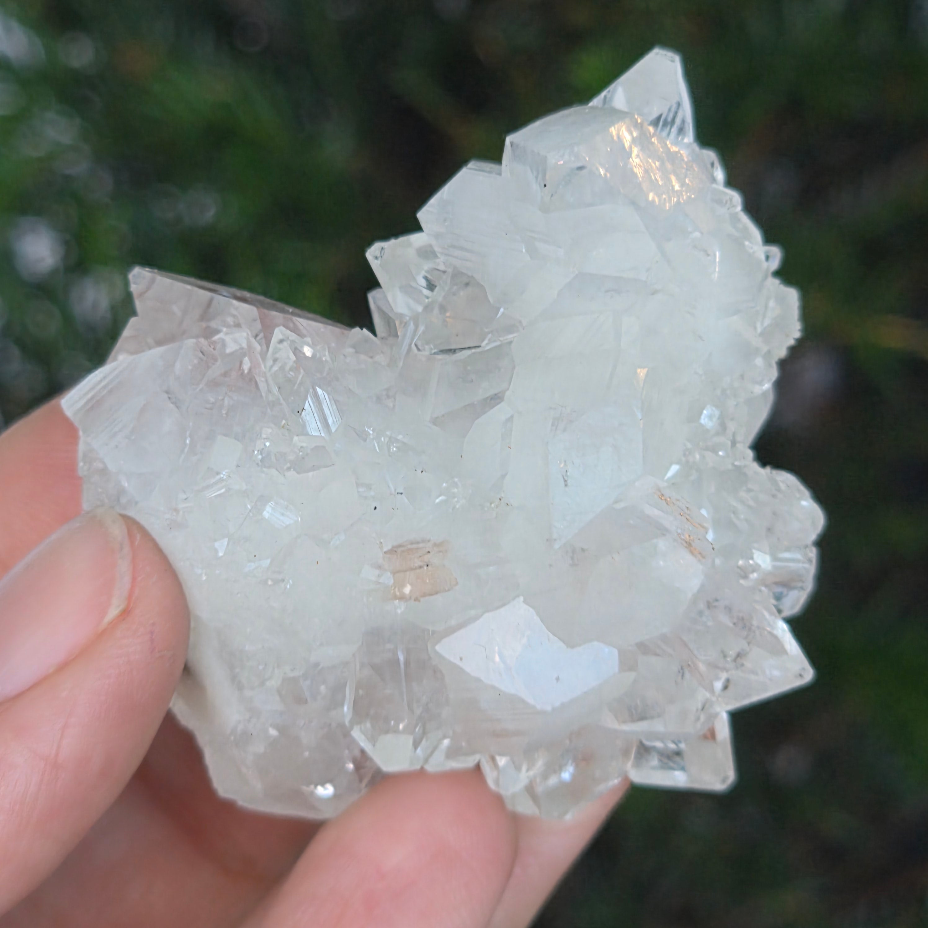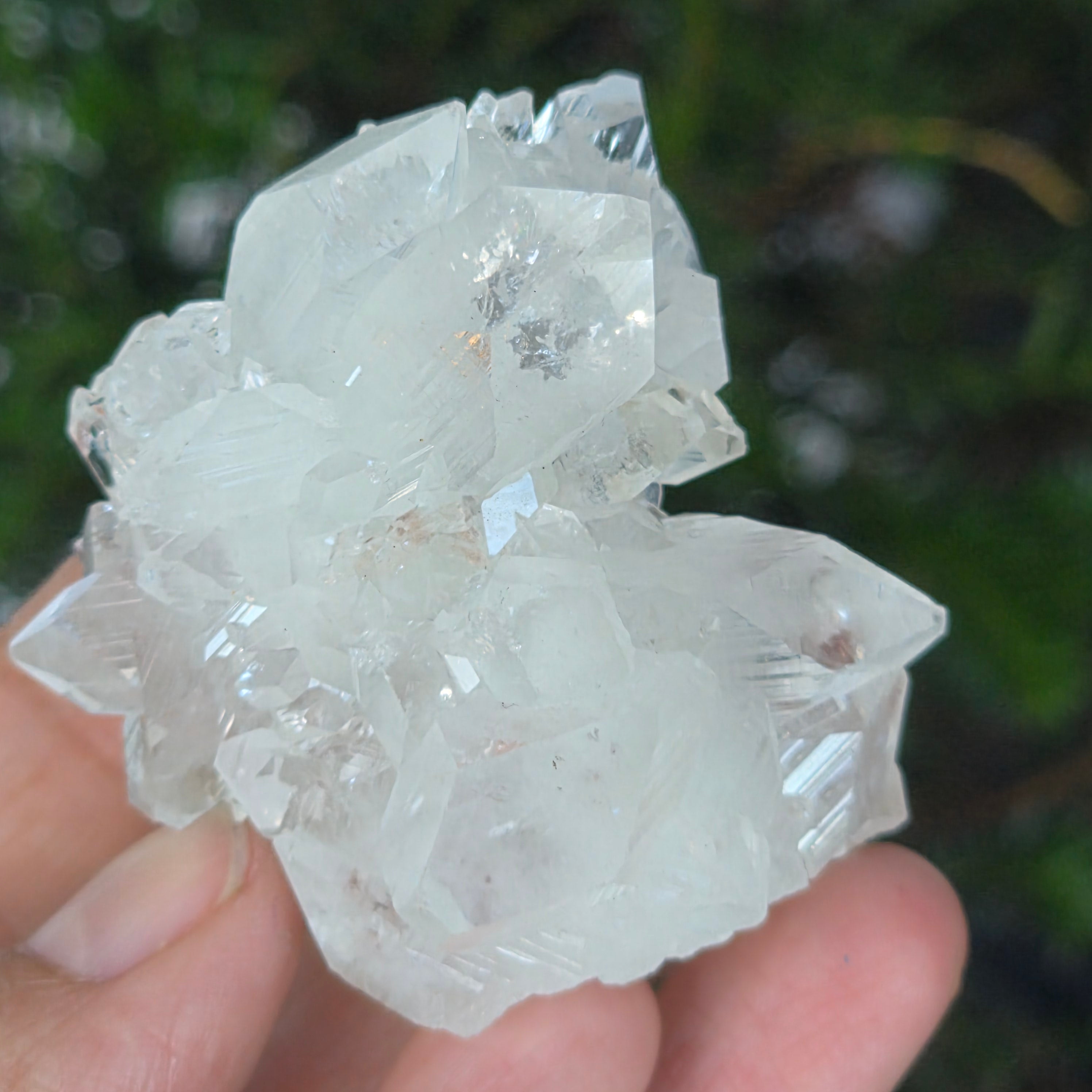 A minőségi apofilitt jellemzi a nagy átlátszóság, a tökéletes kristálygeometria és a tiszta rezgés — a geológiai és spirituális szépség ritka megnyilvánulása.