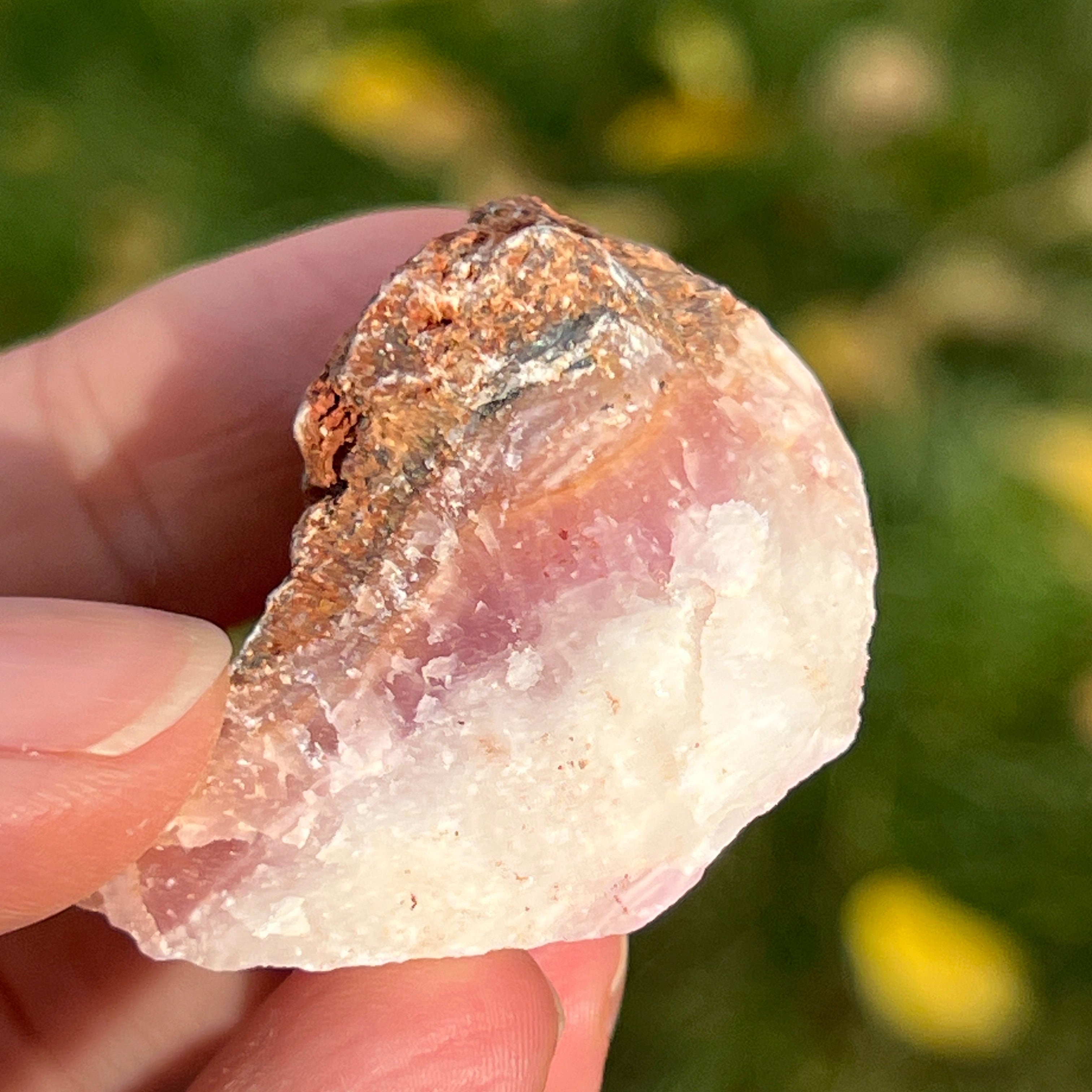 A rózsaszín aragonit ritkábban ismert féldrágakő. Kalciumkarbonátból áll, és rózsaszín-narancssárga színe van a vasszennyeződések miatt.