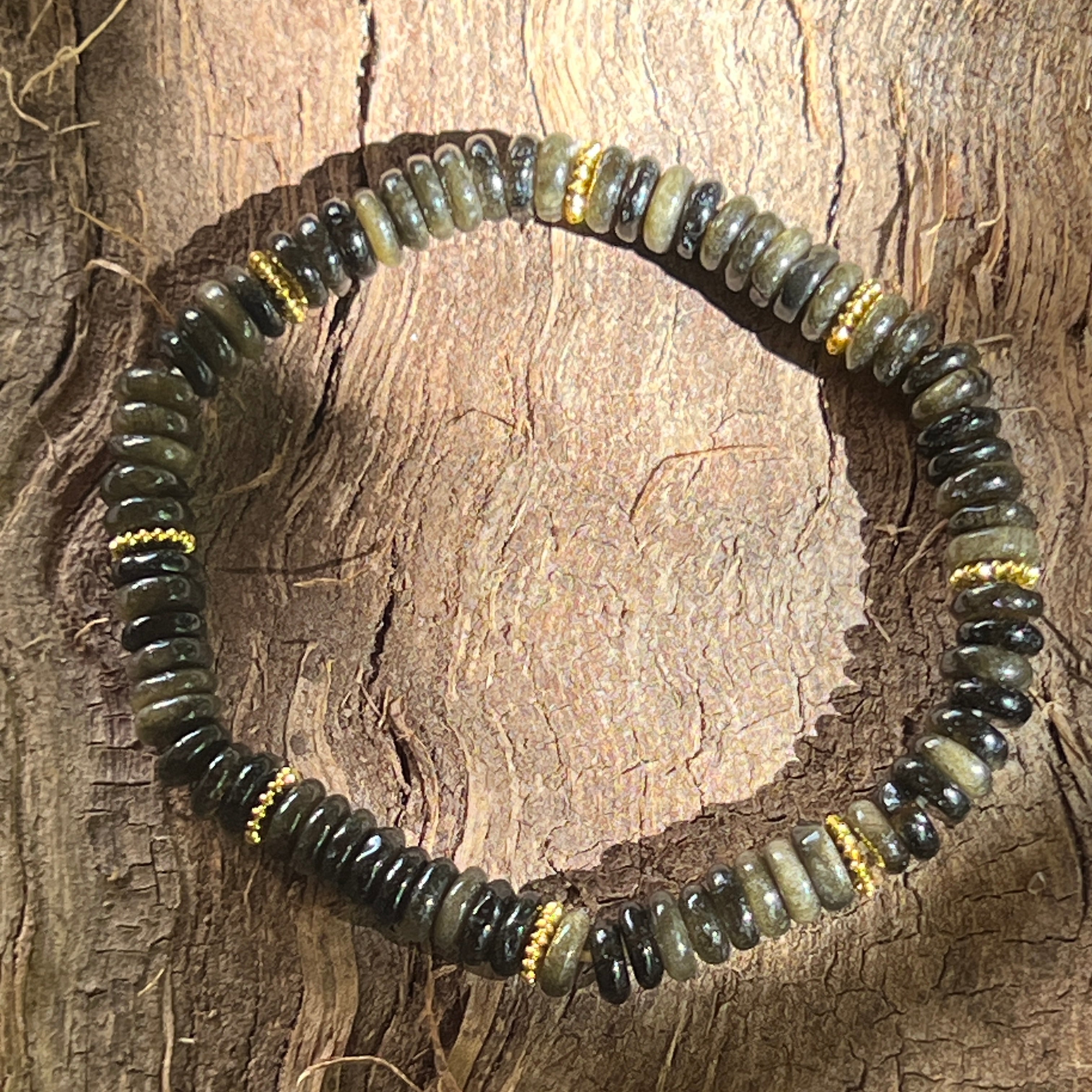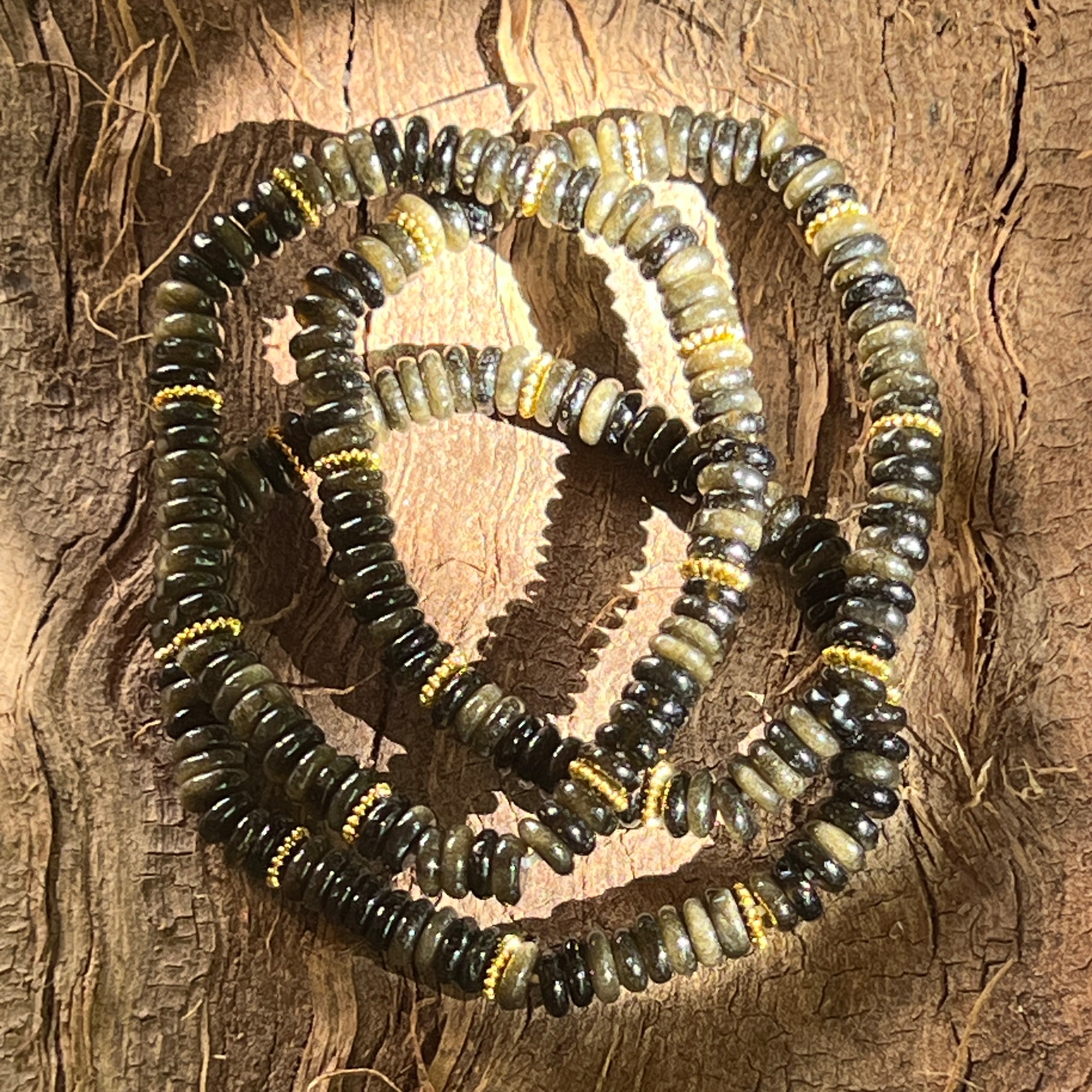 Arany obszidián korongokkal és arany berakásokkal díszített karkötő – 6x2 mm