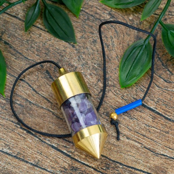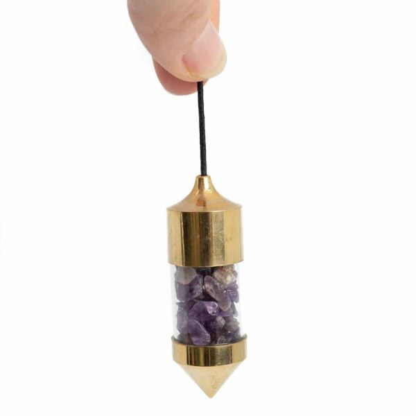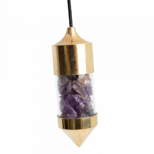 Descriere - Aranyozott fém inga ametiszt darabokkal