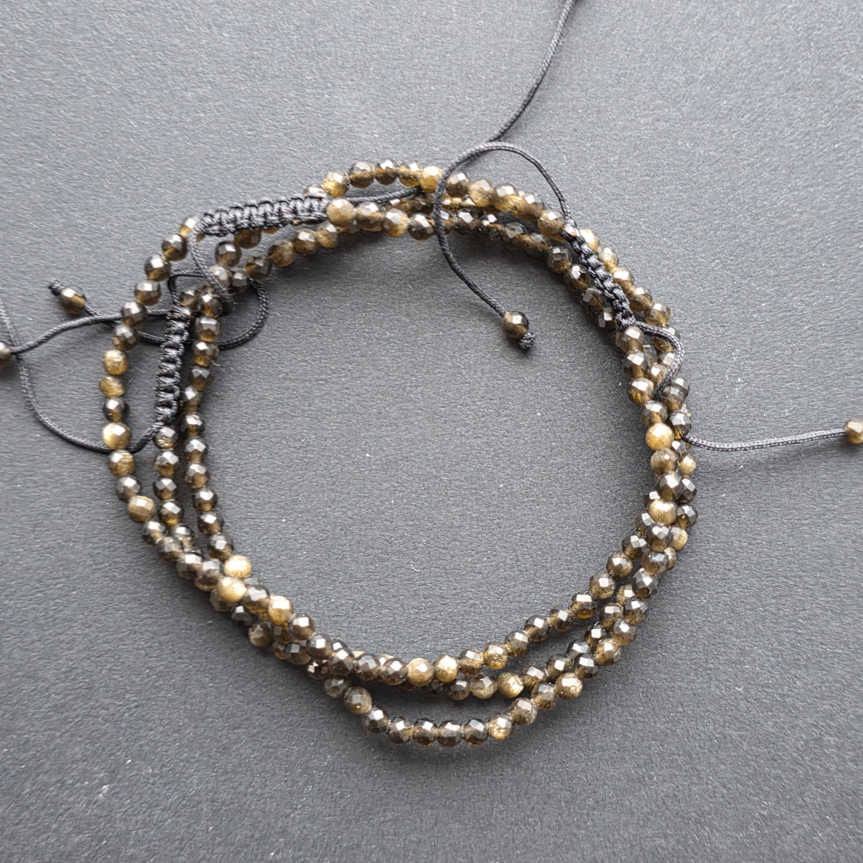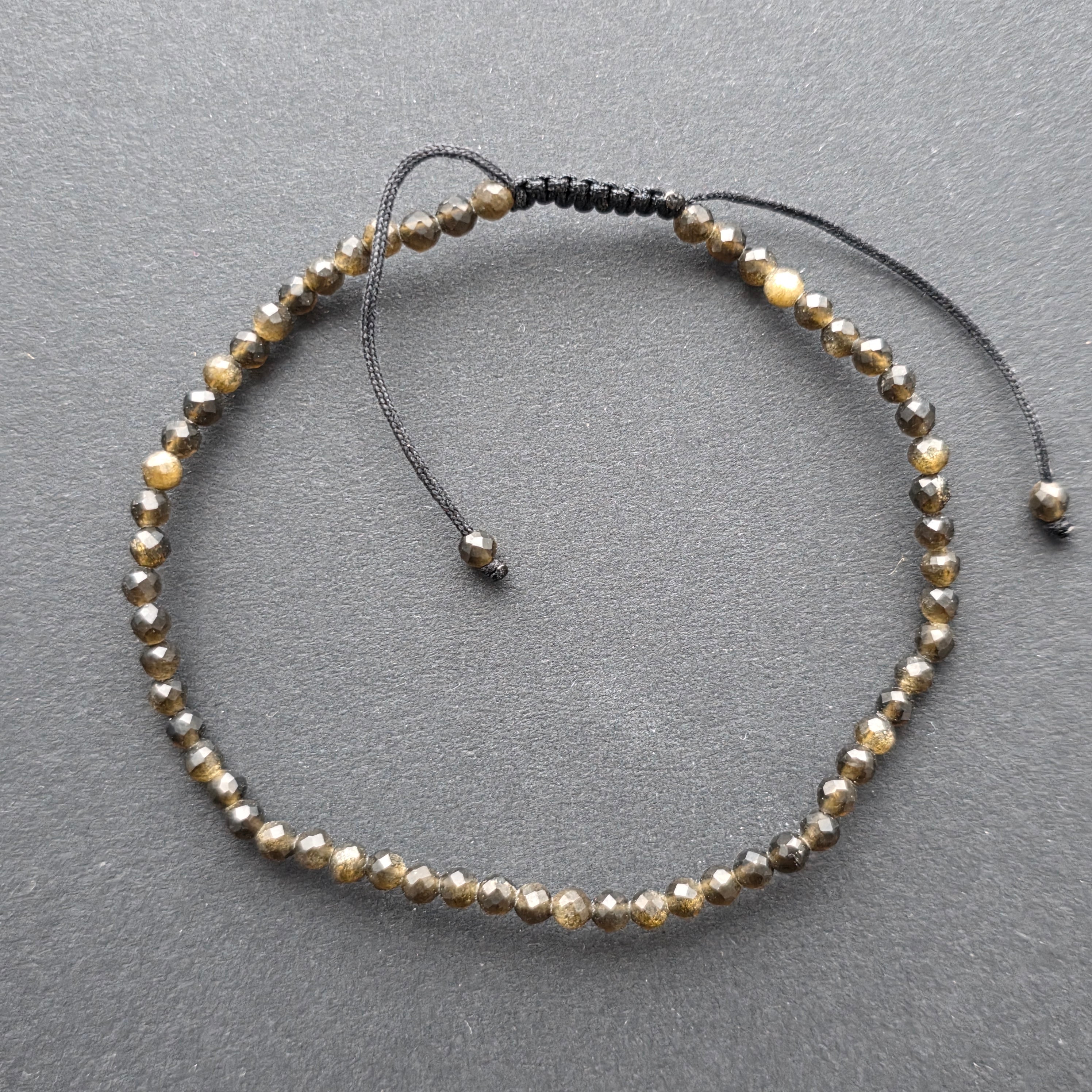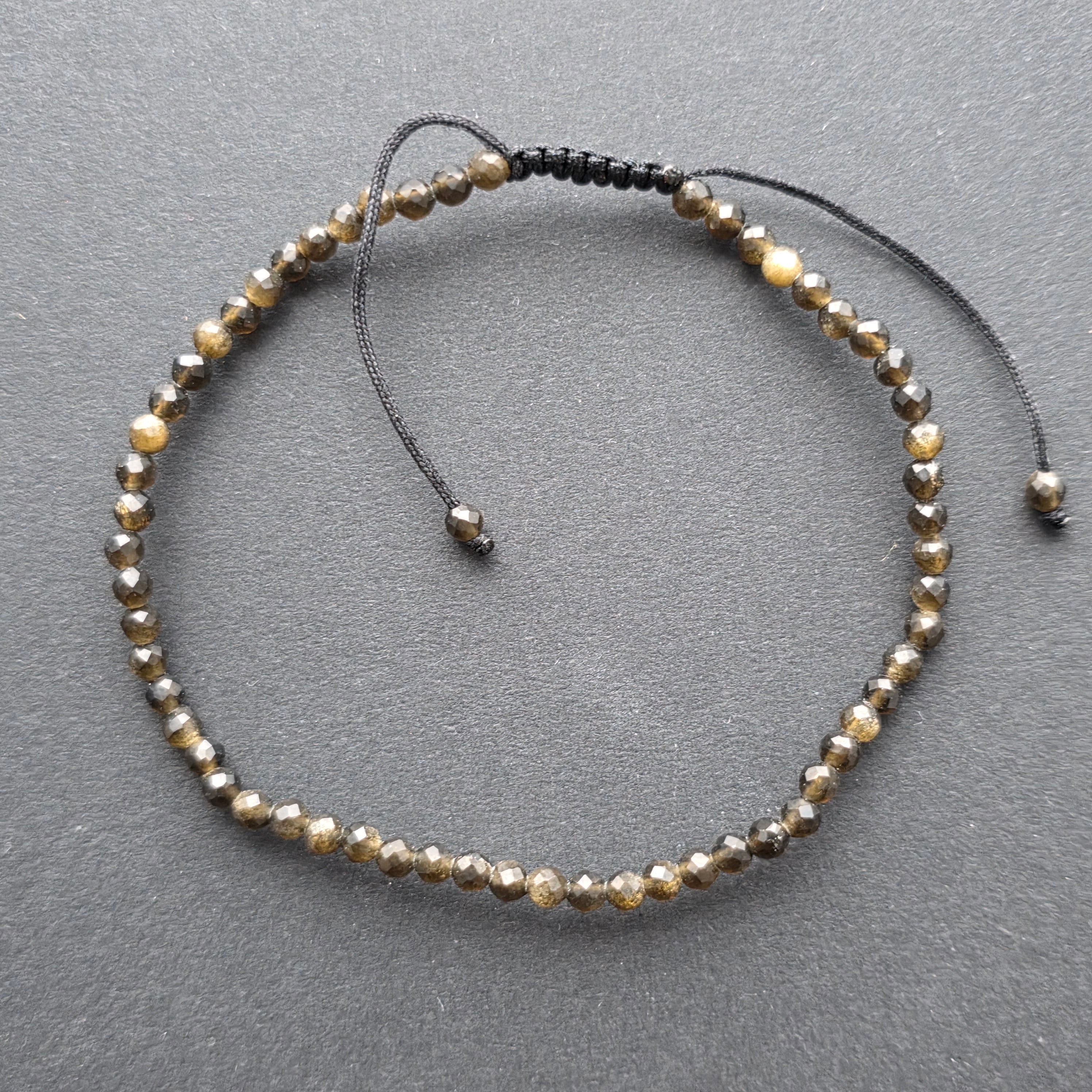 Descriere - Aranyszínű csiszolt obszidián karkötő, 3 mm, állítható zsinórral