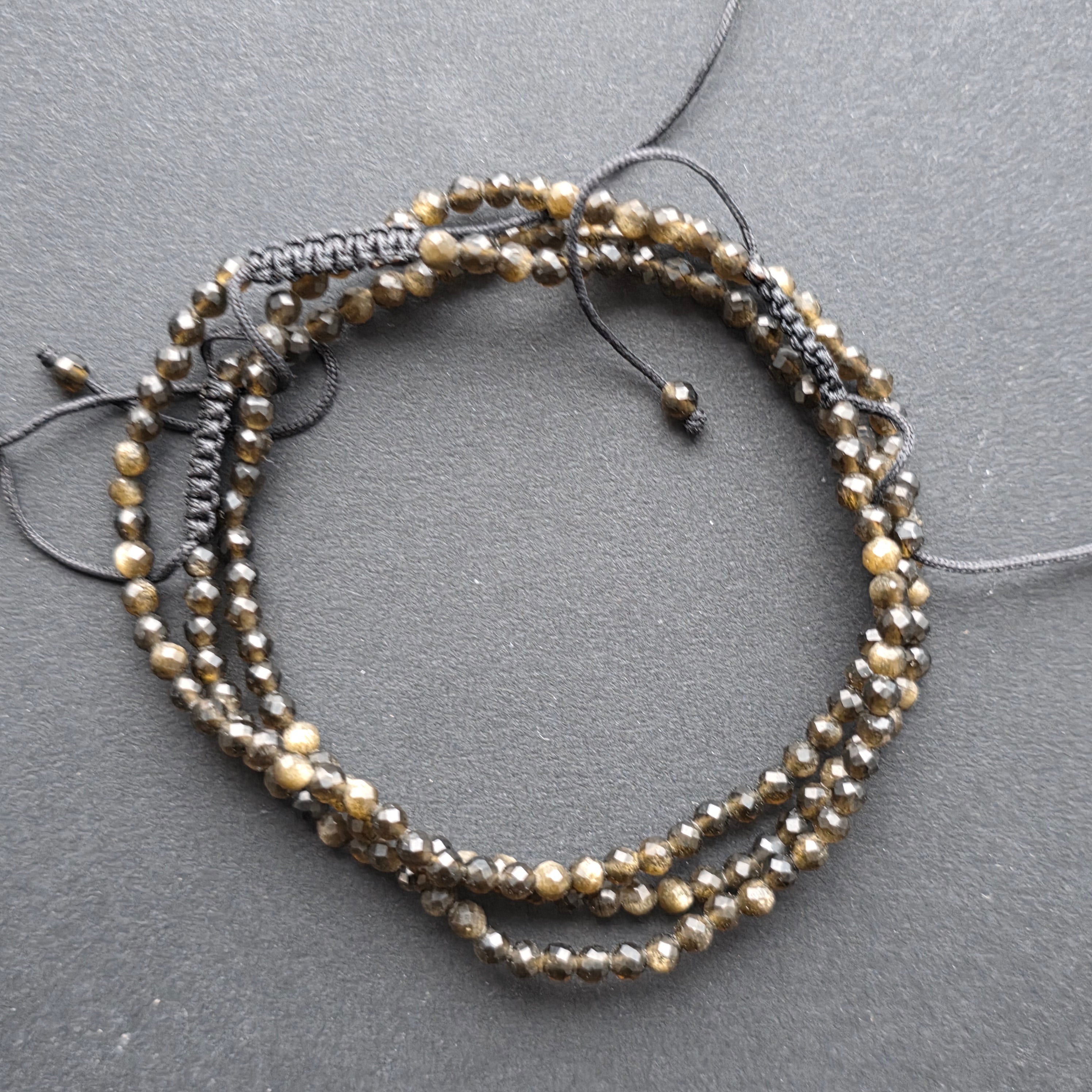 Vélemények - Aranyszínű csiszolt obszidián karkötő, 3 mm, állítható zsinórral