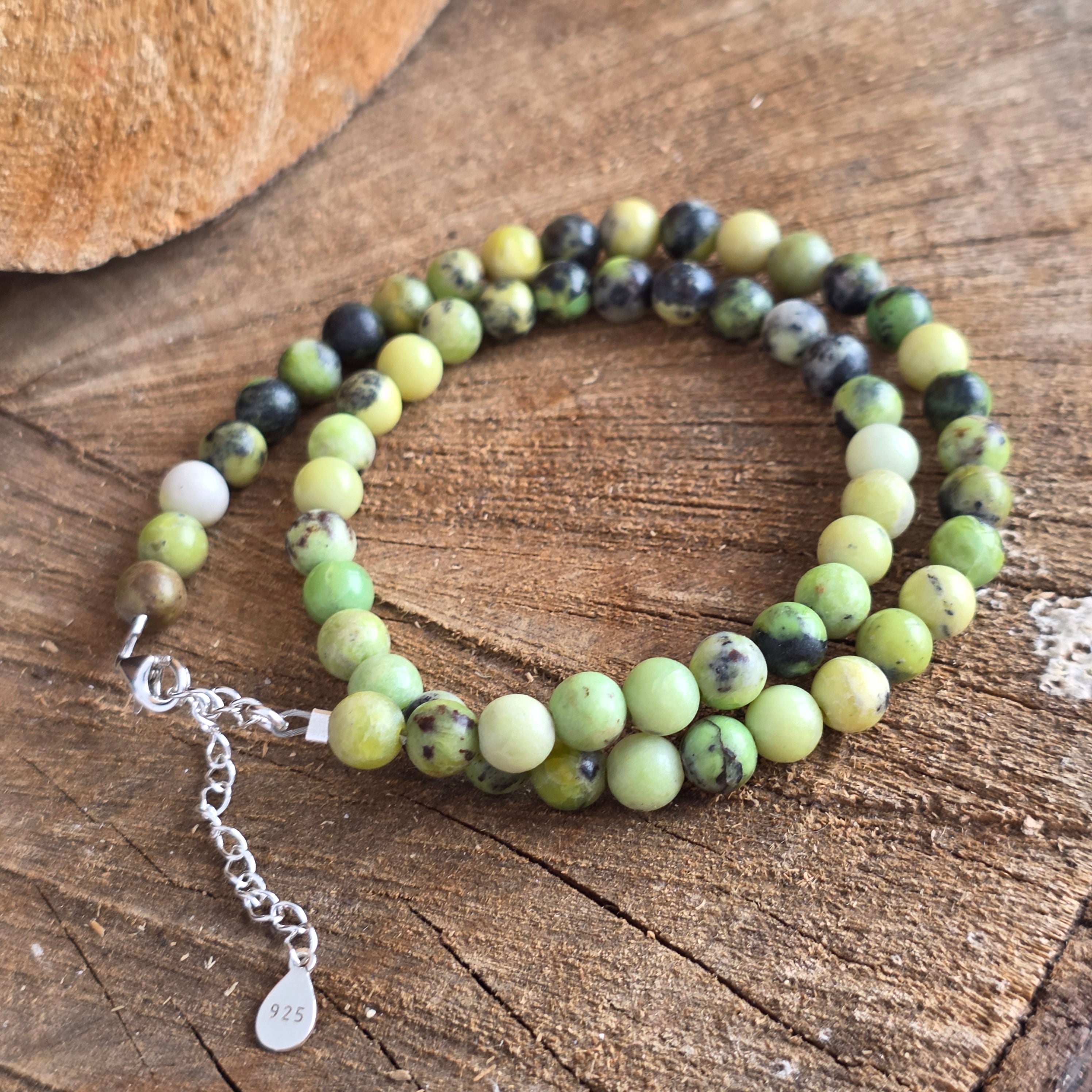 A zöld jáde a szívcsakrával áll kapcsolatban – a részvét, az elfogadás és a feltétel nélküli szeretet helye. Harmóniát, szerencsét és nyugalmat hoz, gyakran a nyugodt bőség és az energetikai védelem szimbólumaként viselik.