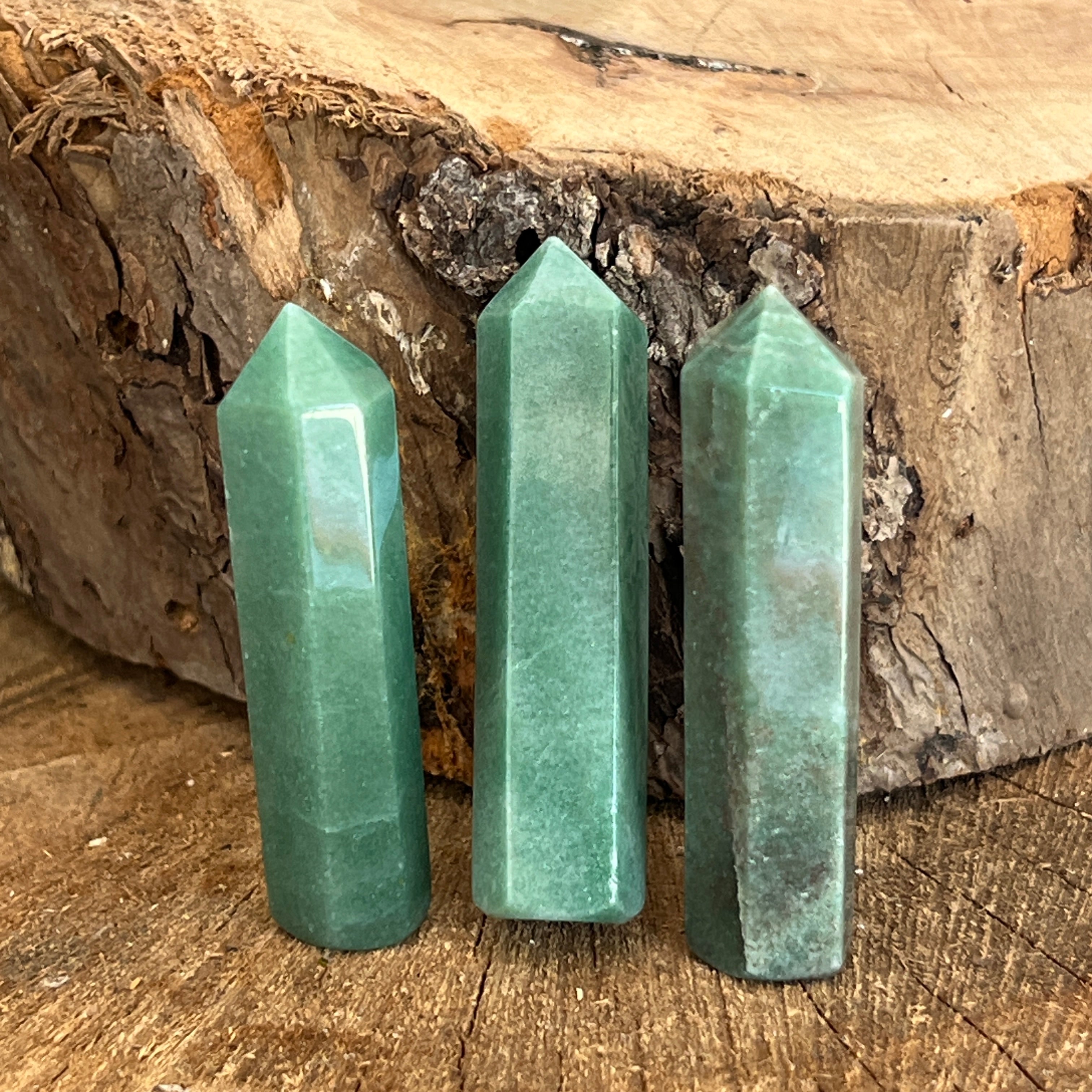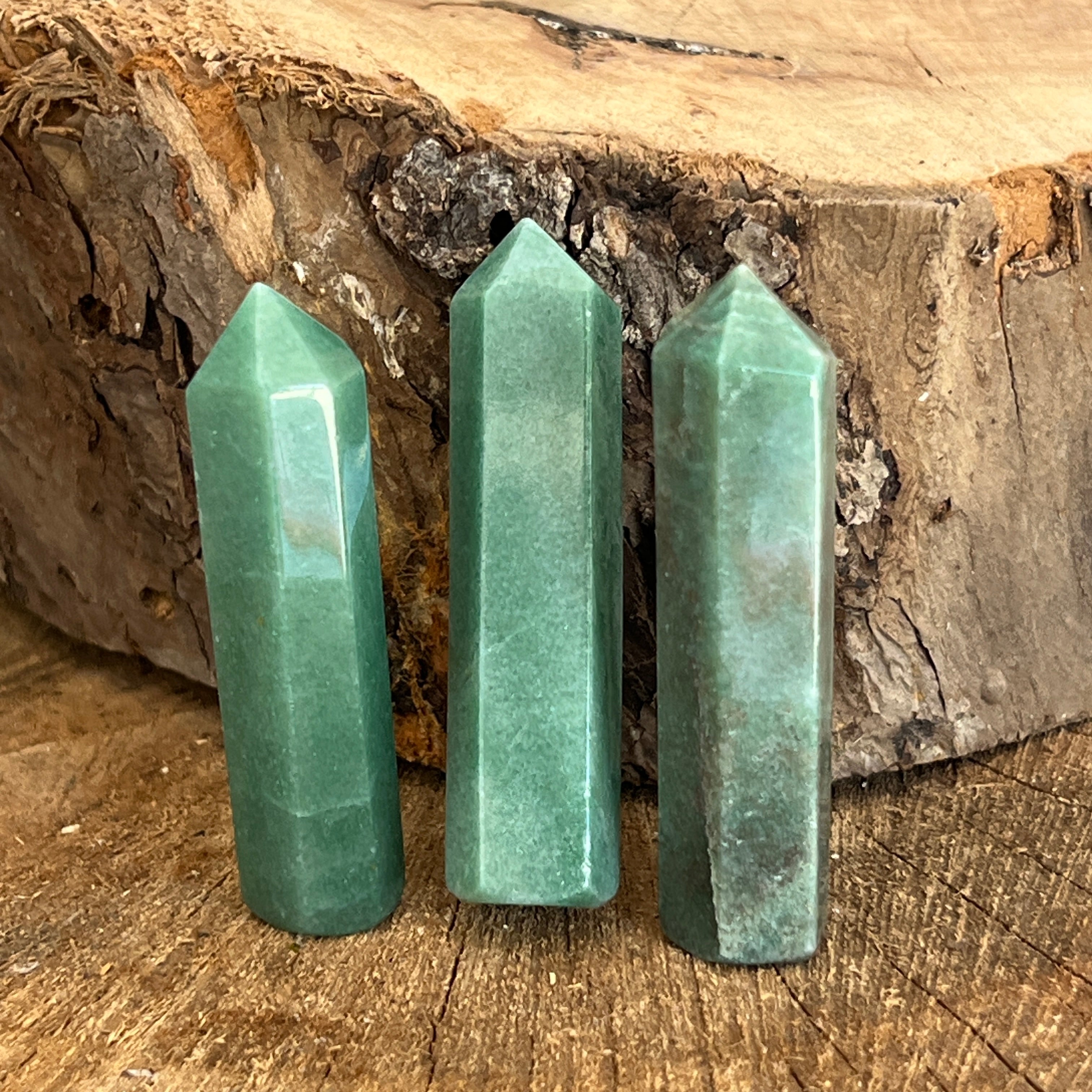 A zöld aventurin obeliszk elegáns formáját ötvözi a kő nyugodt és revitalizáló energiájával, a növekedés és harmónia szimbóluma.