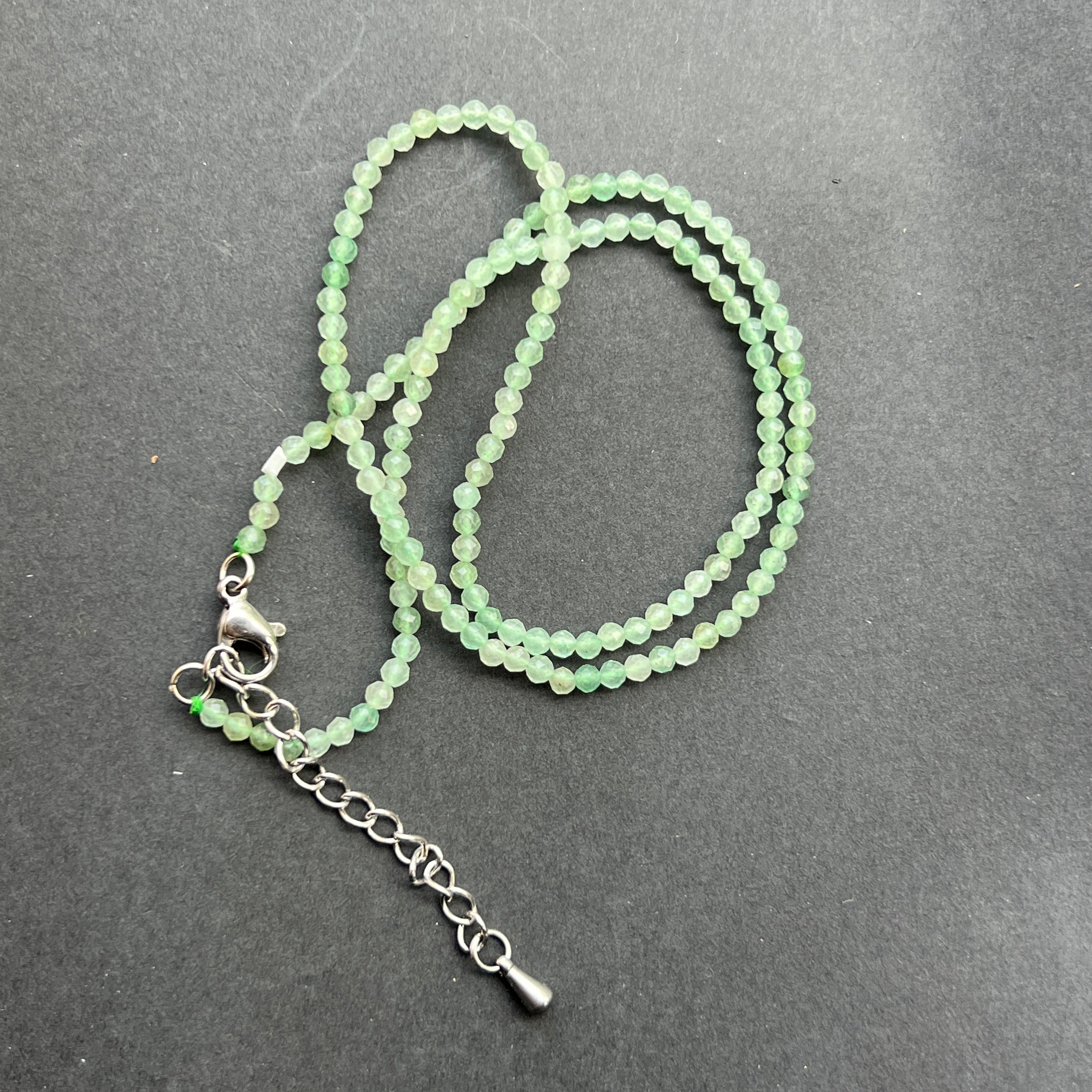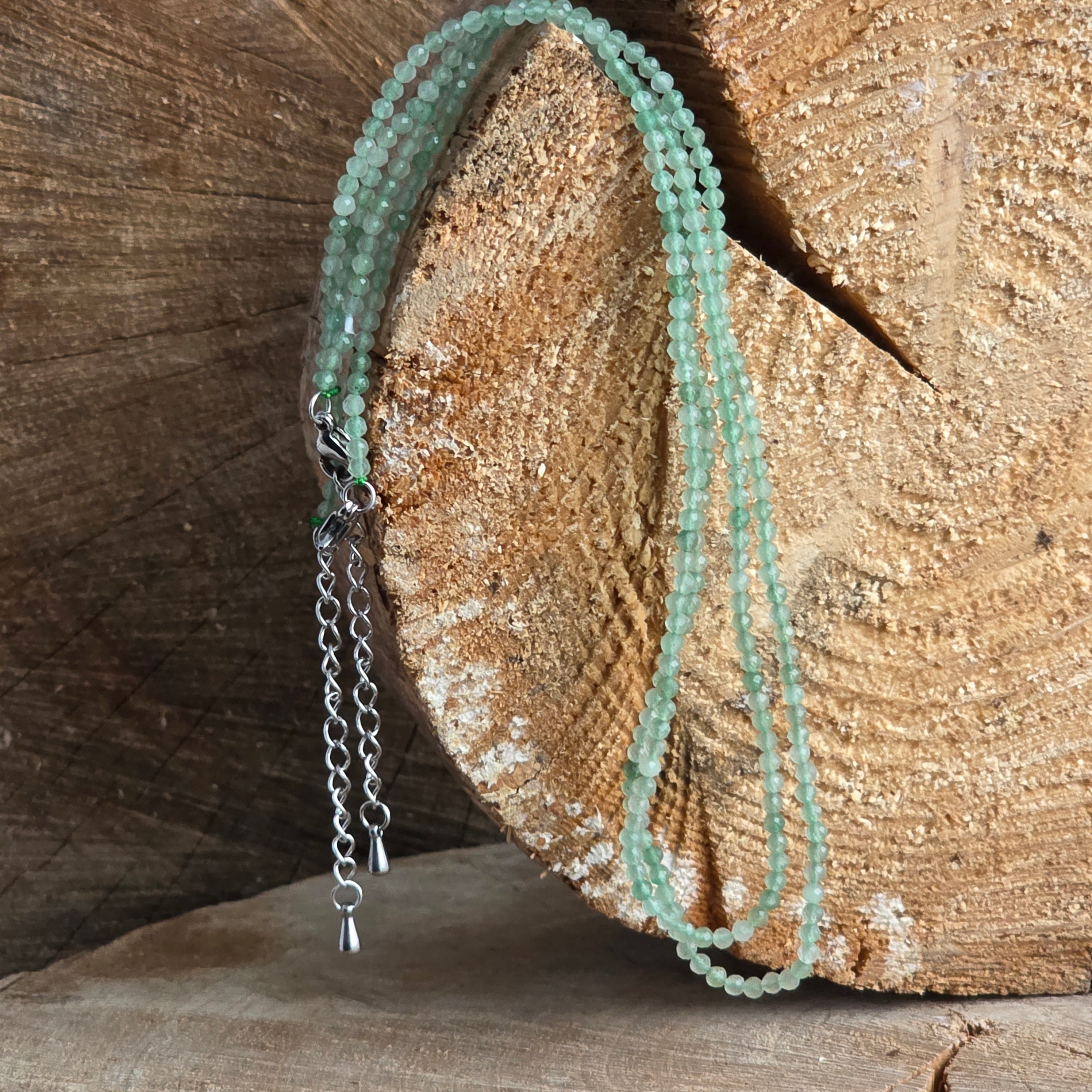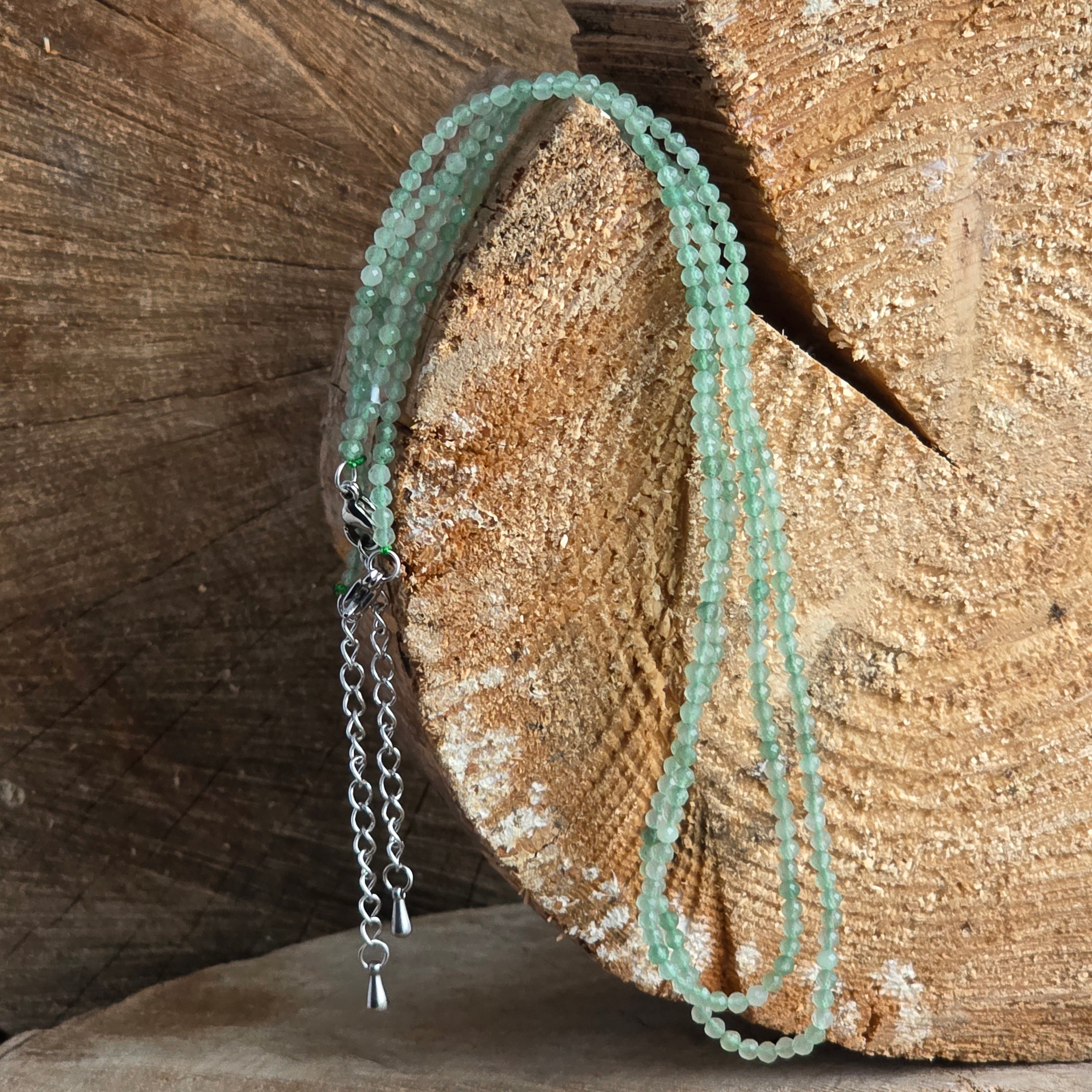 Aventurinkarkötő 2 mm-es gyöngyökkel, mérete: 38 + 5 cm (hosszabbító lánc)