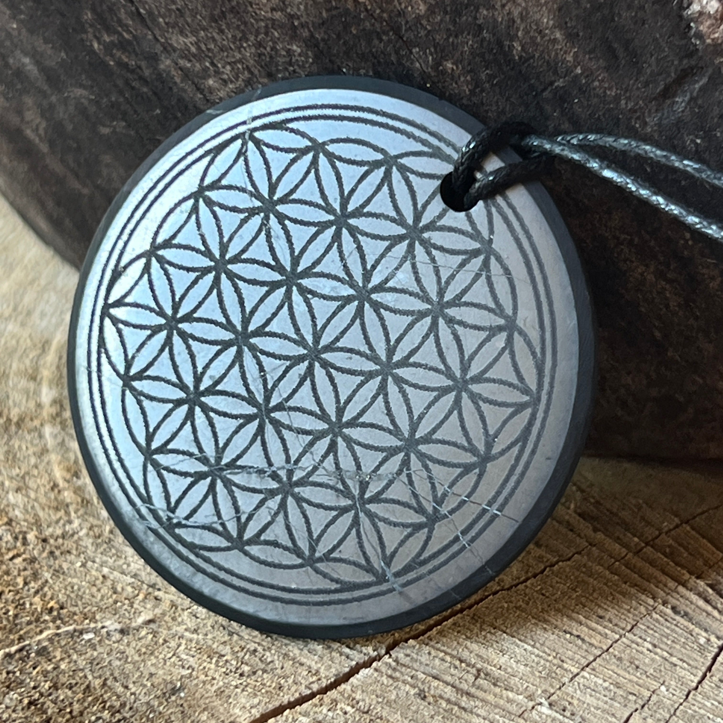 A Life virága (Flower of Life)szimbólummal kombinálva a shungit energetikai harmonizáló és szent egyensúly eszközévéválik, támogatóan hat: