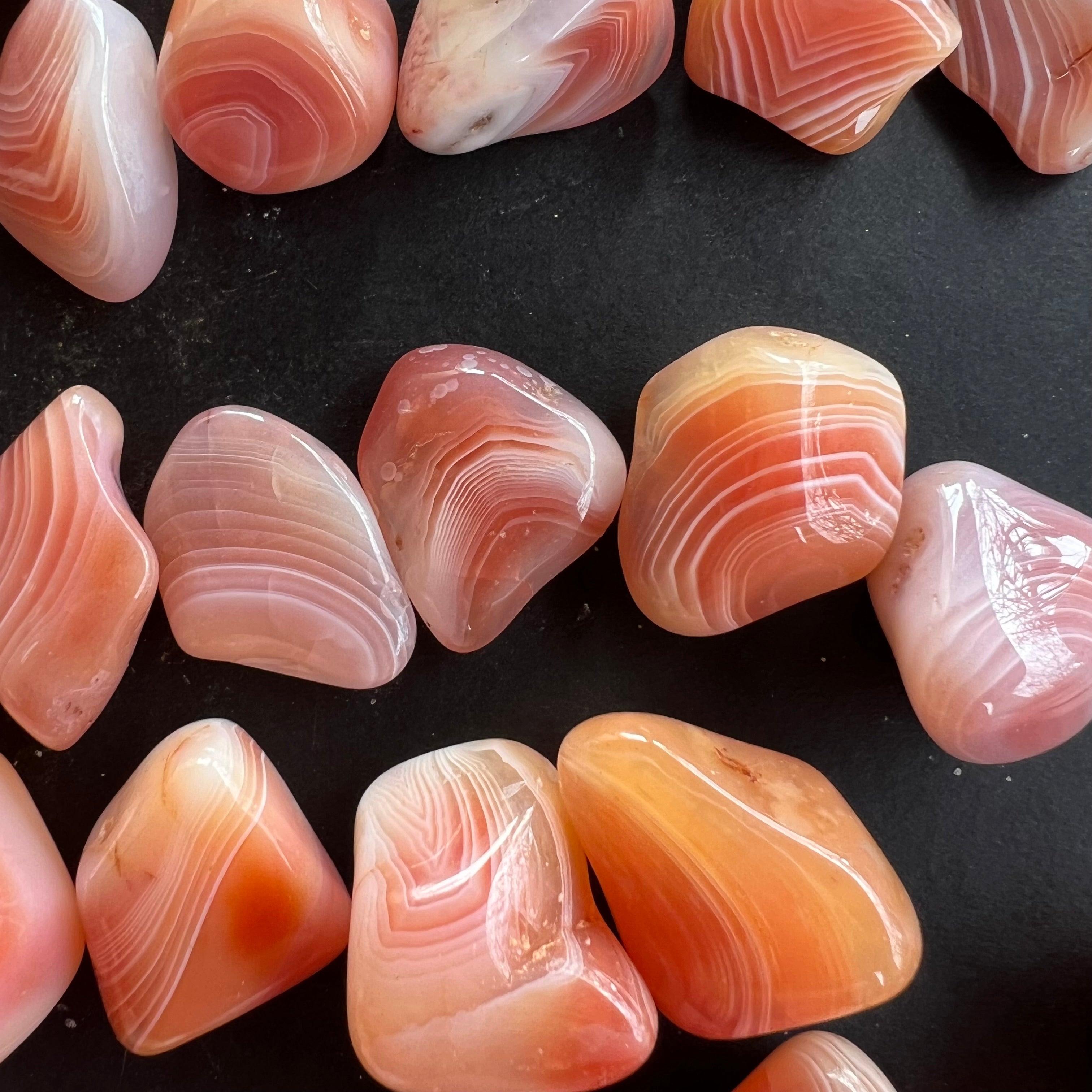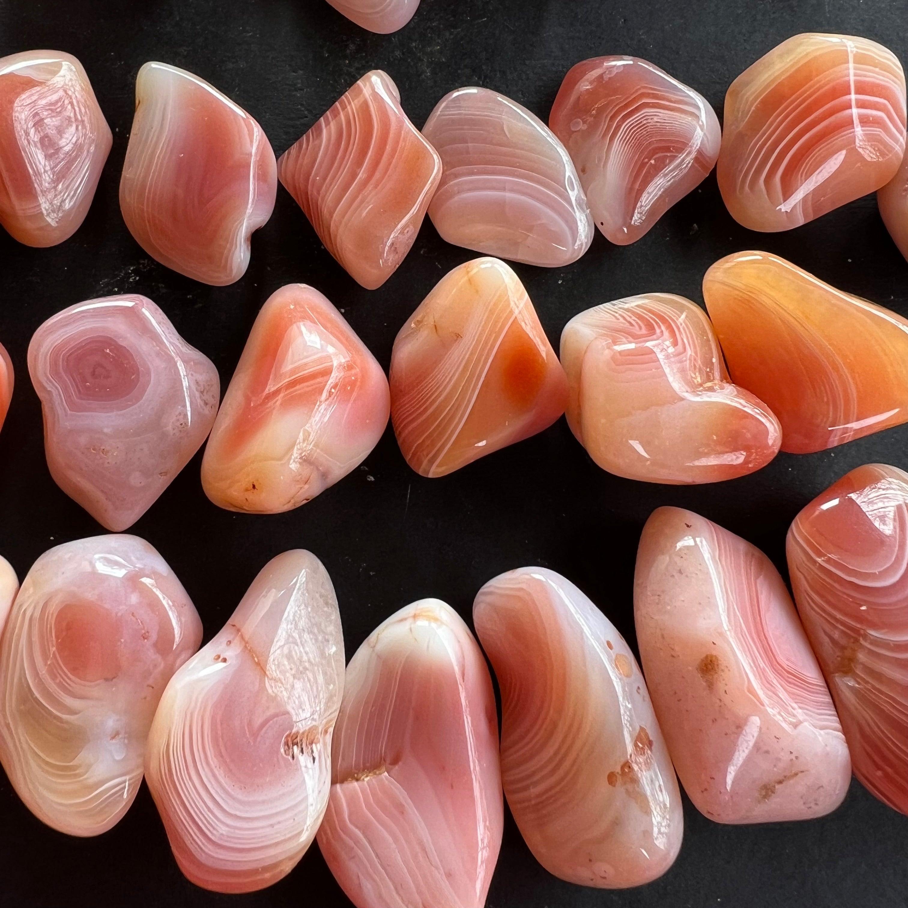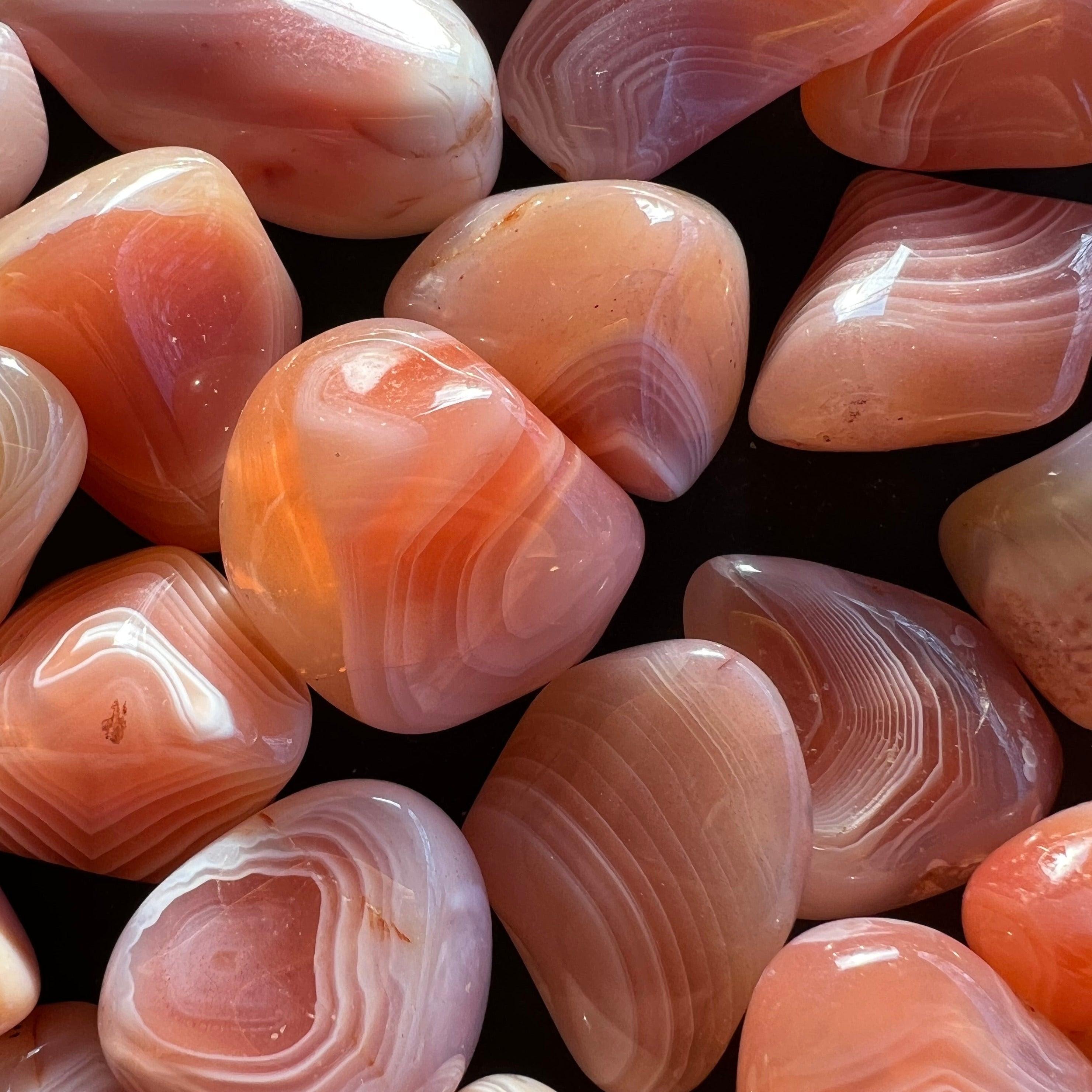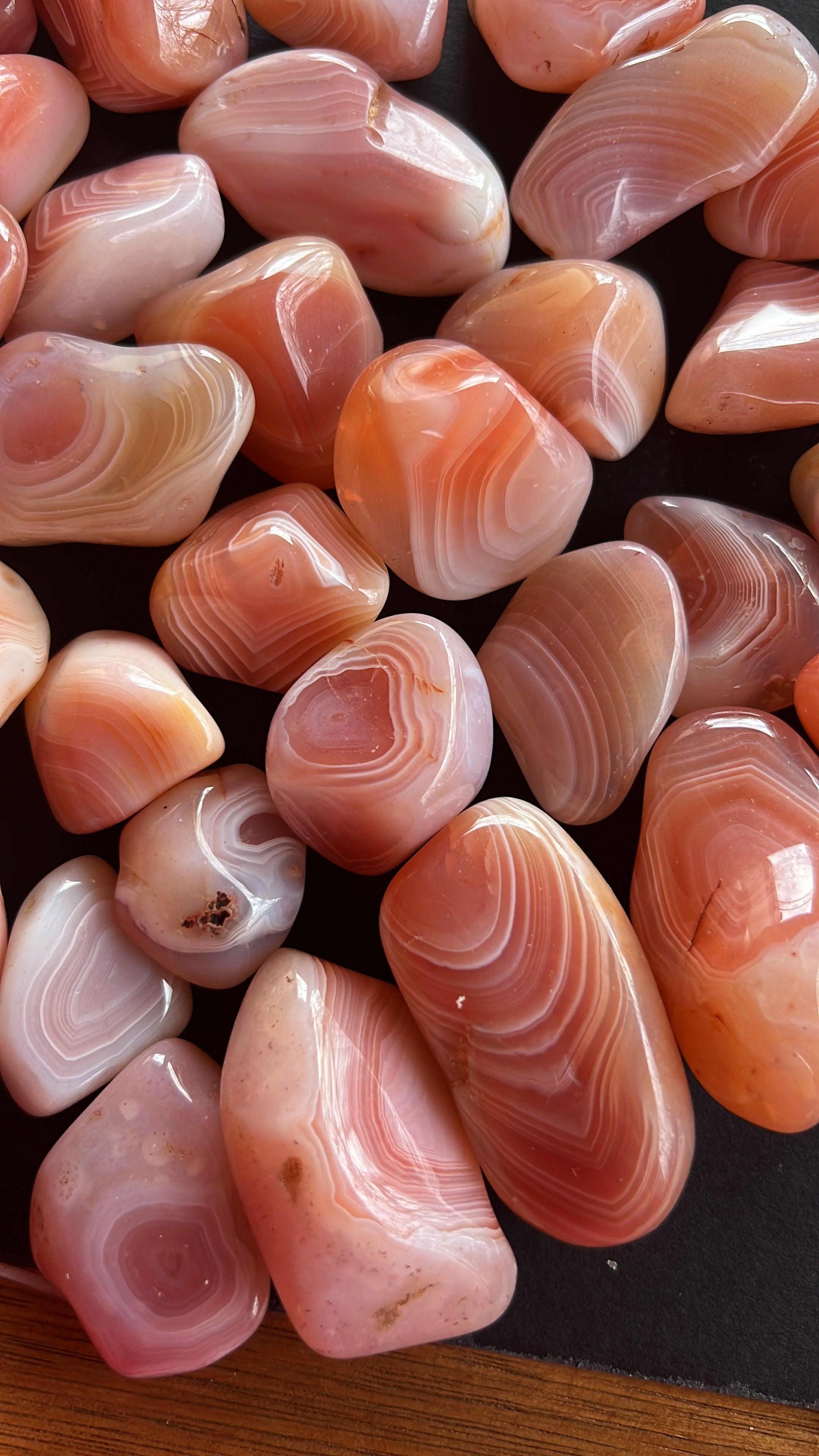 Barackachát, sárgabarackachát, botswanai achát csiszolt kő A, 2,5-4 cm közötti méretben.