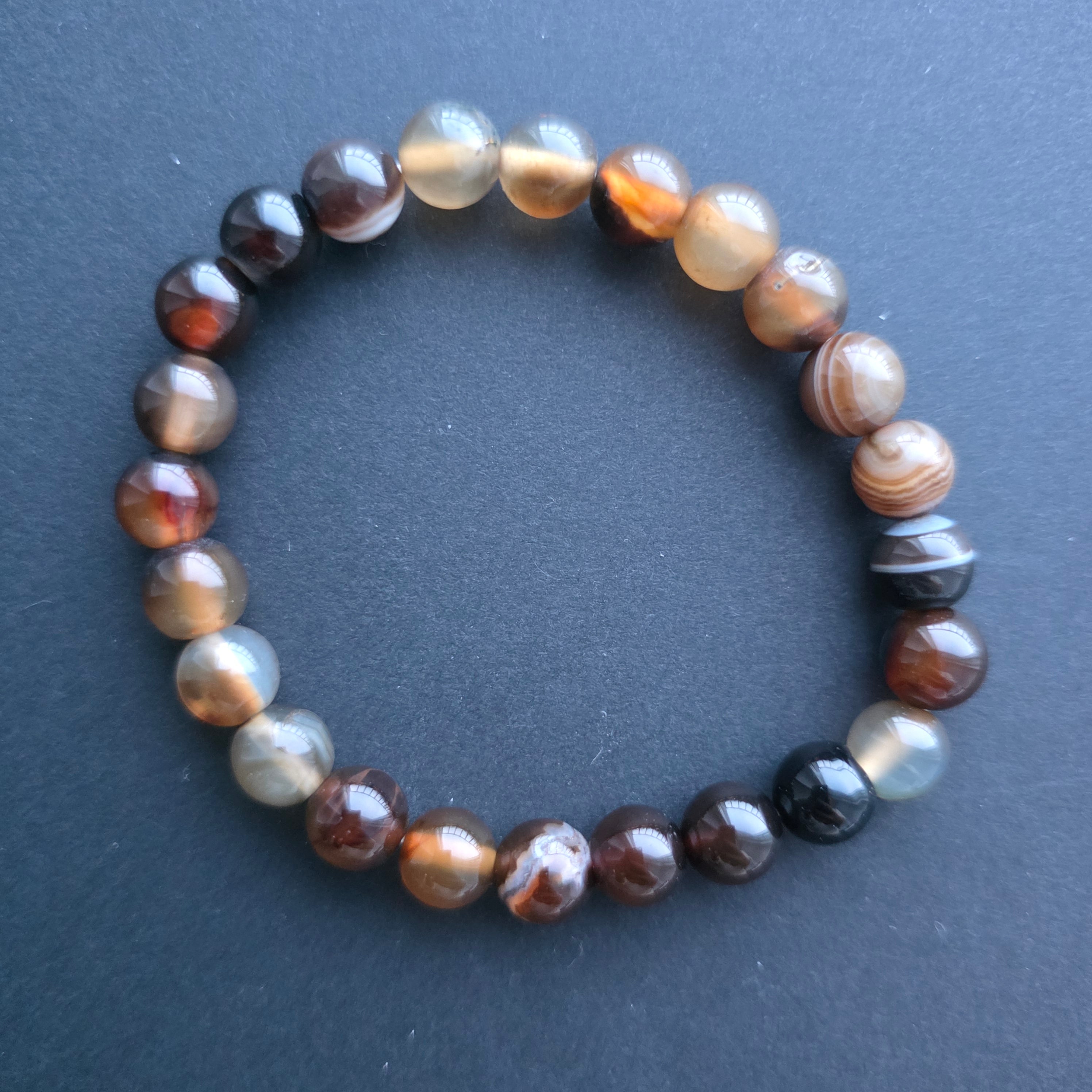 • Textúra: fényes felület, hatalmas gyöngyök, természetes agátspecifikus mintákkal és csíkokkal