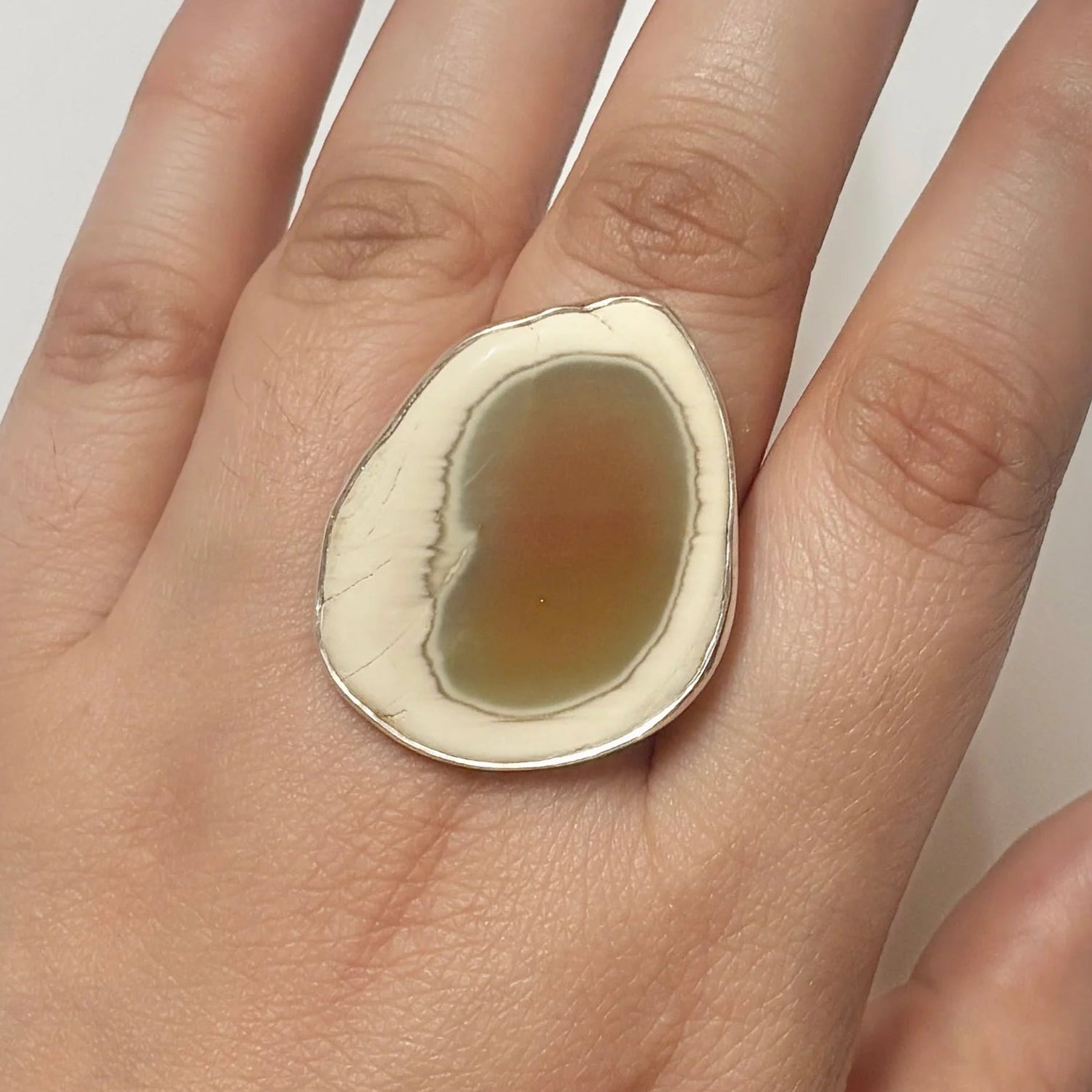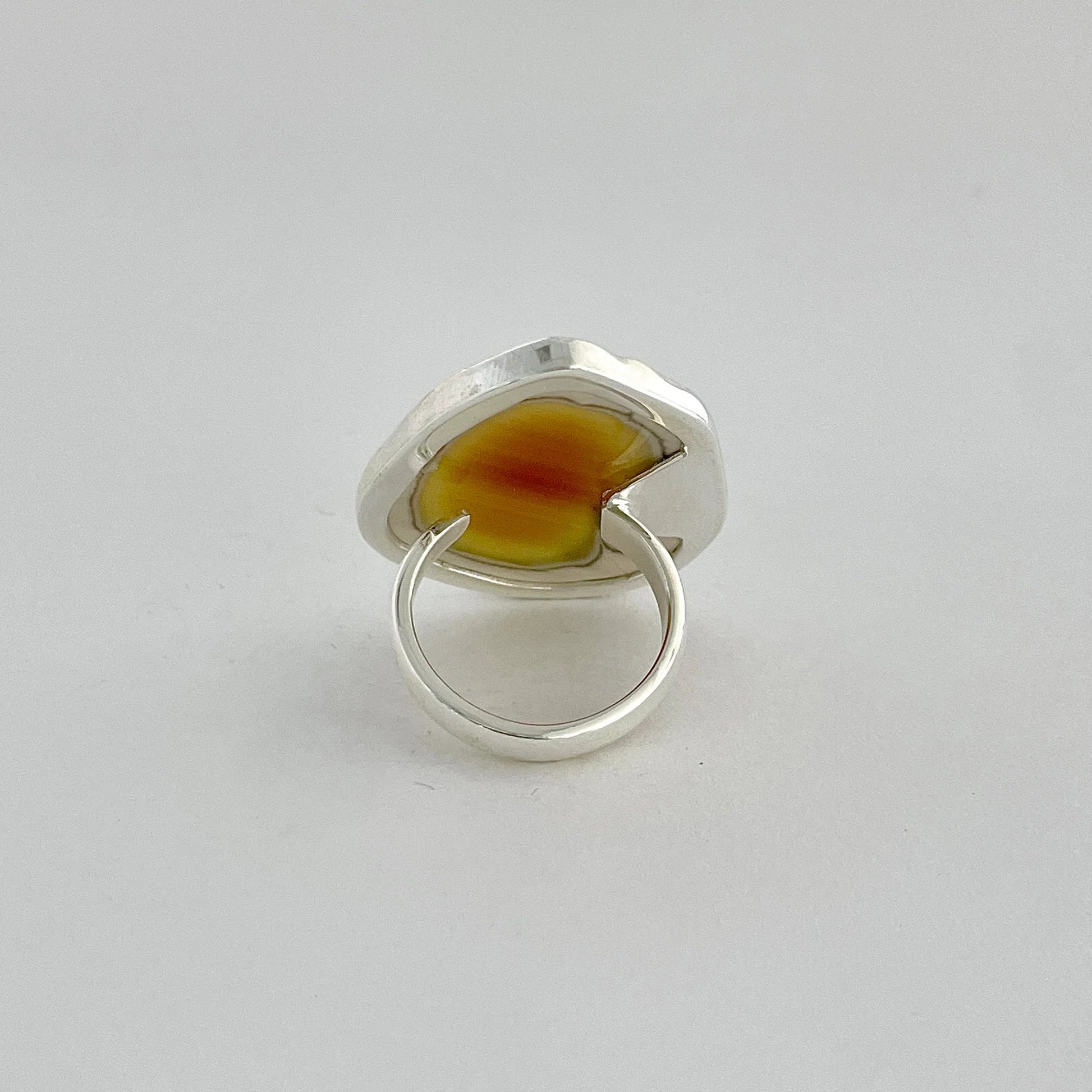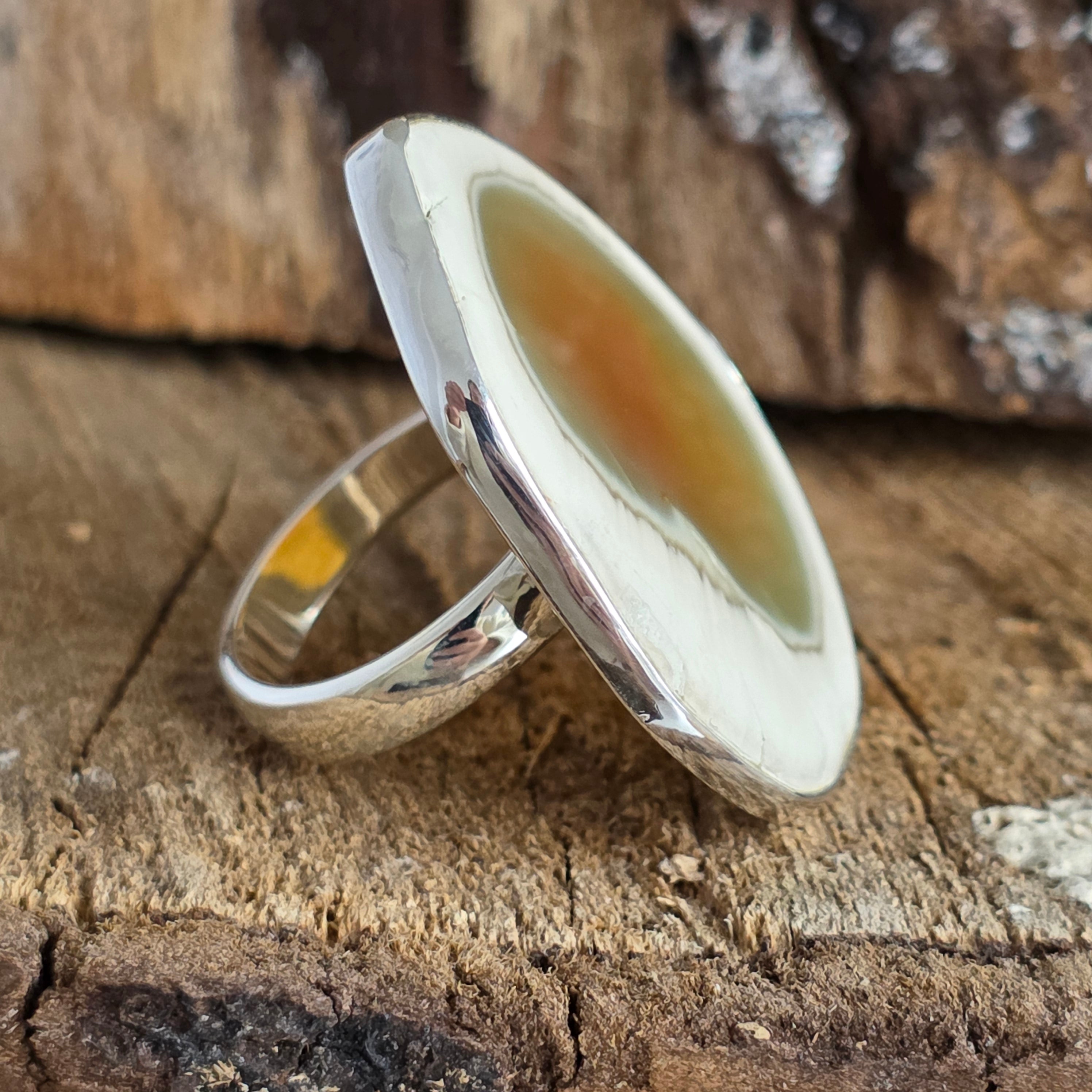 Válaszd ezt a császár jáspis gyűrűt, hogy magaddal vihesd a természet stabilitását és szépségét egy egyedi, kézzel készült és ezüsttel tökéletesített ékszer formájában.