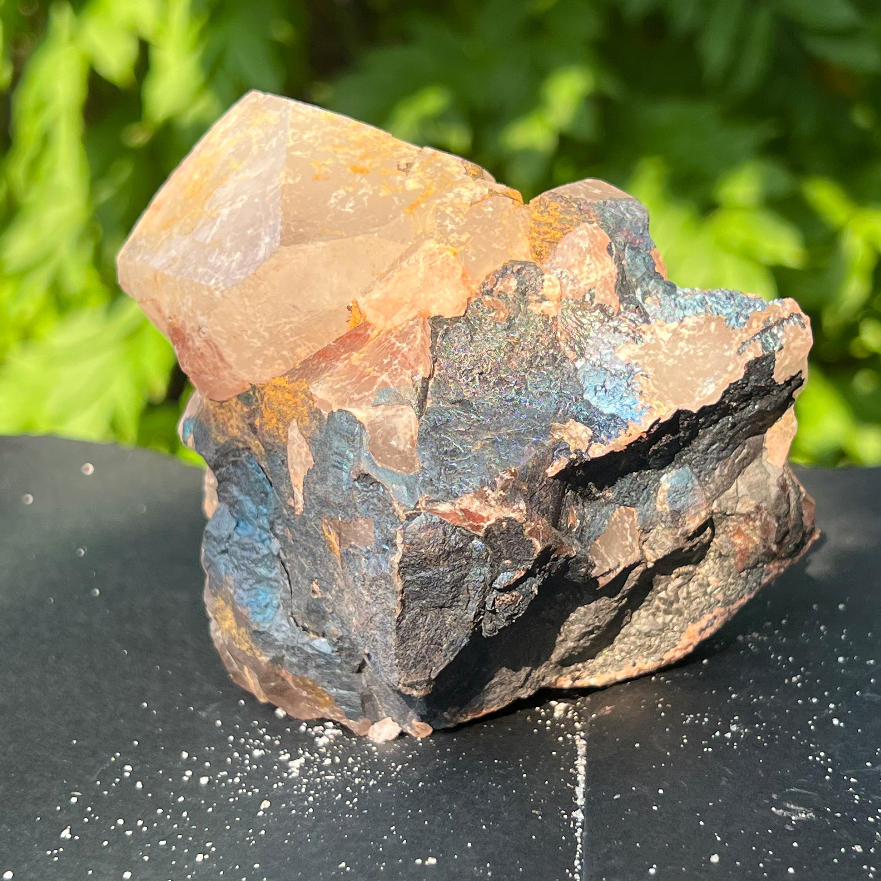 A Blacknit kvarc valóban egyedi, fémes goetita és hematit bevonattal rendelkezik, lenyűgöző árnyalatokkal és irizáló patinával.