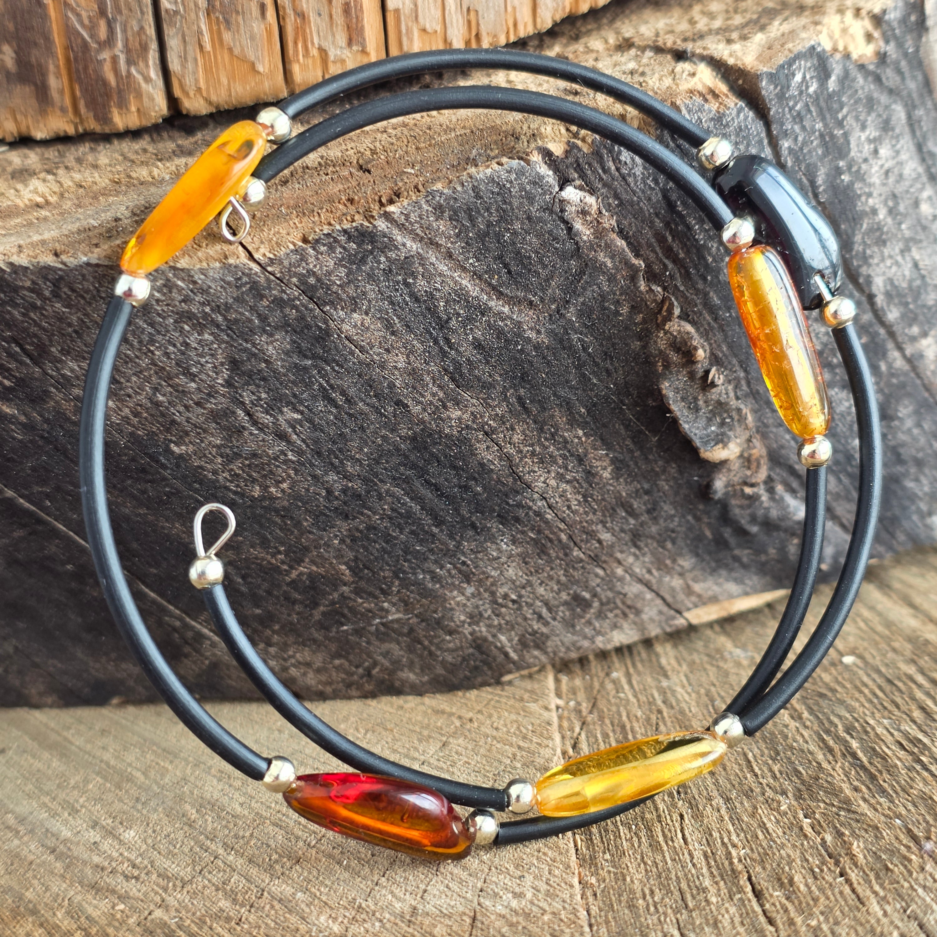 • Kő: természetes borostyán – kavics típusú gyöngyök, szabad formájú 10–16 mm