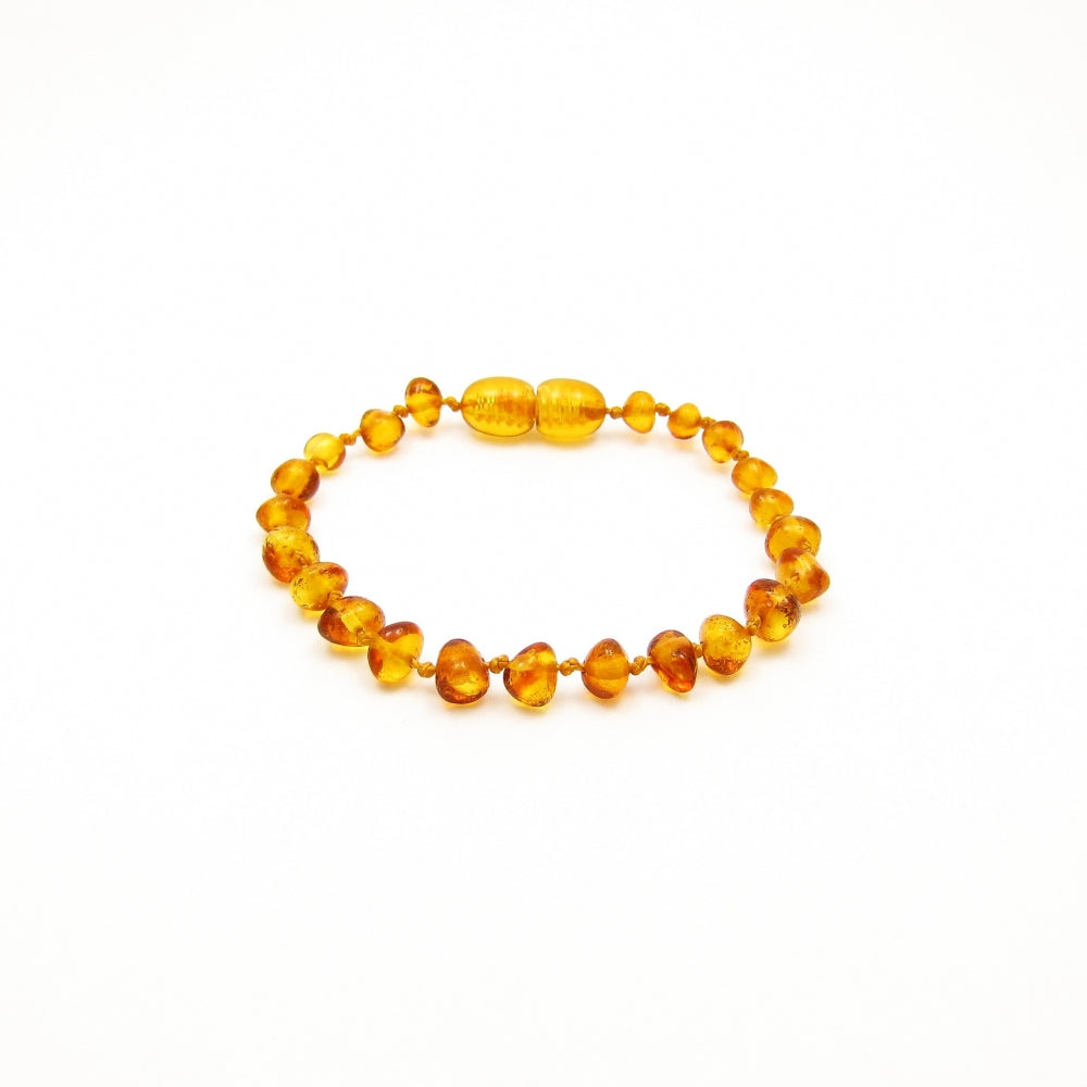Ezt a karkötőt valódi balti borostyán Úgy tervezték, hogy természetes enyhülést hozzon a fogkitörés érzékeny időszakában. A meleg és áttetsző "mézes" árnyalat finomságot és tisztaságot áraszt, évszázadok óta a nap gyengéd energiájával társul.