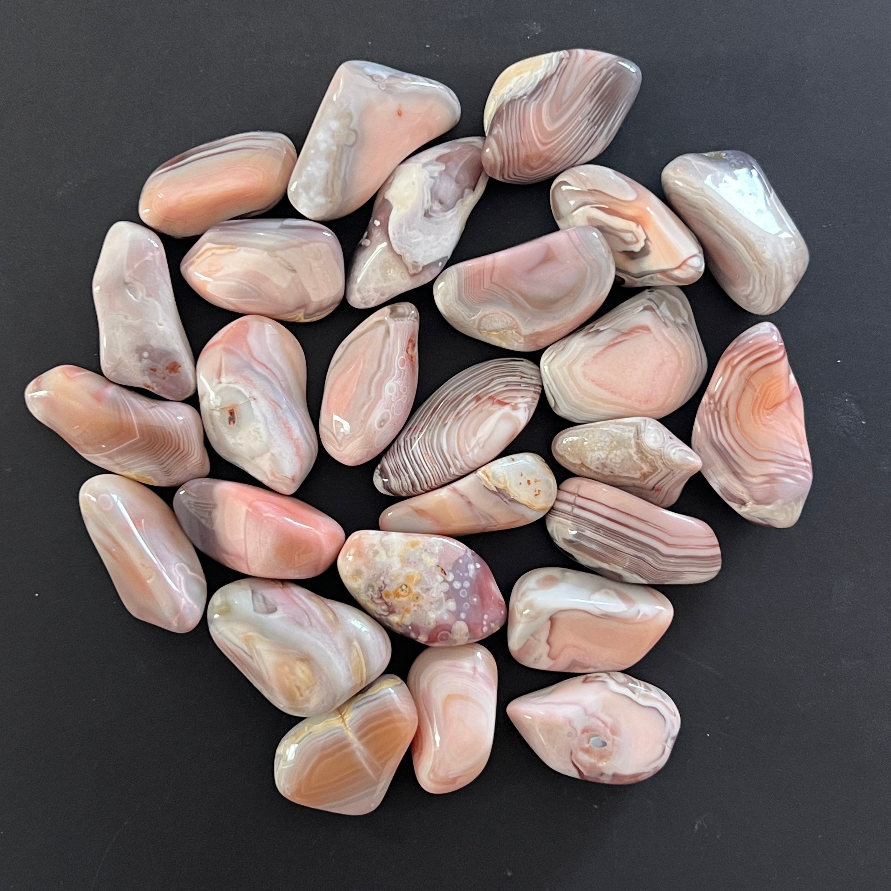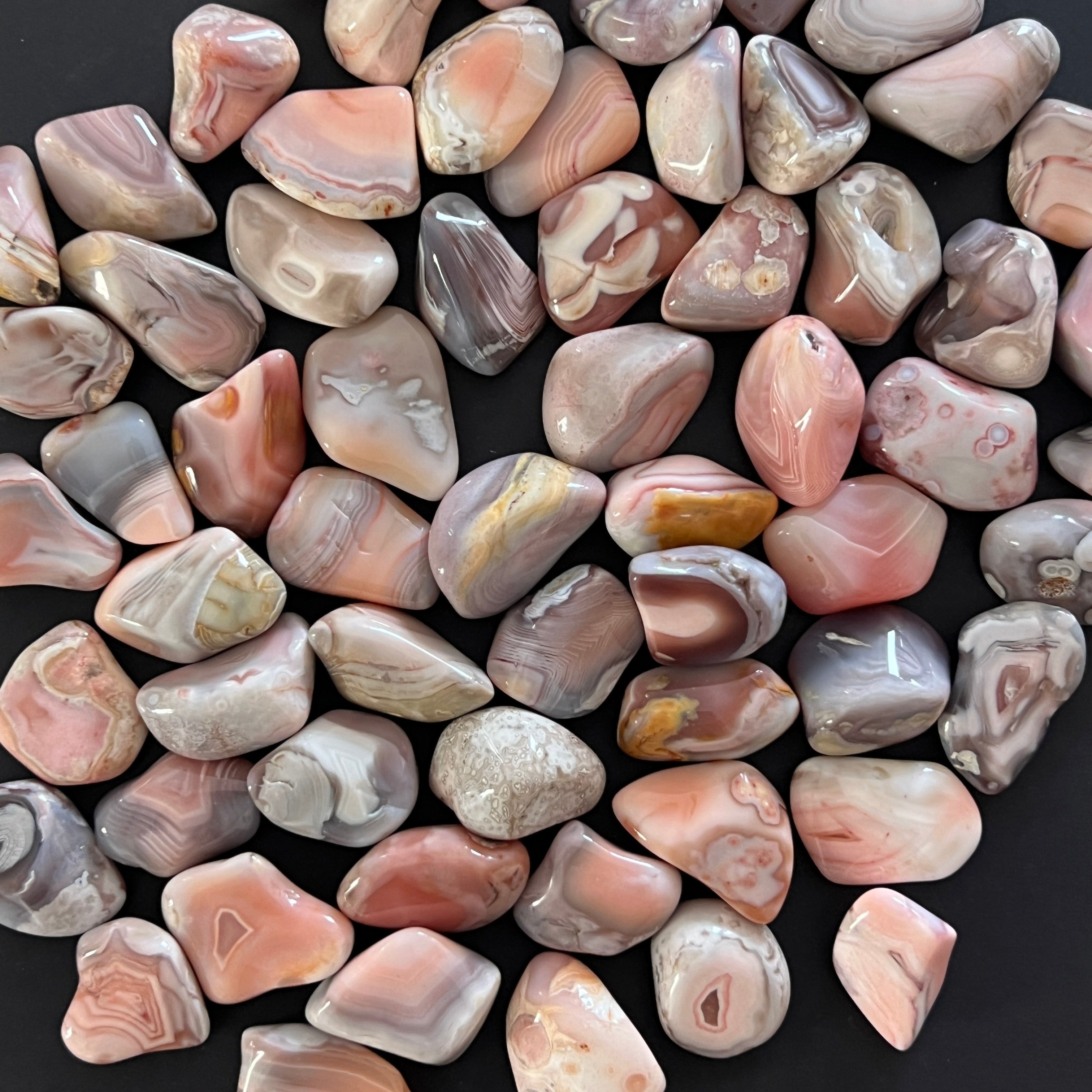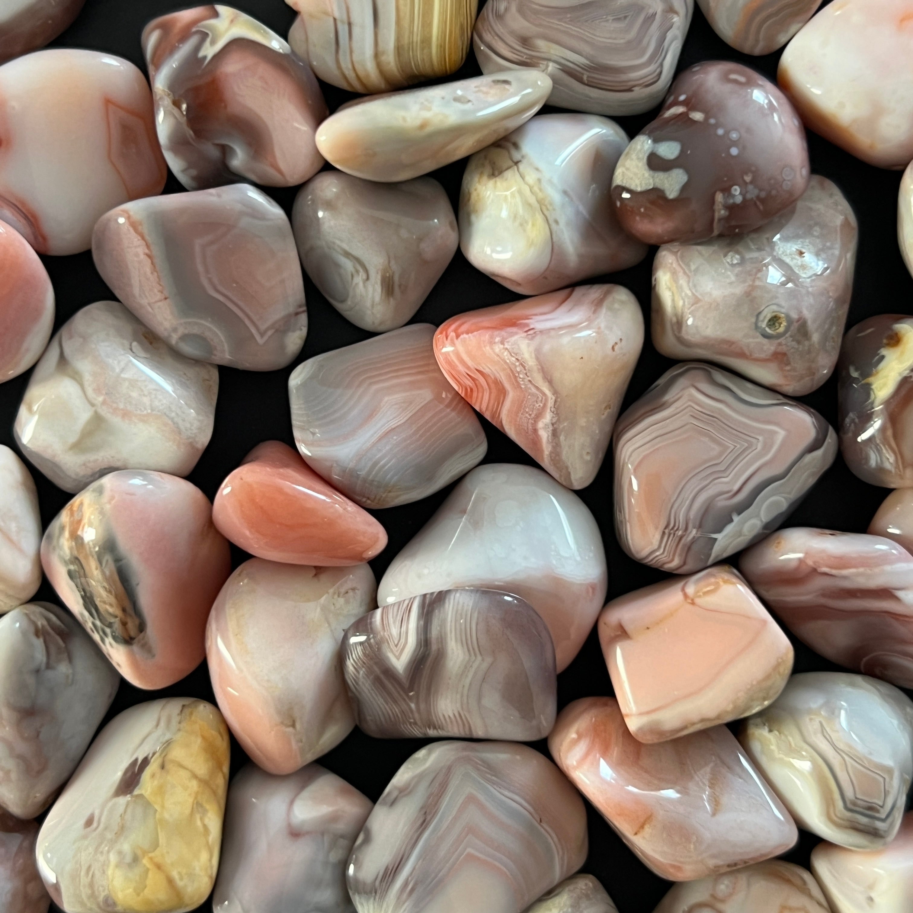 A Botswanai achát egy ritka és elegáns achátfajta, amely finom szalagjairól ismert, szürke, rózsaszín, fehér és barna árnyalatokban, és Botswanából származik. Érzelmi komfortot és védelmet nyújtó kő, enyhíti a szorongást és a mély félelmeket. Támogatja a belső átalakulási folyamatokat, segít a negatív gondolkodás felszabadításában. Kapcsolódik a gyökércsakrához és a harmadik szem csakrájához (Ajna – 6. csakra), elősegítve a belső stabilitást és a mentális tisztaságot. A Botswanai achátot gyakran használják meditációhoz, hogy fokozza a koncentrációt és az intuíciót.