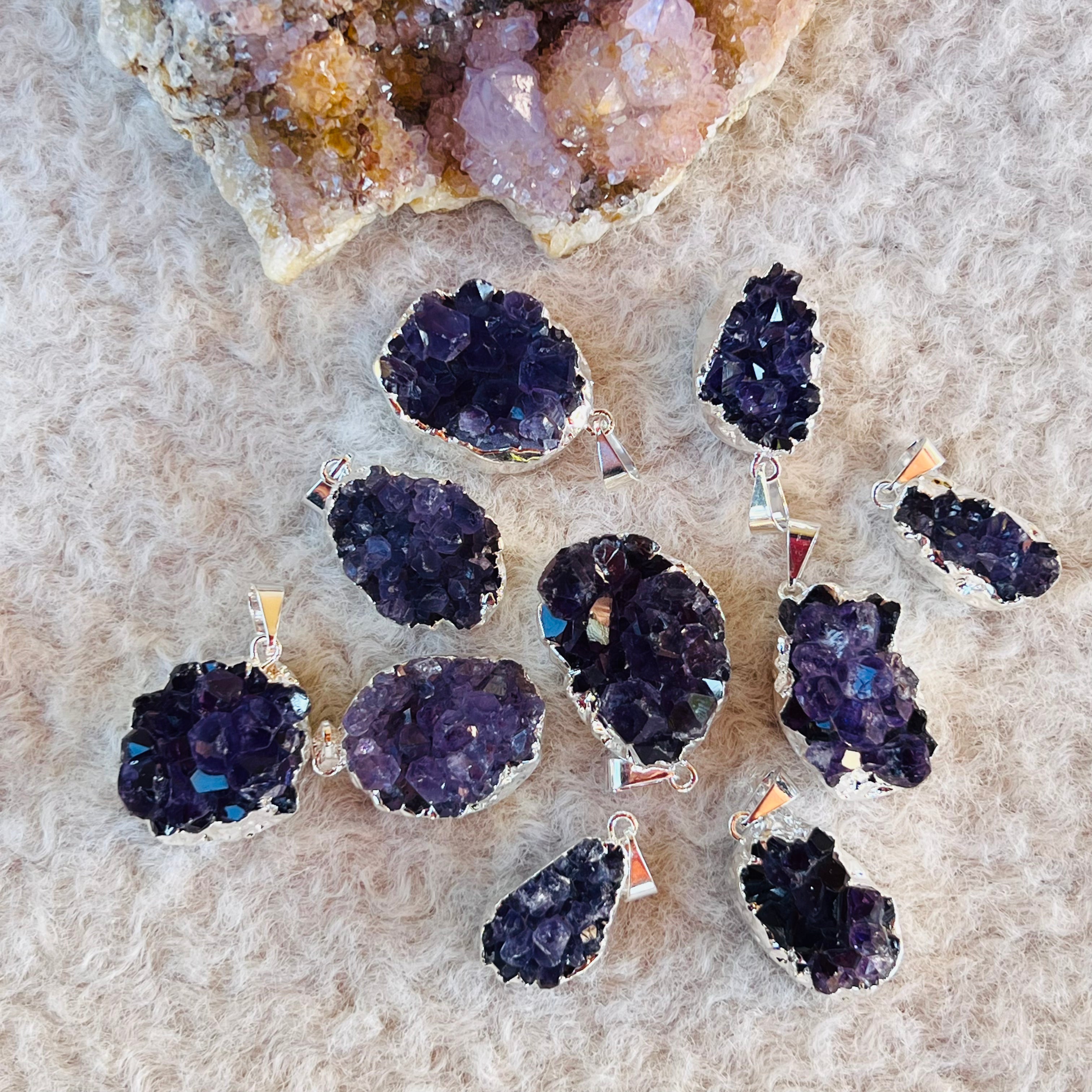 Descriere - Brazil ametiszt druzy ezüstözött medál