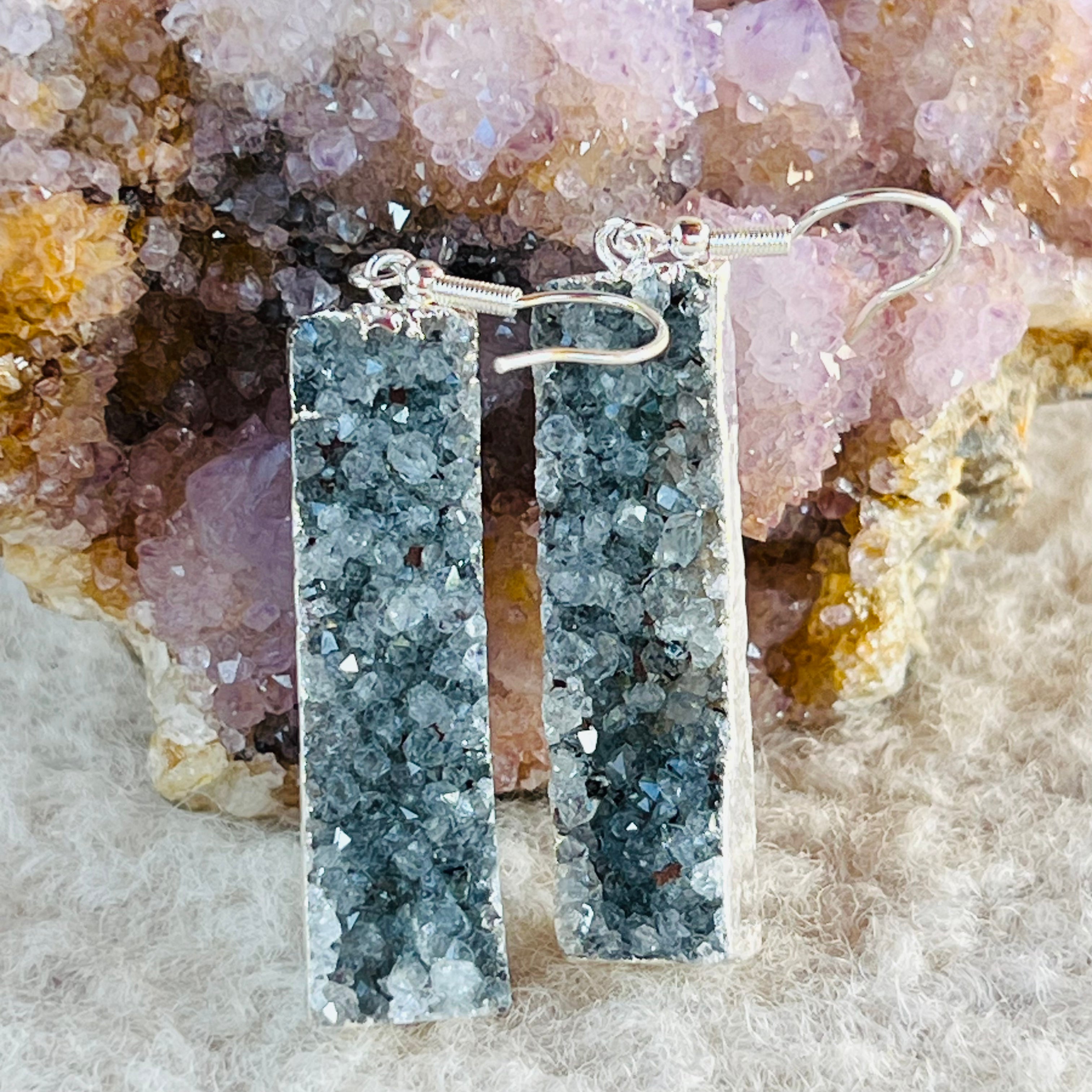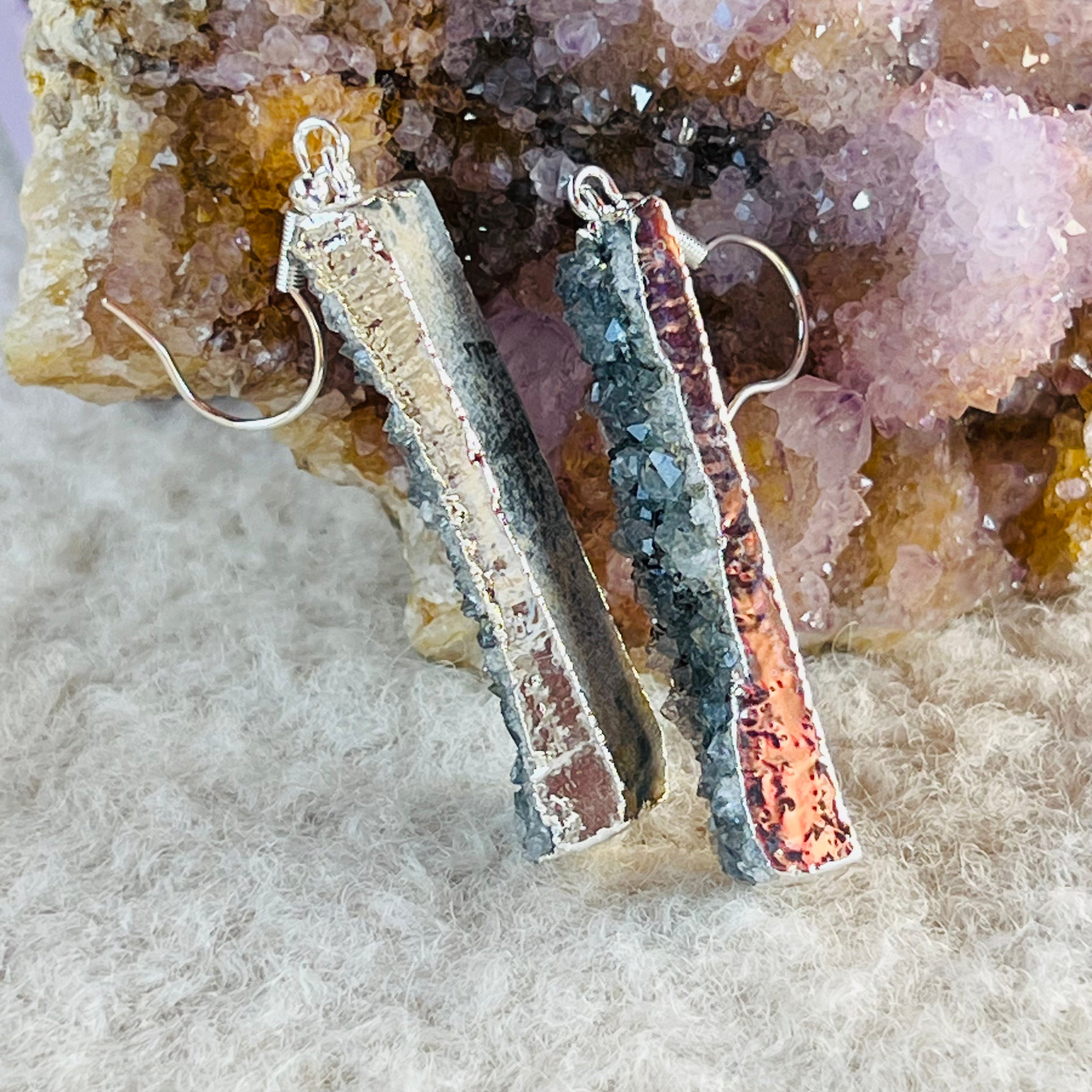 Braziliai ezüstözött druzy achát szelet fülbevaló, 3. modell