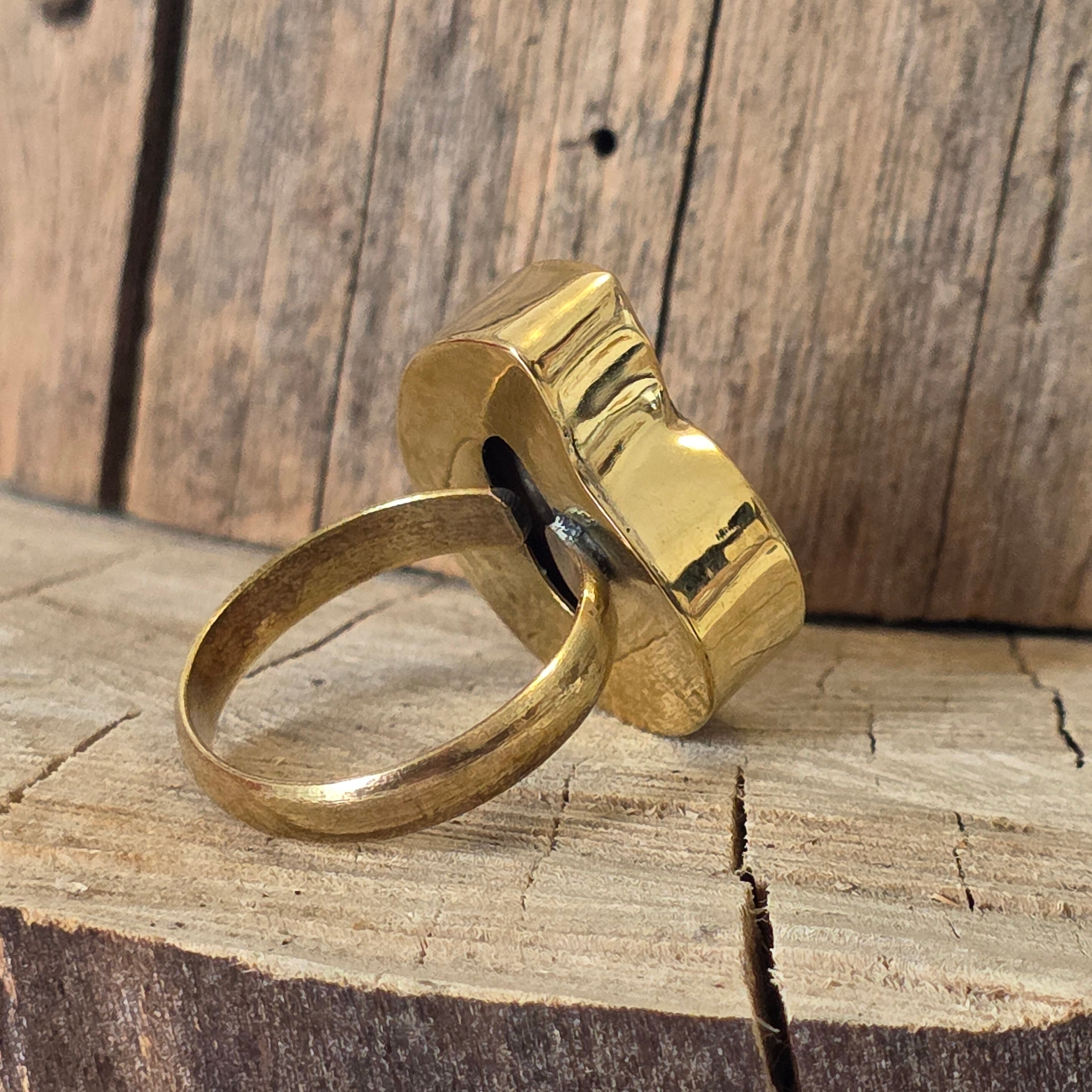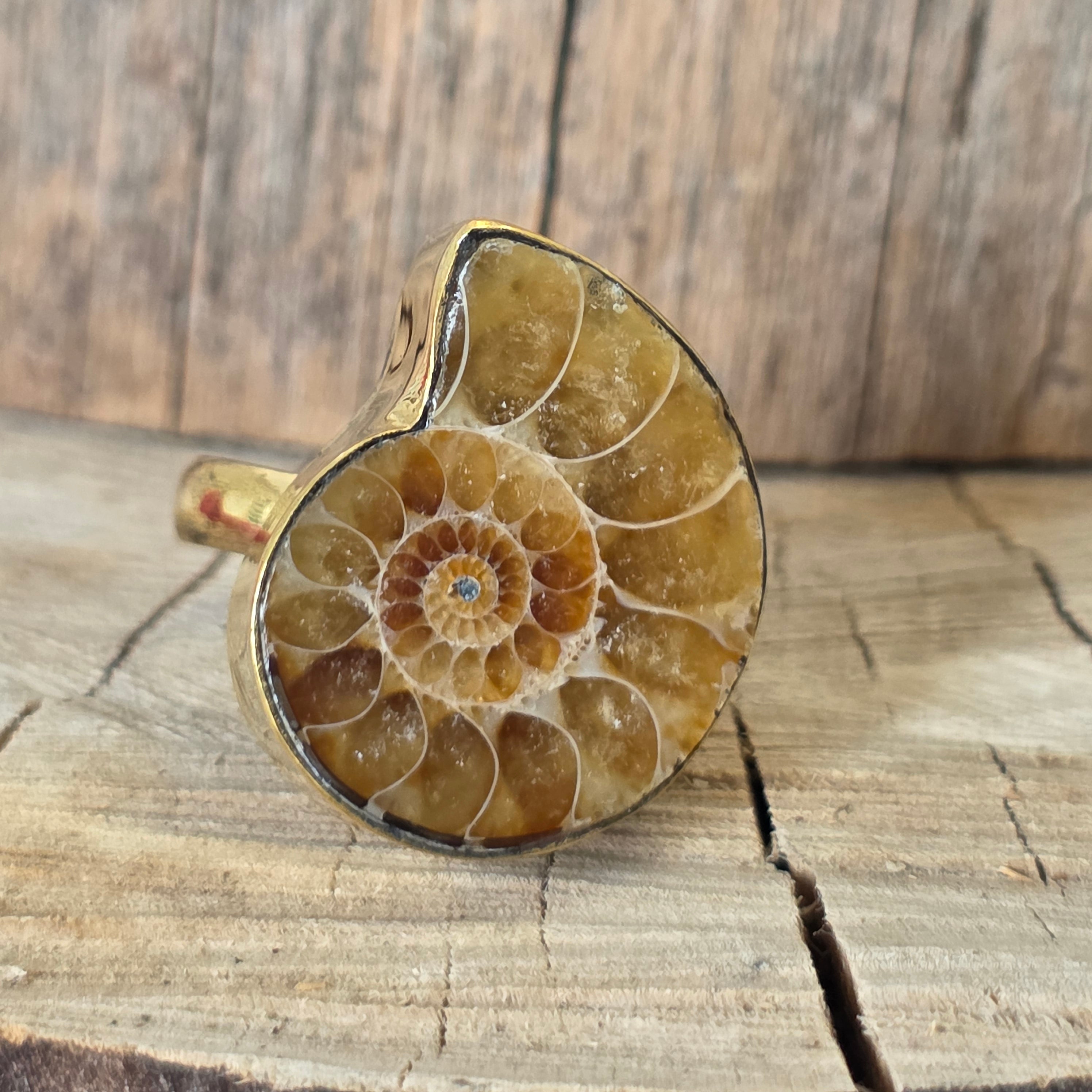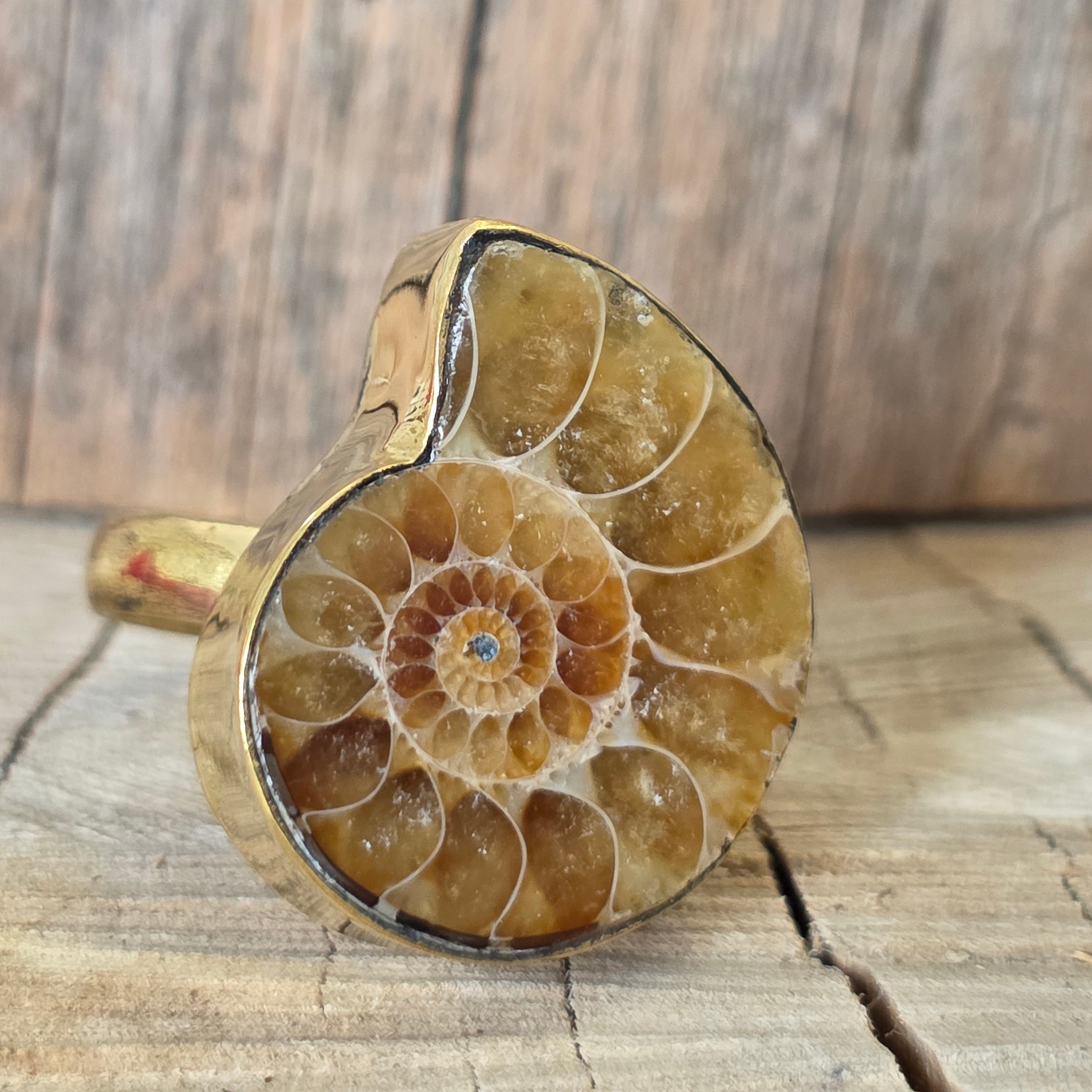 Válassza ezt a bronzt és amonitot tartalmazó gyűrűt, és hordja magával az idő szépségét művészet formájában. Egyedi ékszer, a tengerből született és a természet által formált, amely minden naphoz eleganciát és egyensúlyt ad. 🌊✨