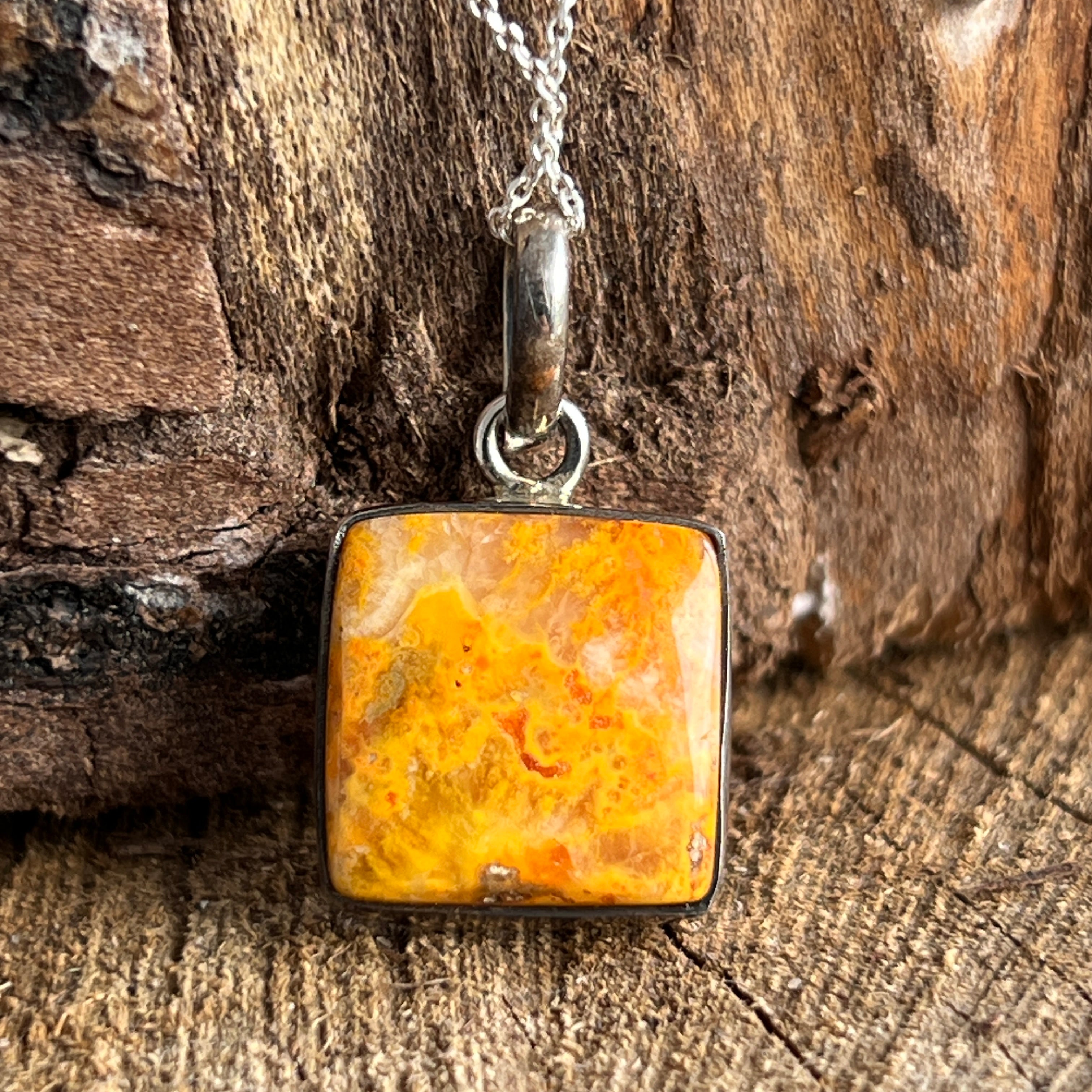 • Kő: Természetes Bumblebee jáspis (sárga-narancs árnyalatok szürke és ocre beágyazódásokkal) egyedi modell – pontosan azokat a termékeket kapod, amelyek a képeken láthatók