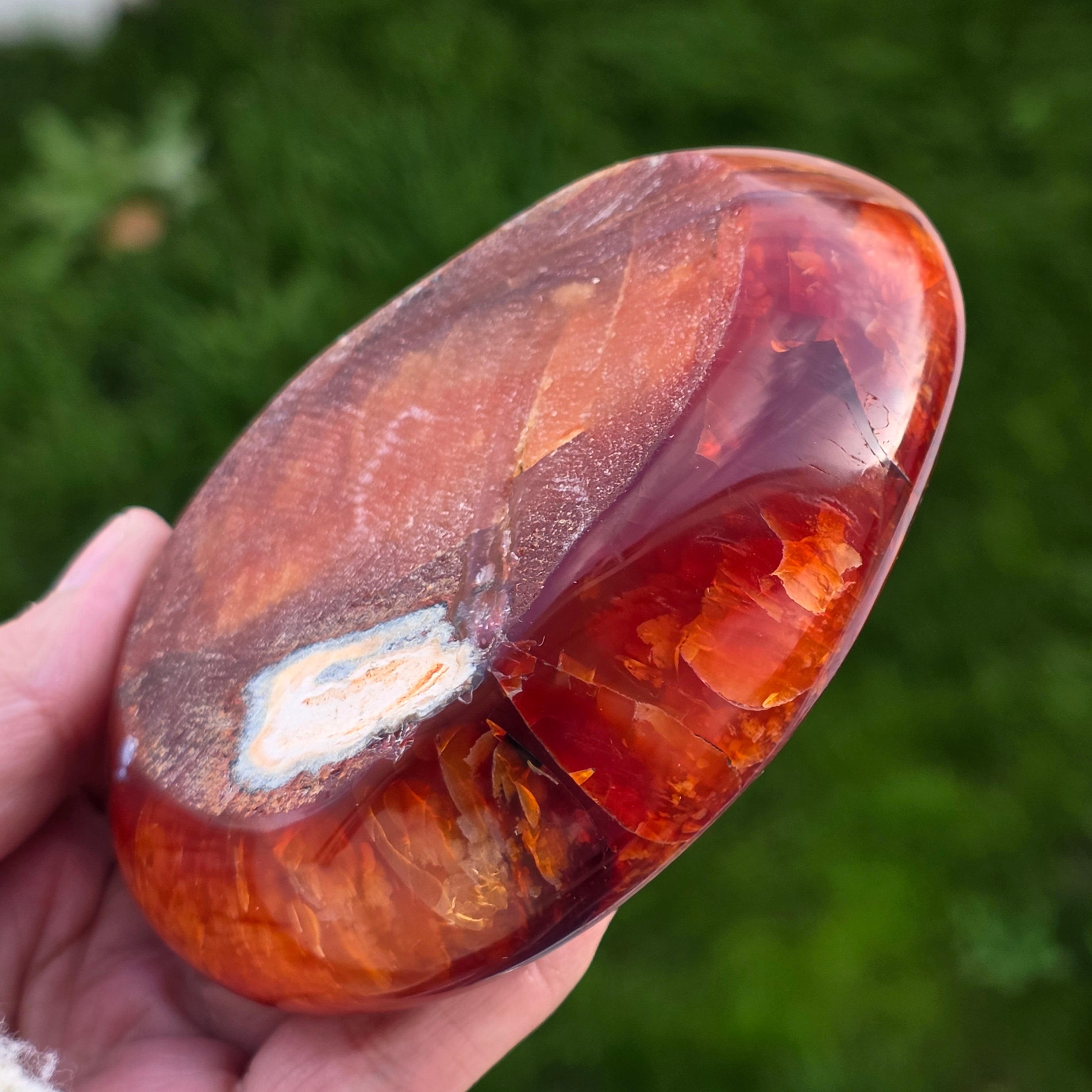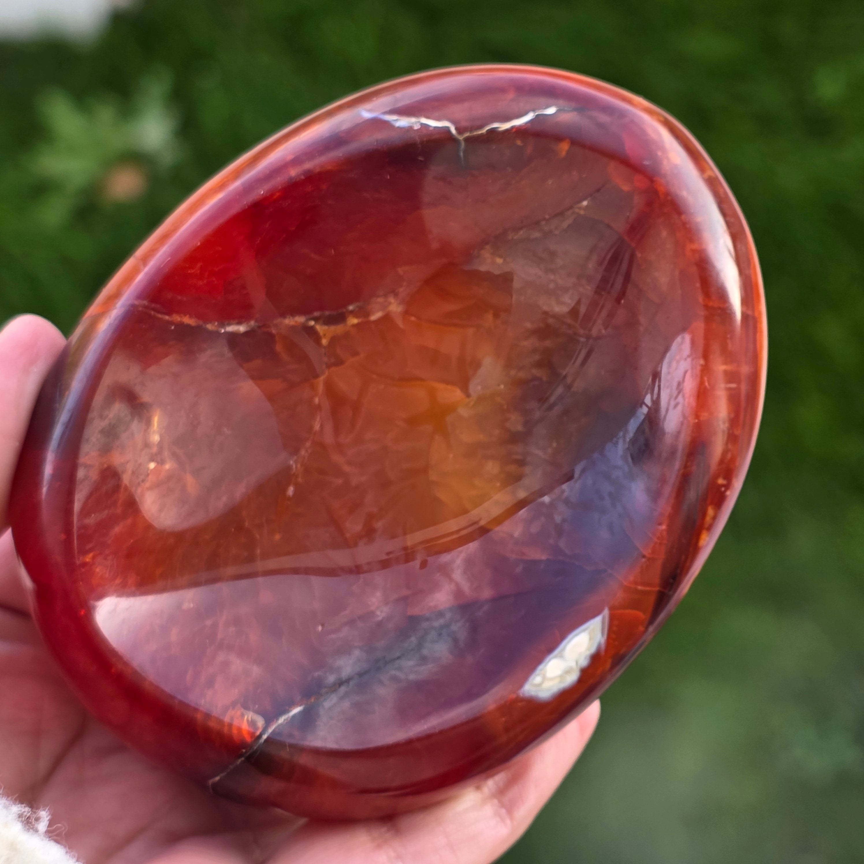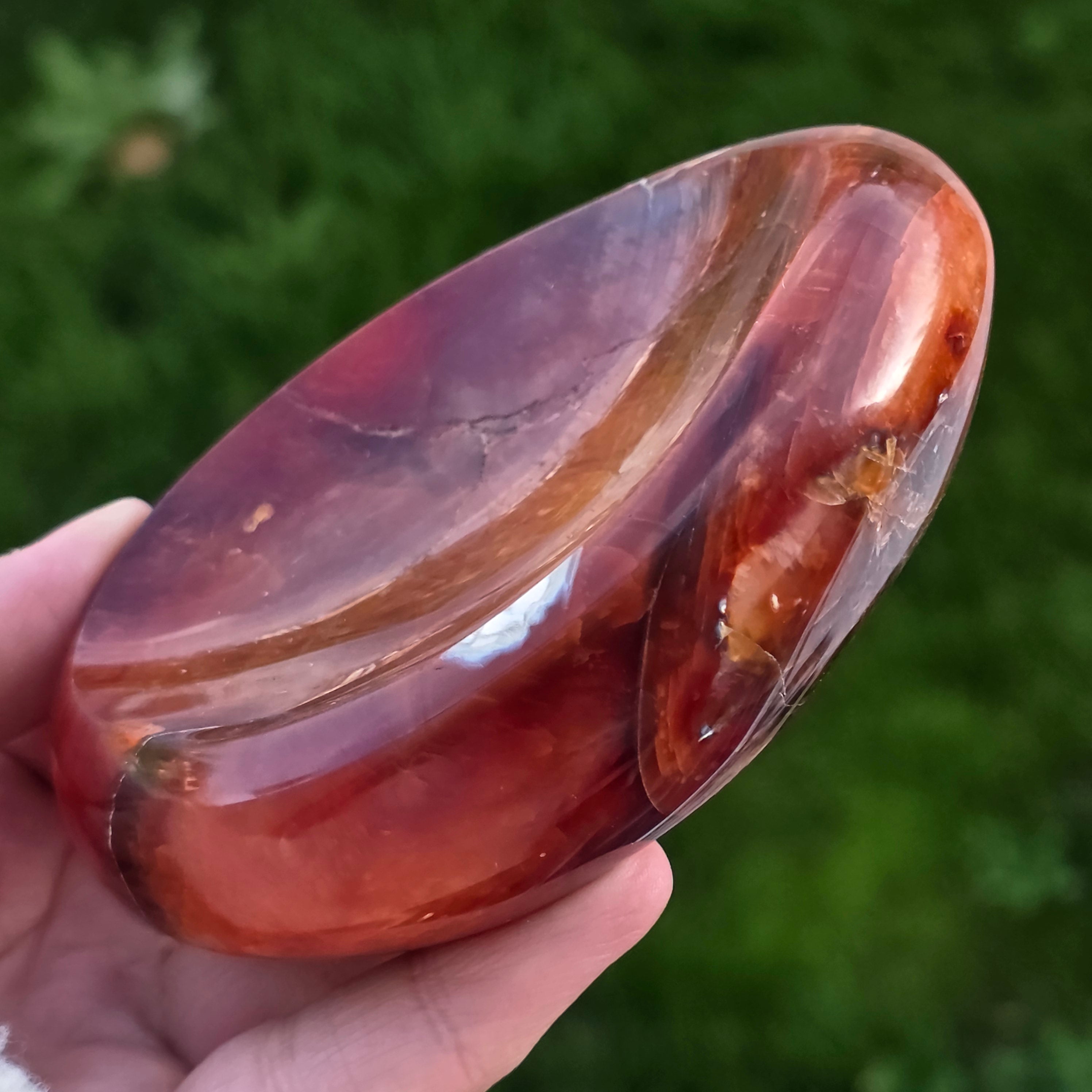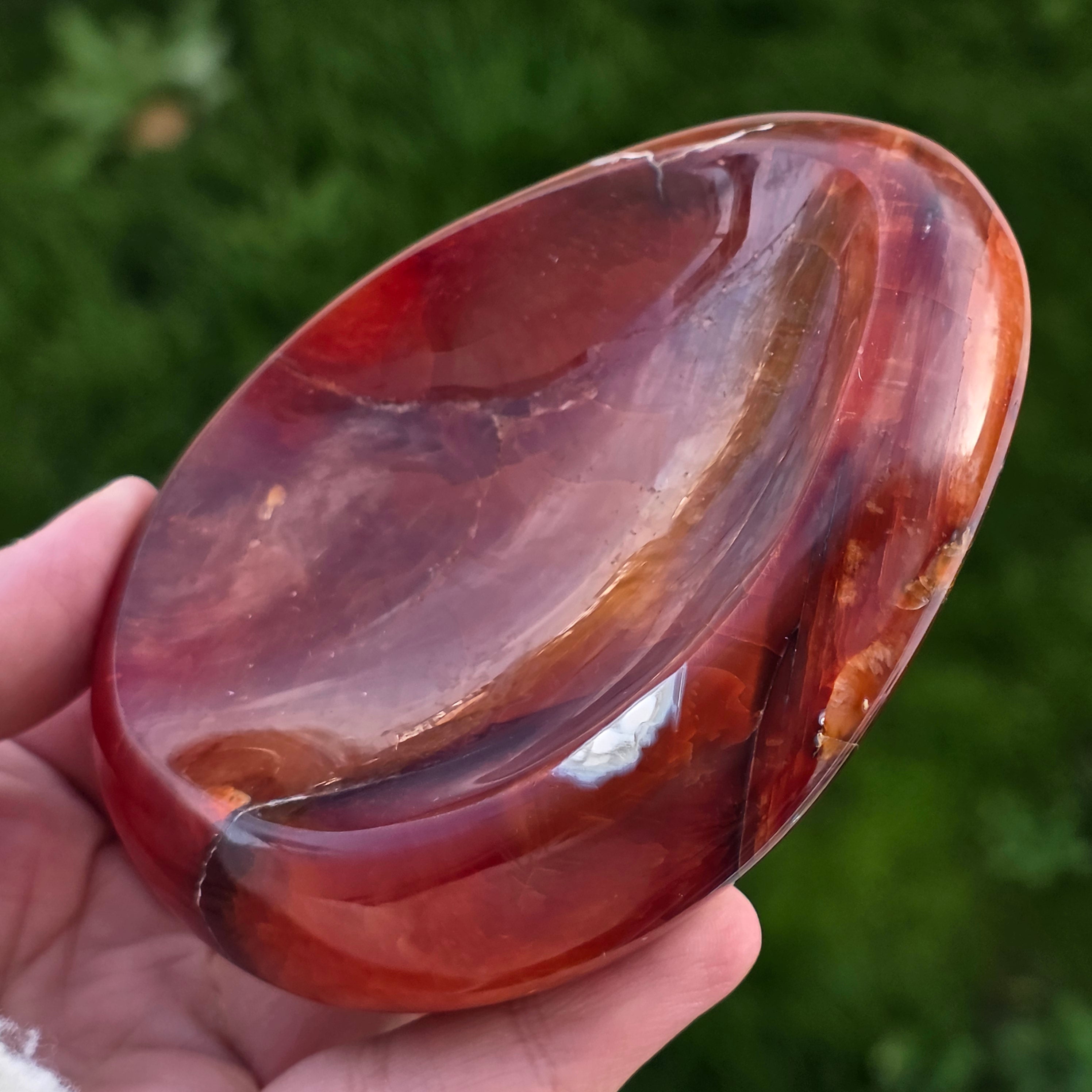 Tál Egyedi természetes carnel, amelyet Madagaszkárról szereztek, gondosan faragva, hogy kiemelje a kő természeti szépségét.