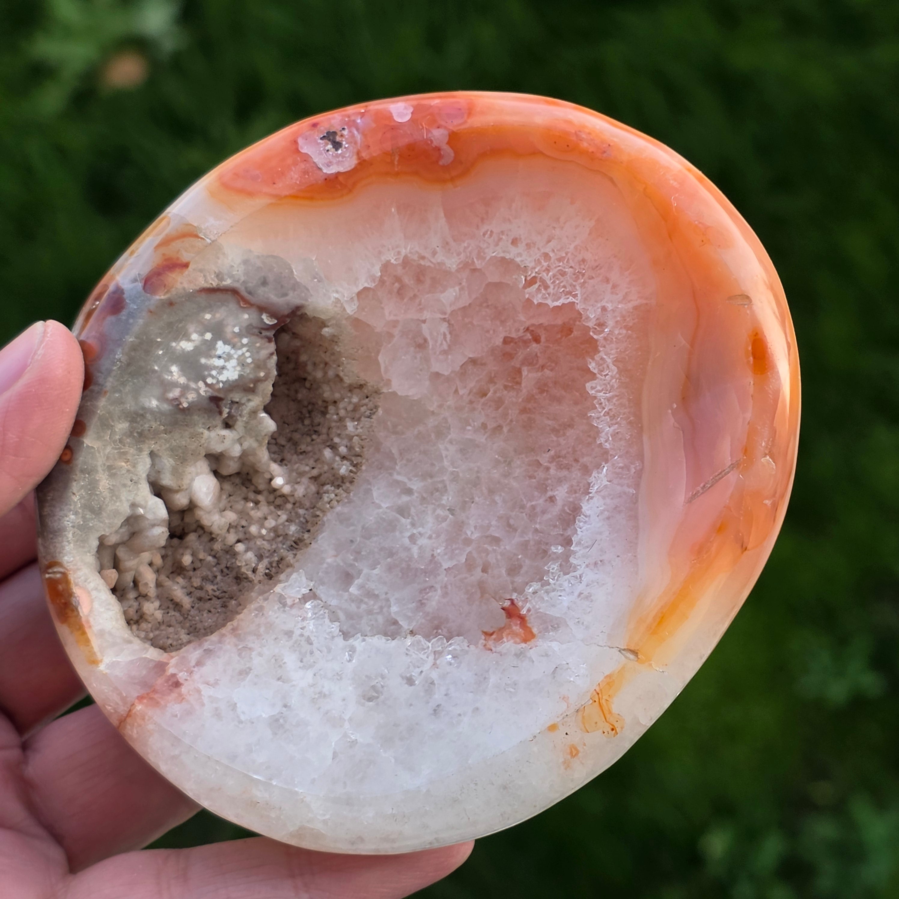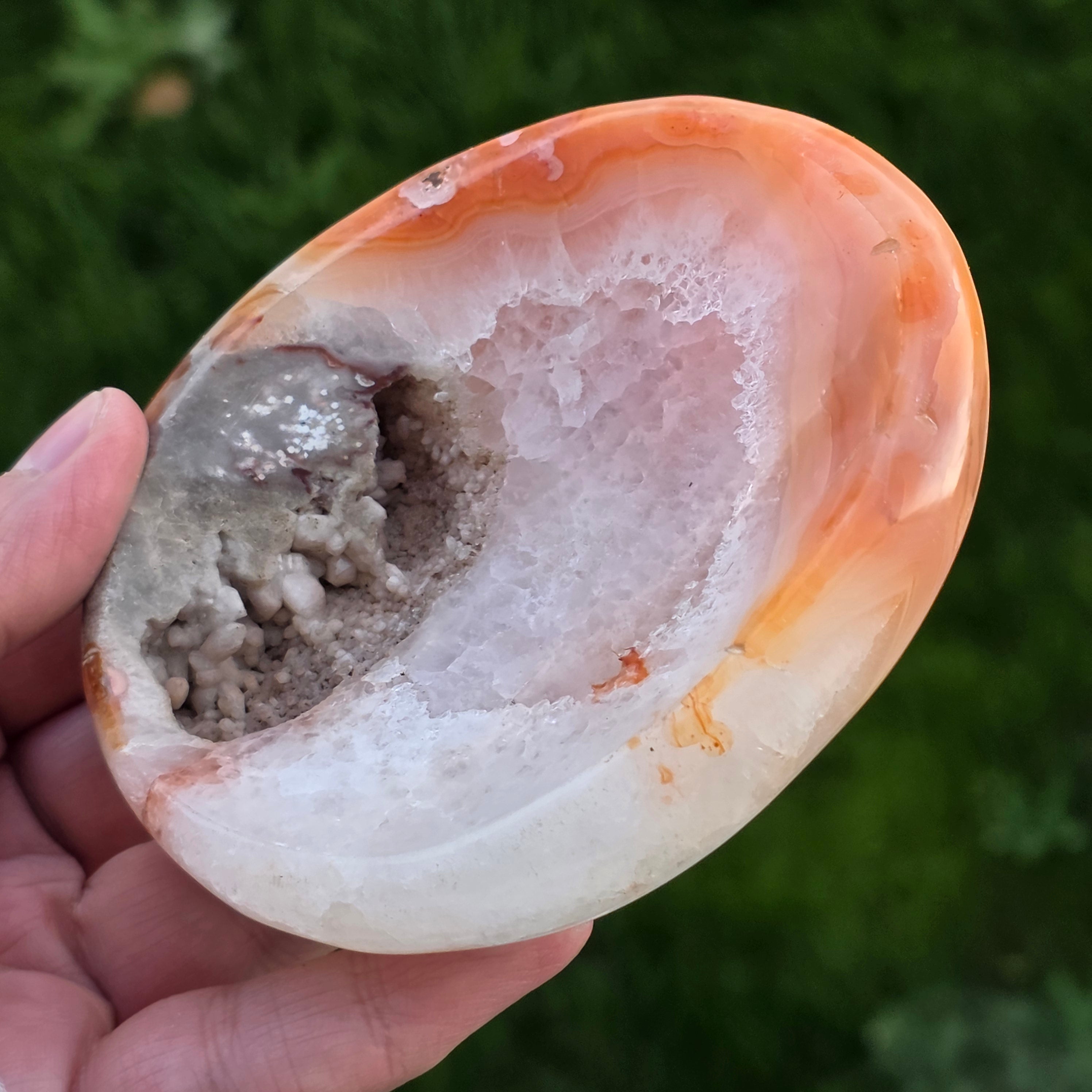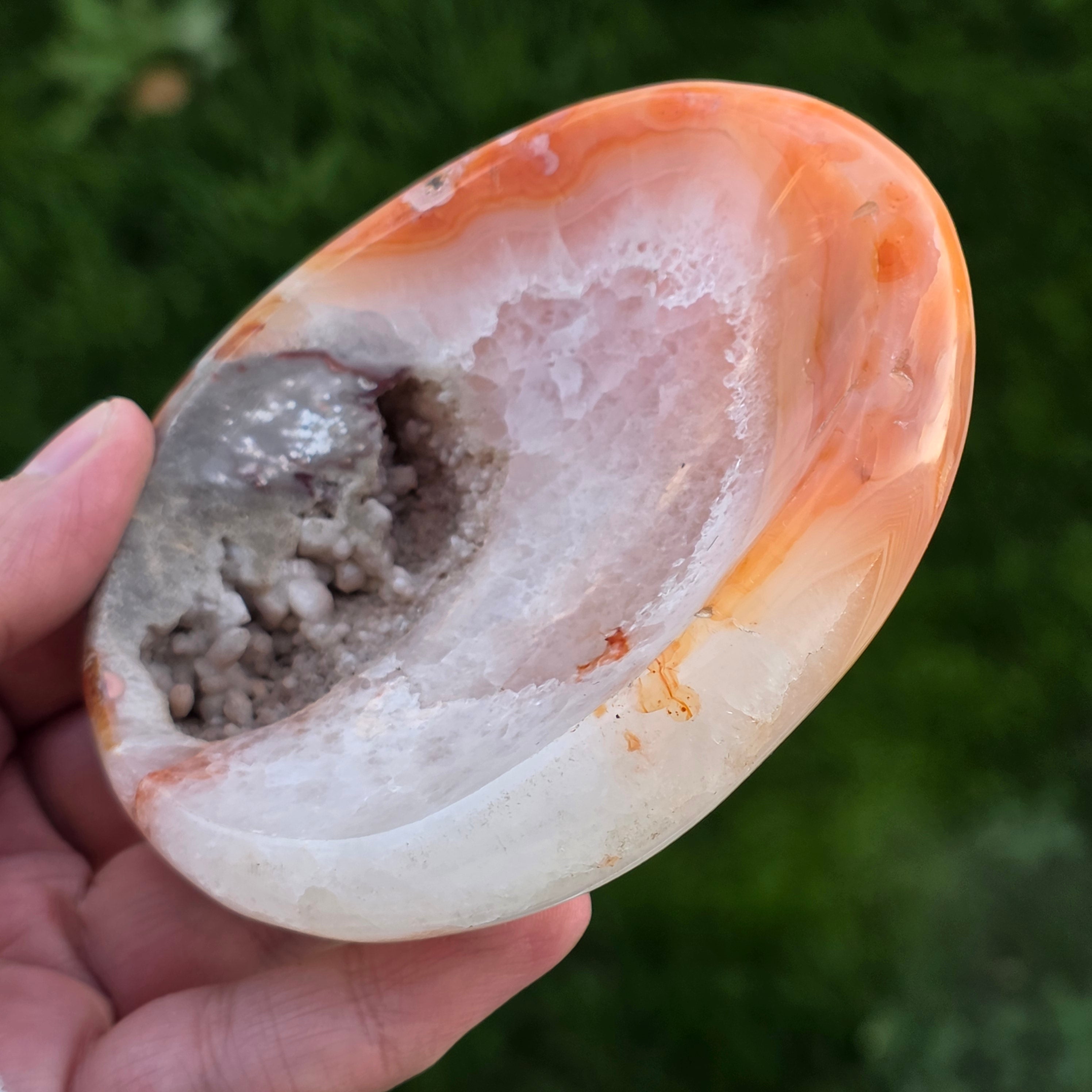 Tál Egyedi természetes carnel, amelyet Madagaszkárról szereztek, gondosan faragva, hogy kiemelje a kő természeti szépségét.