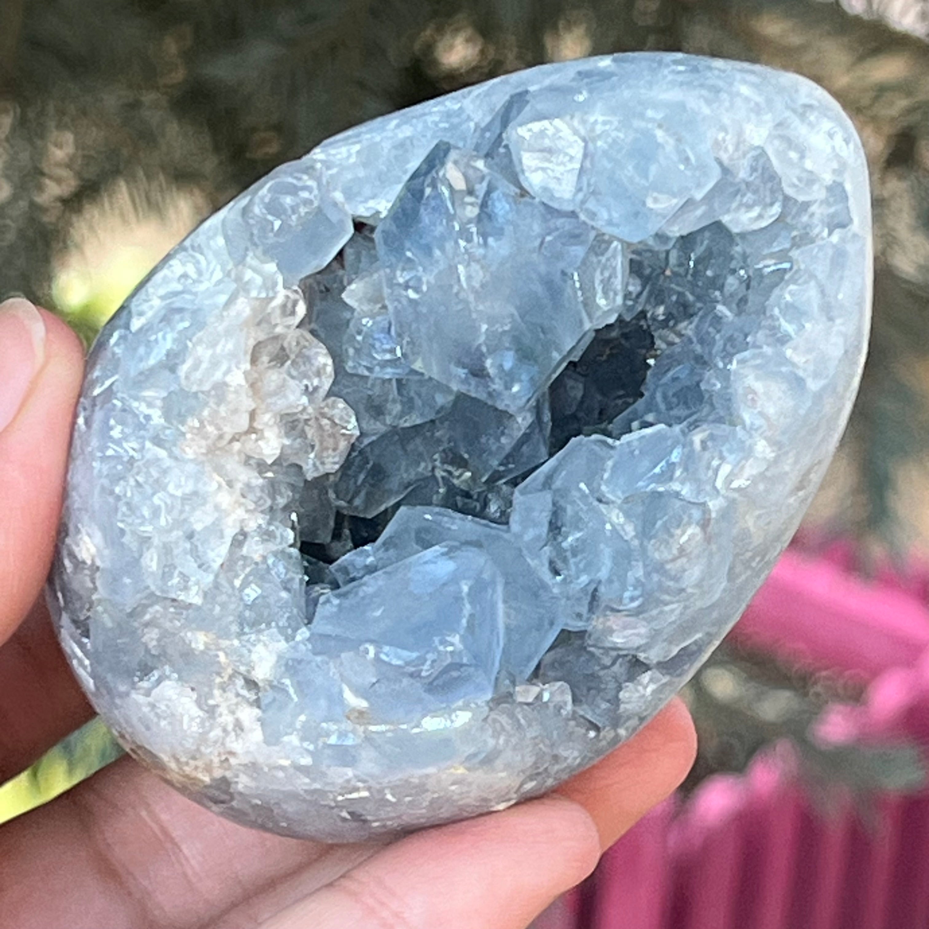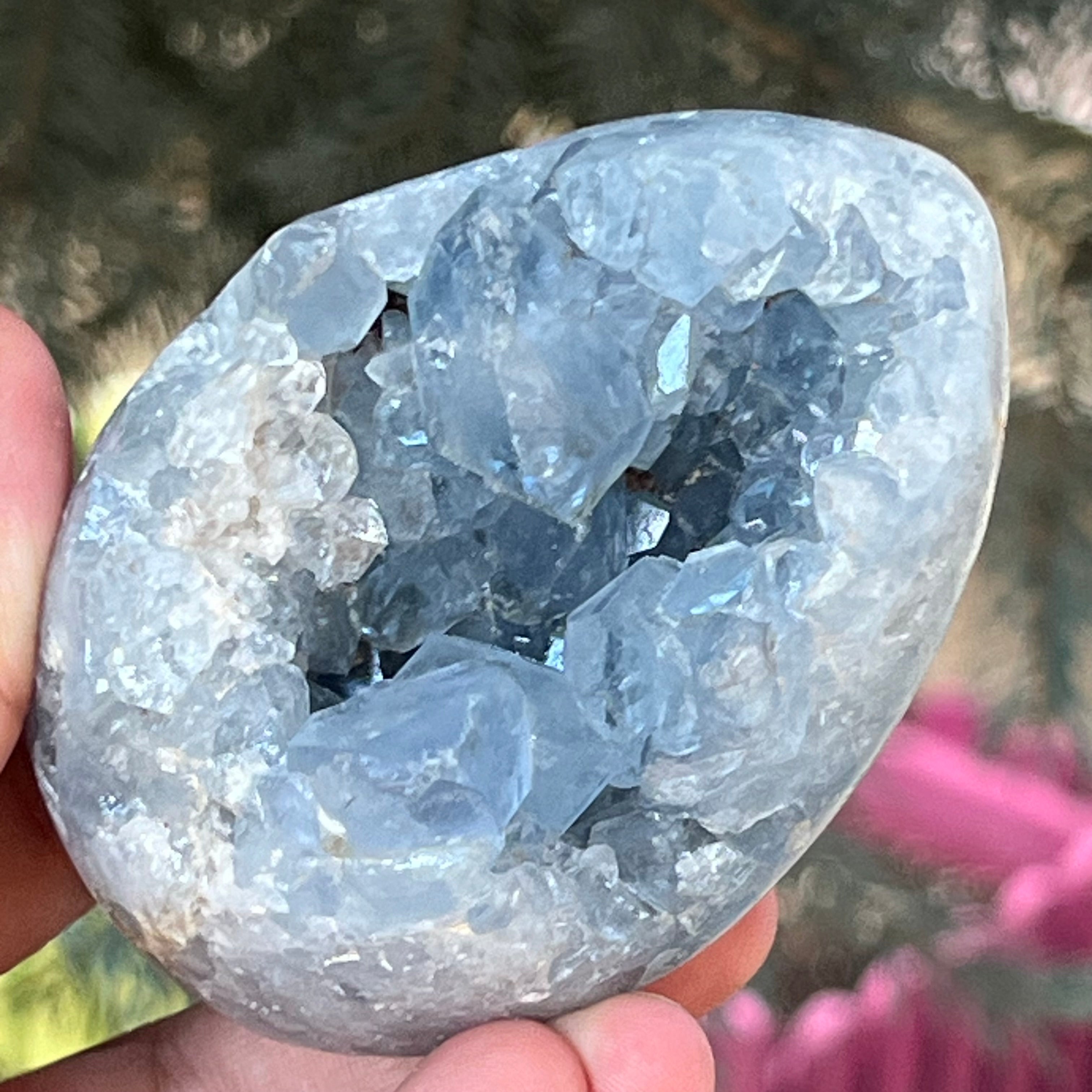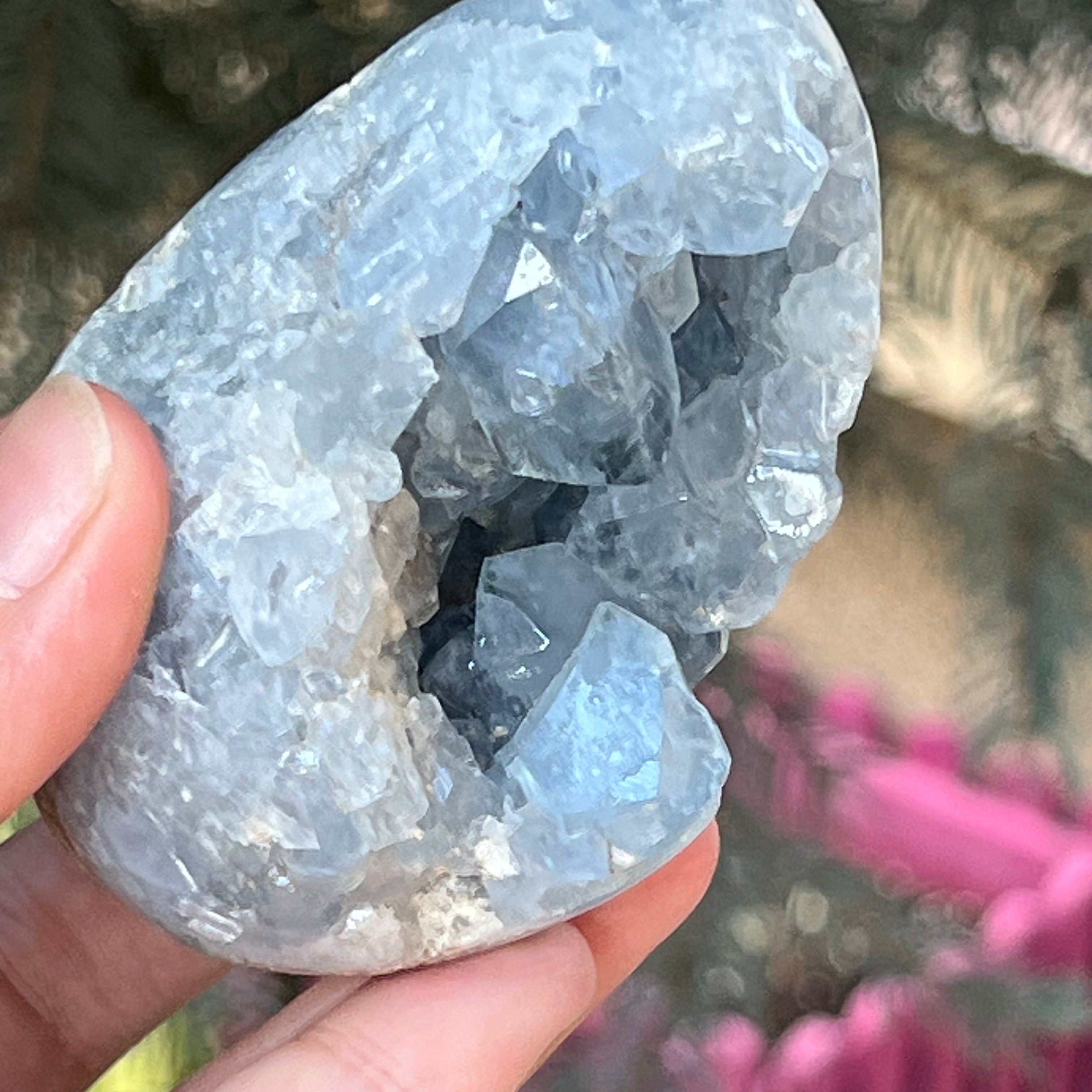 Celestit/celezit tojás geoda, 61-es modell, mérete 8,5 cm * 6 cm * 6 cm