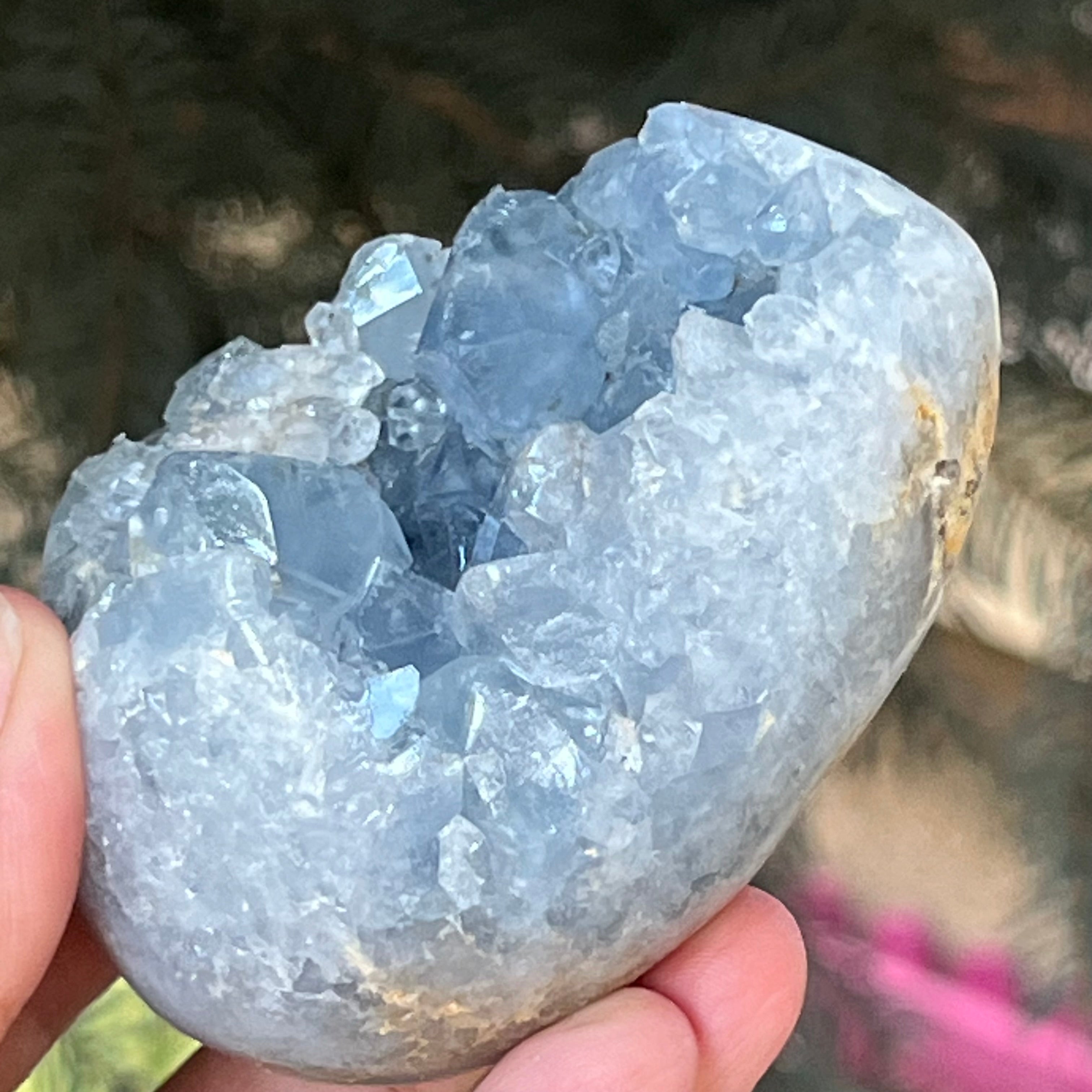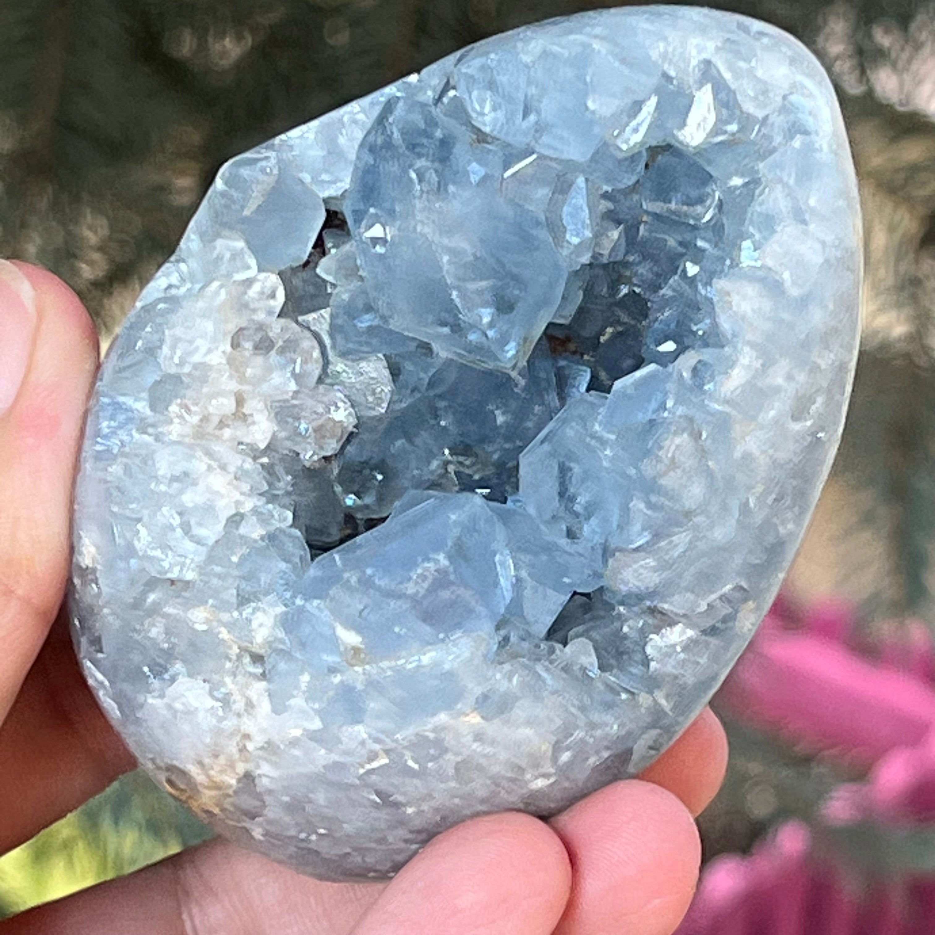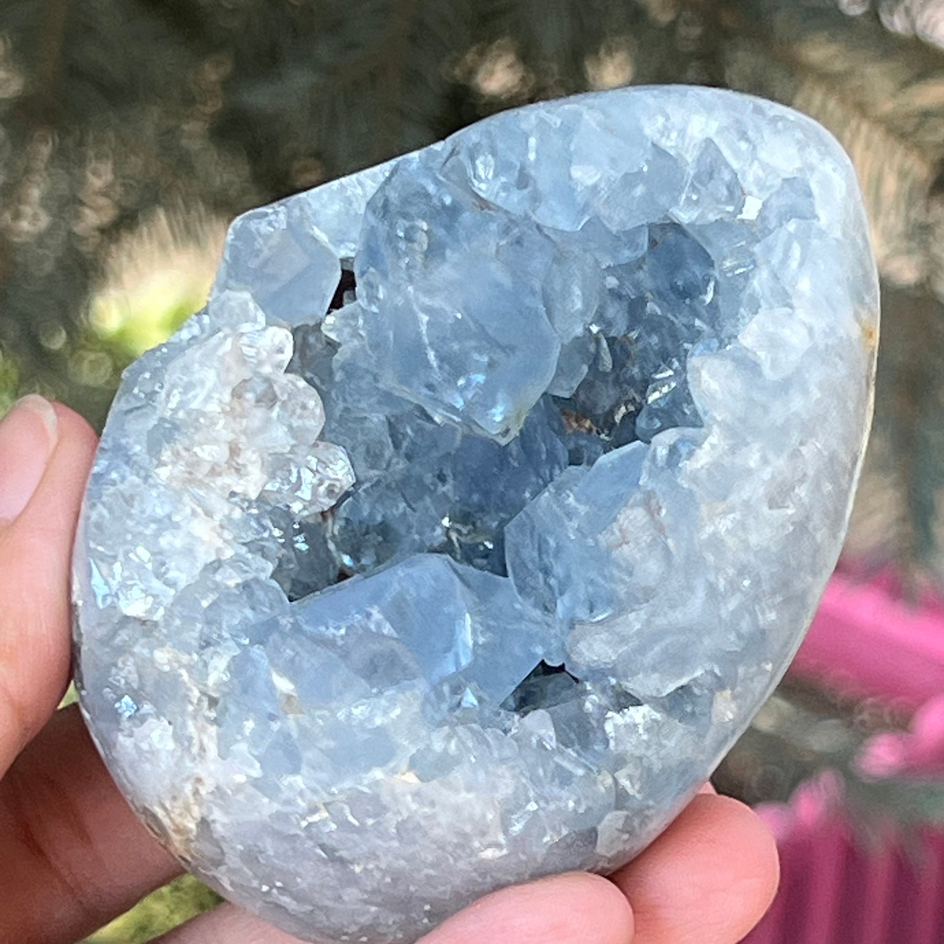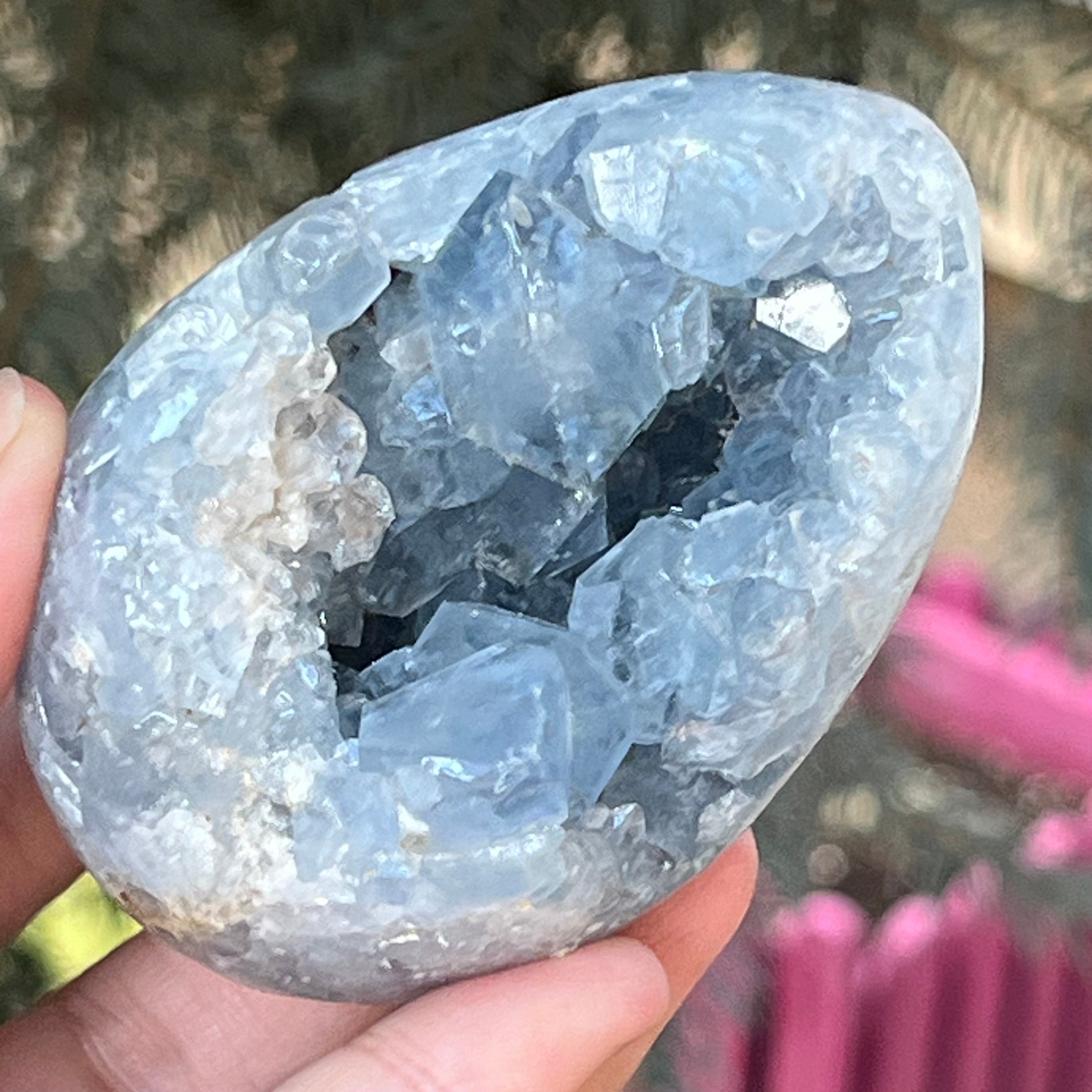 Celestit/celezit tojás geoda, 61-es modell, mérete 8,5 cm * 6 cm * 6 cm