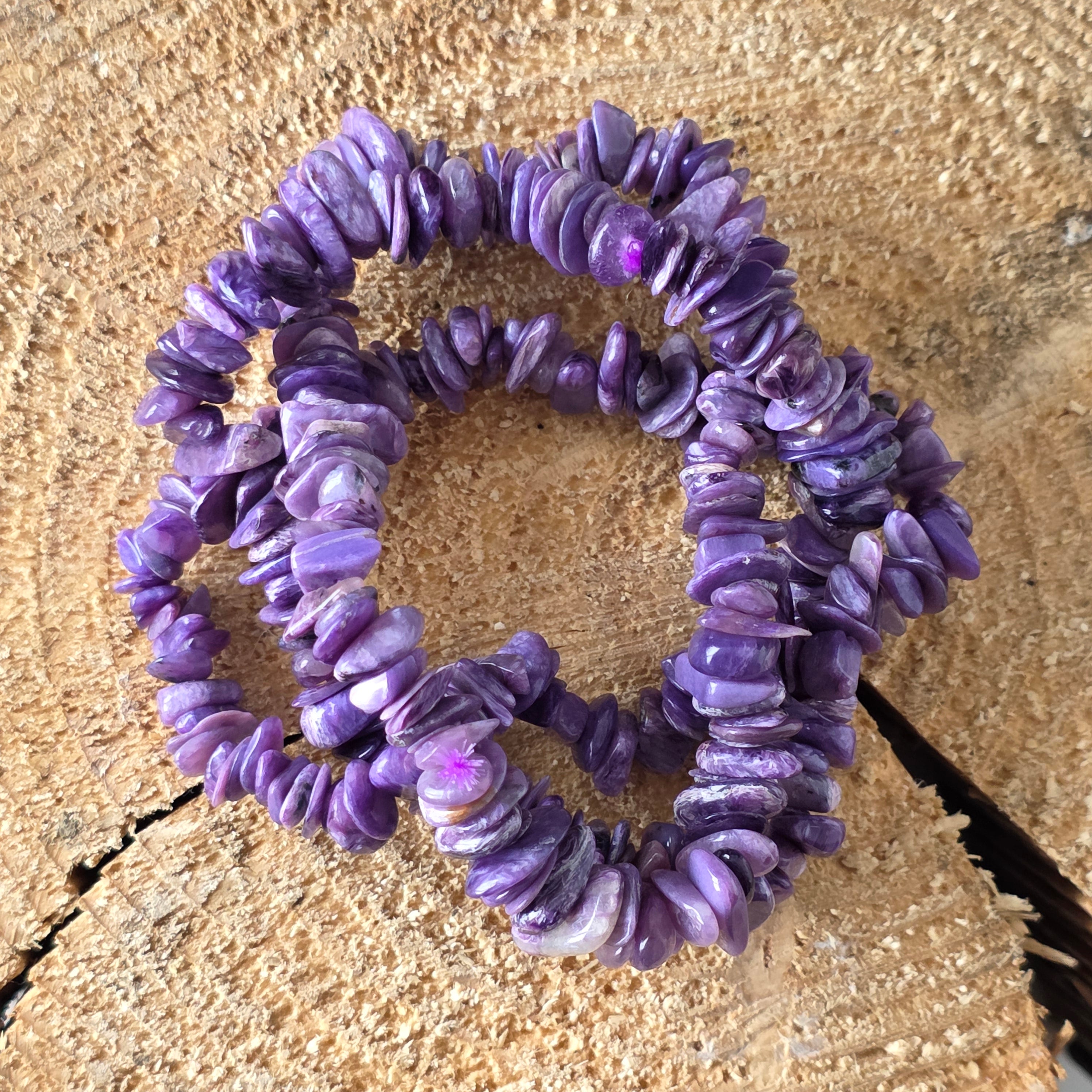• Kő: természetes charoit (szabálytalan, kézzel csiszolt chips) - a transzmutáció és belső tisztítás köve