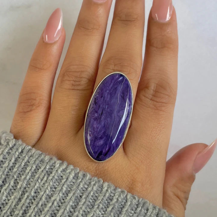 Válassza ezt a természetes chairoitos ezüst gyűrűt, egy olyan darabot, amely felismerhetetlen megjelenésével tűnik ki, élénk lila árnyalataival és egyedi textúráival. 925-ös ezüstbe foglalva ez a gyűrű kiemeli a kő természetes szépségét és kifinomultságot ad bármilyen öltözékhez.