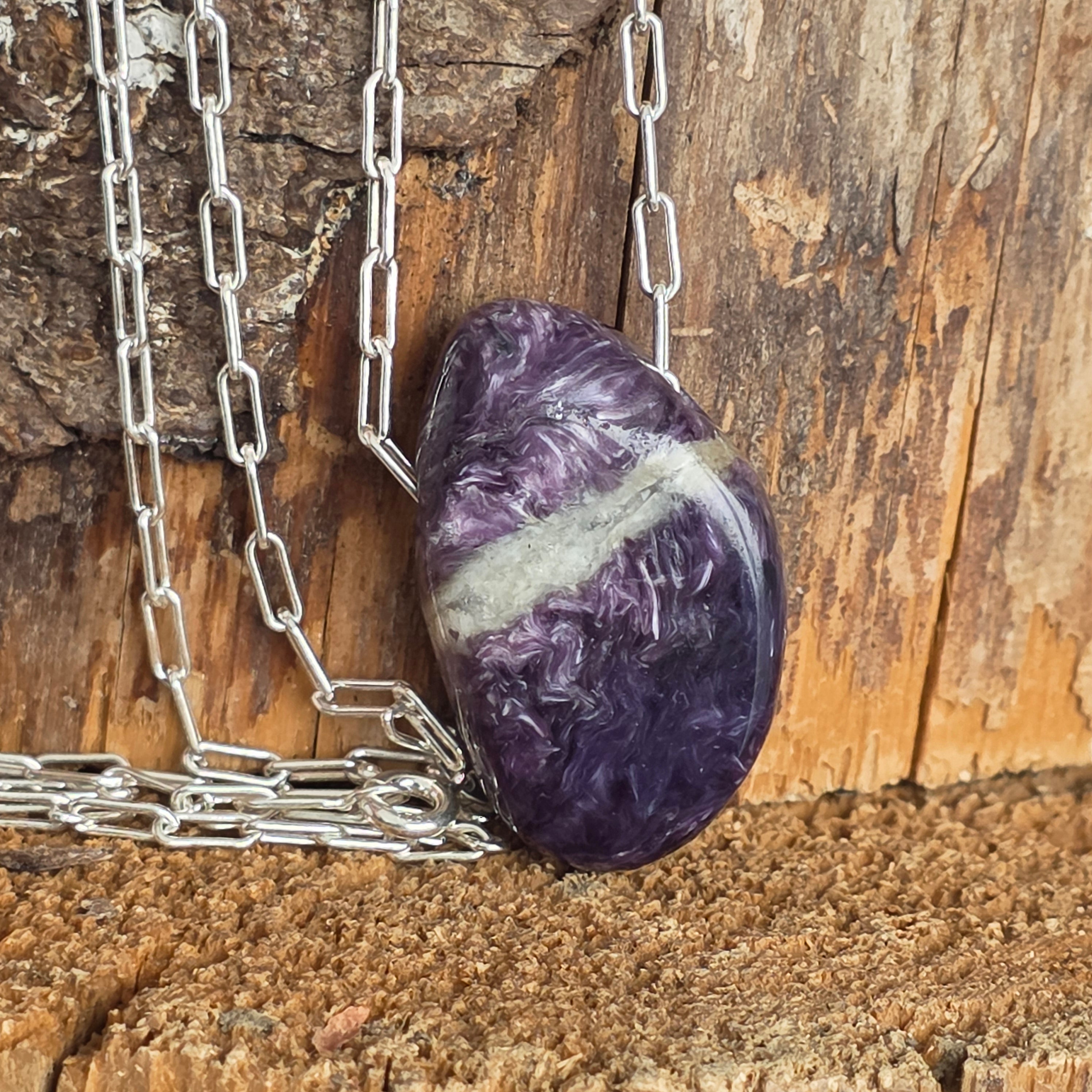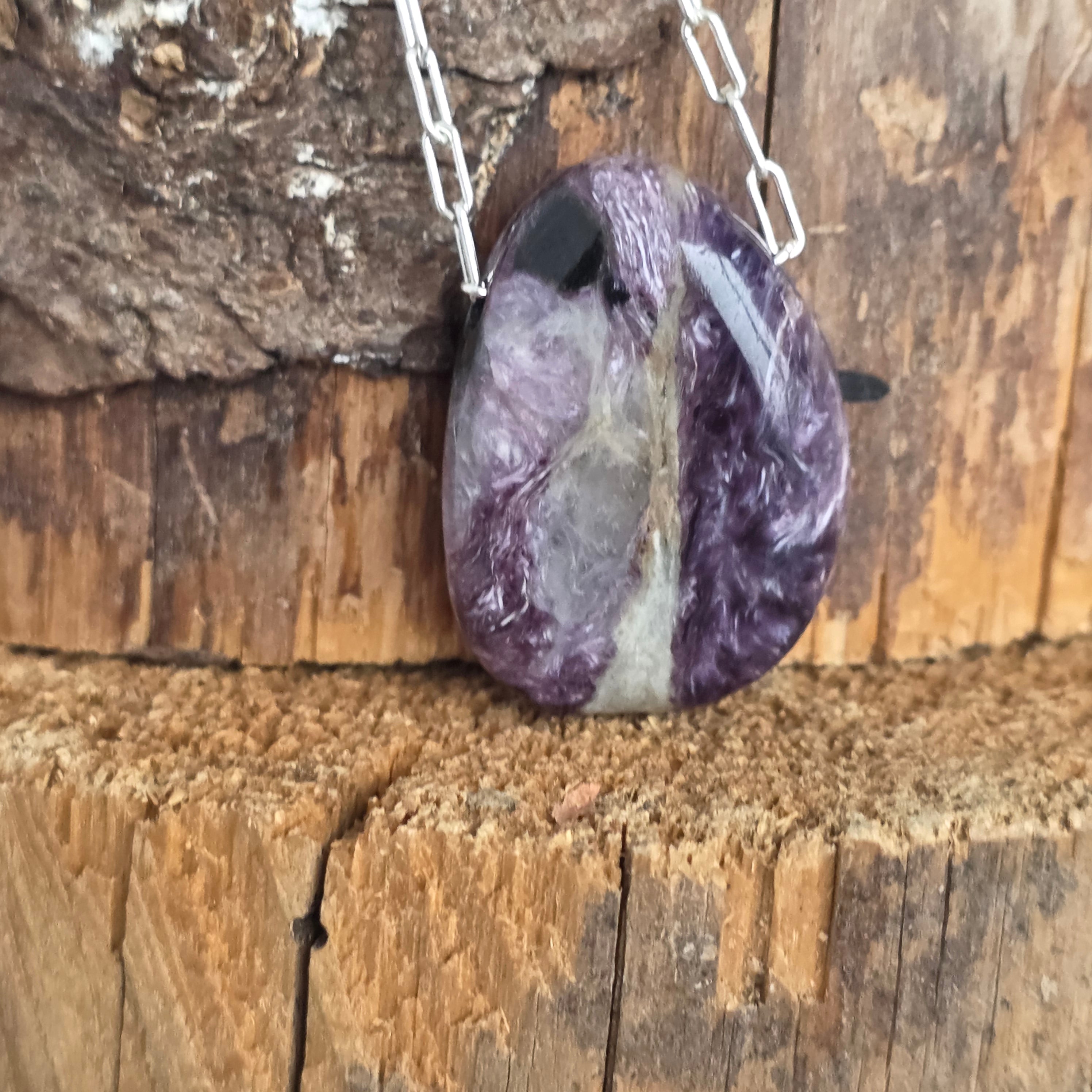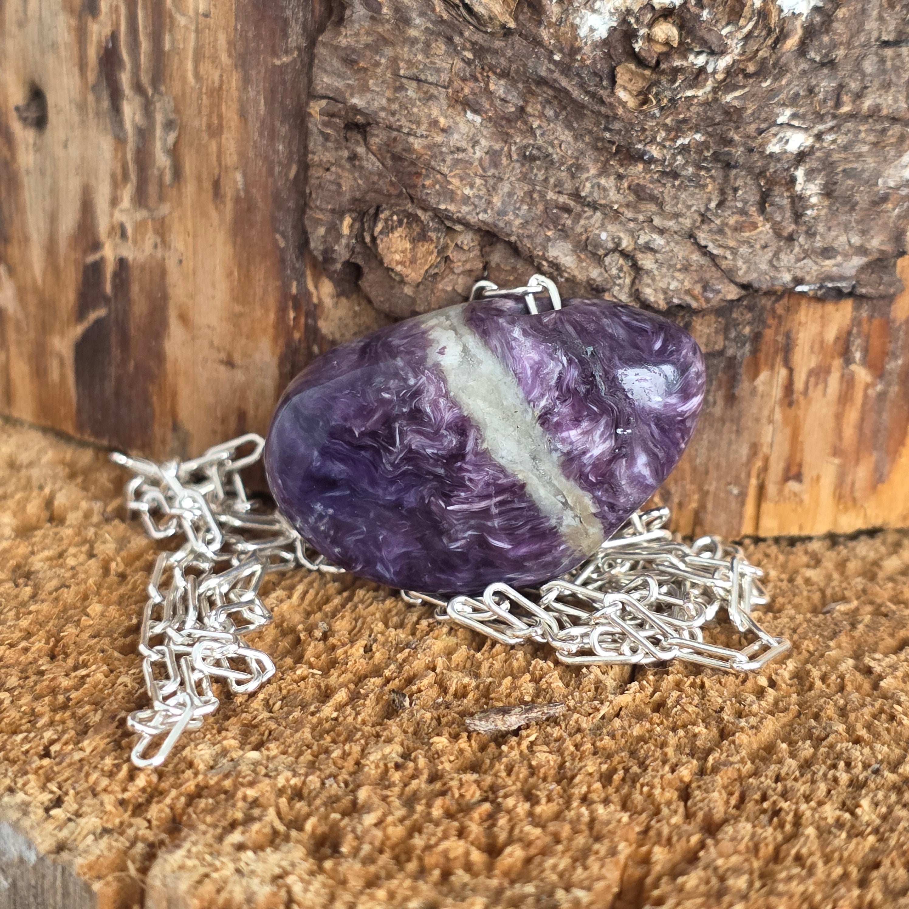 Ritka kálium- és kalciumszilikát, a charoit lila árnyalatokban táncol, mint egy kapu az intuícióhoz, a félelmeket mély bölcsességgé alakítva.