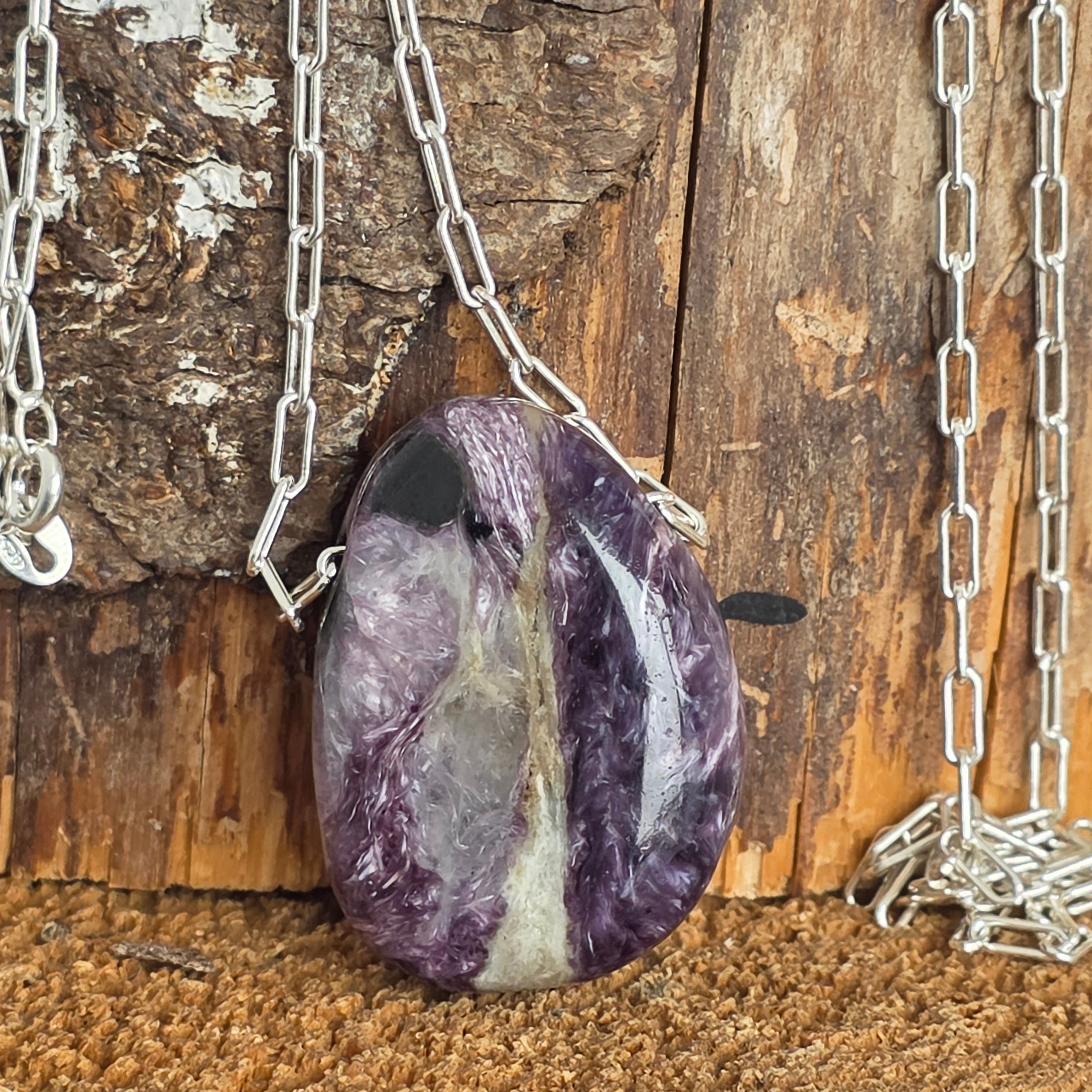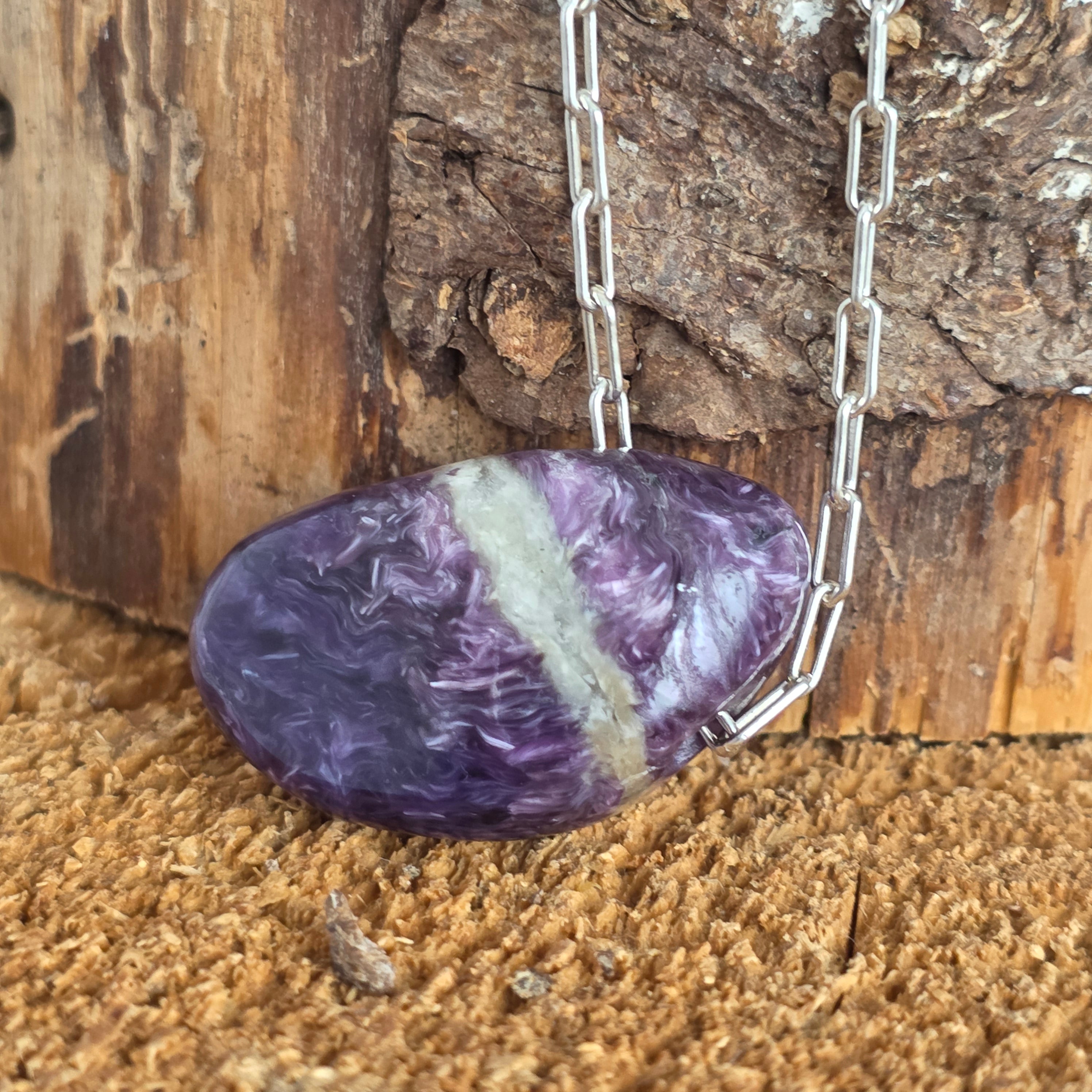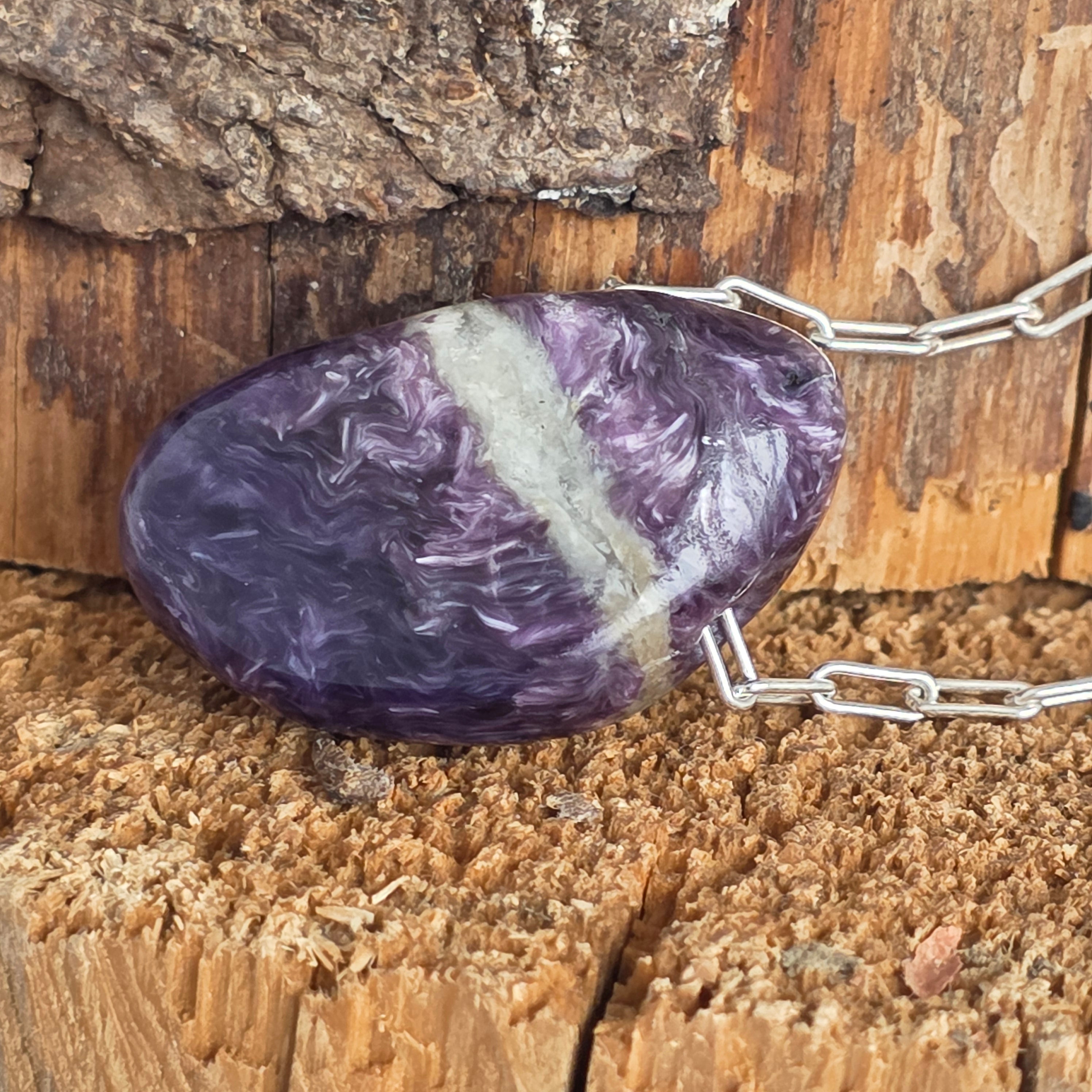 Ritka kálium- és kalciumszilikát, a charoit lila árnyalatokban táncol, mint egy kapu az intuícióhoz, a félelmeket mély bölcsességgé alakítva.