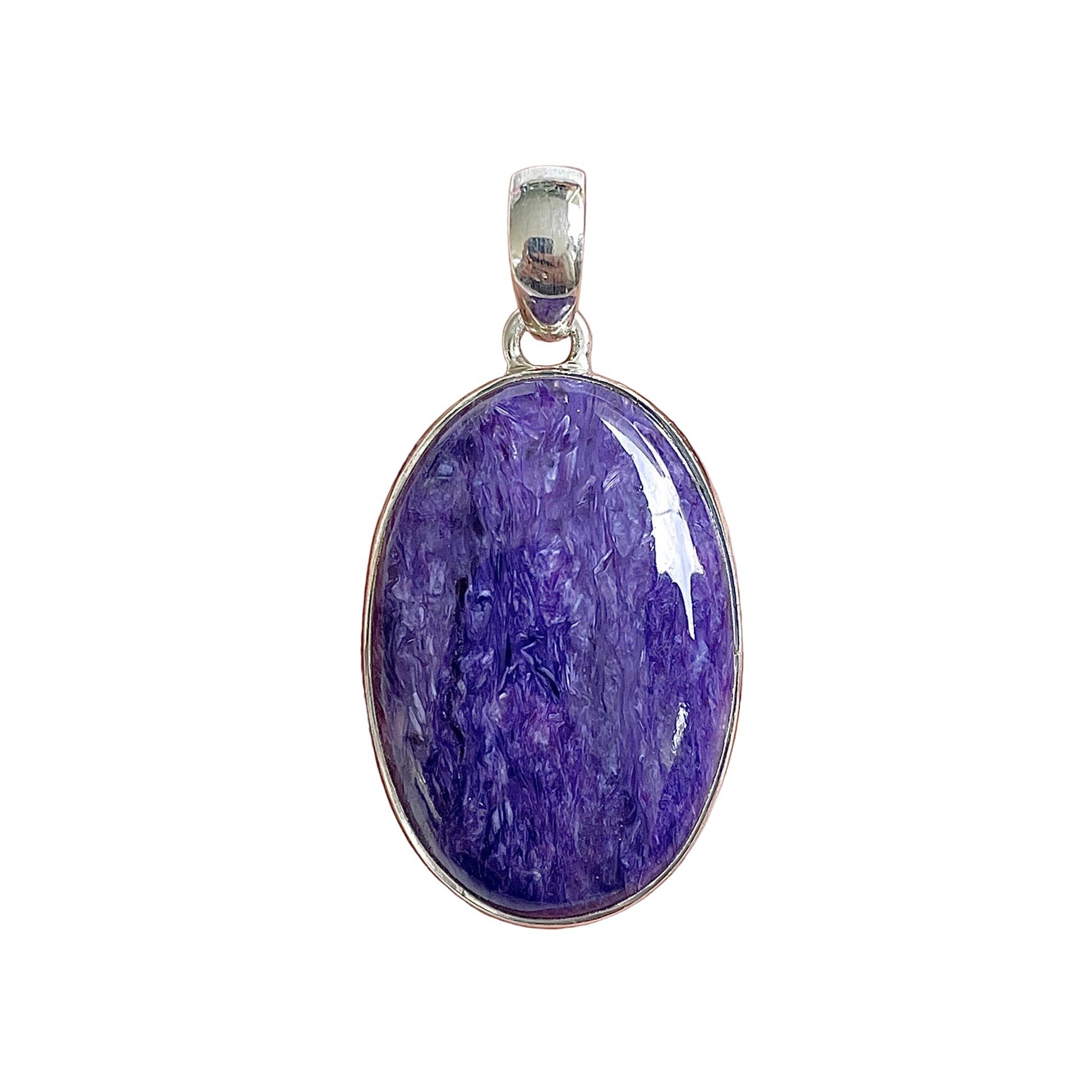 Ez az elegáns medál összehoz 925 ezüst intenzív szépségével természetes charoite, ritka kő mélylila és ezüstös árnyalatokkal, amelyek hipnotikus fényjátékot keltenek. Klasszikus ovális formája kiemeli a kristály természetes textúráinak harmóniáját és folyékonyságát.