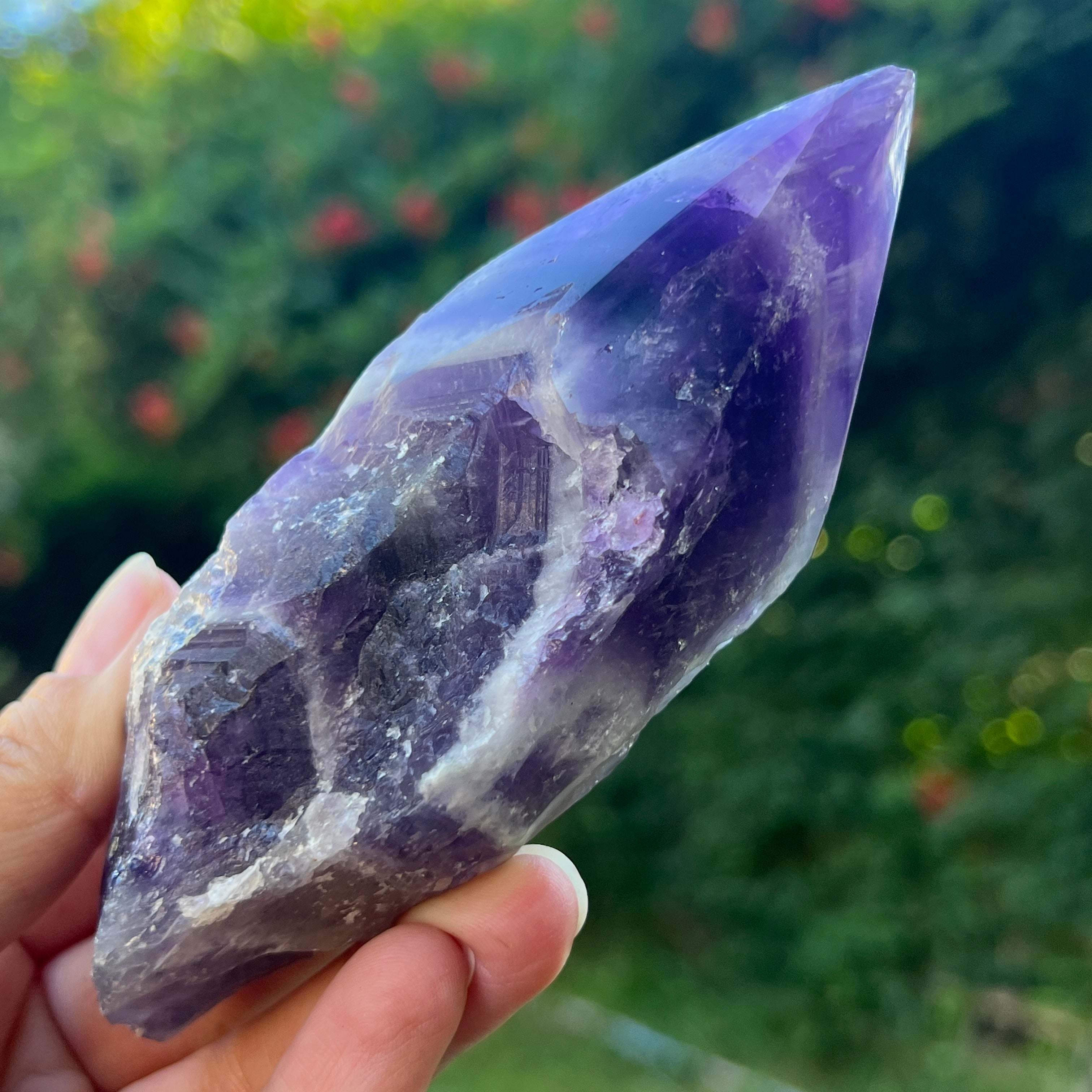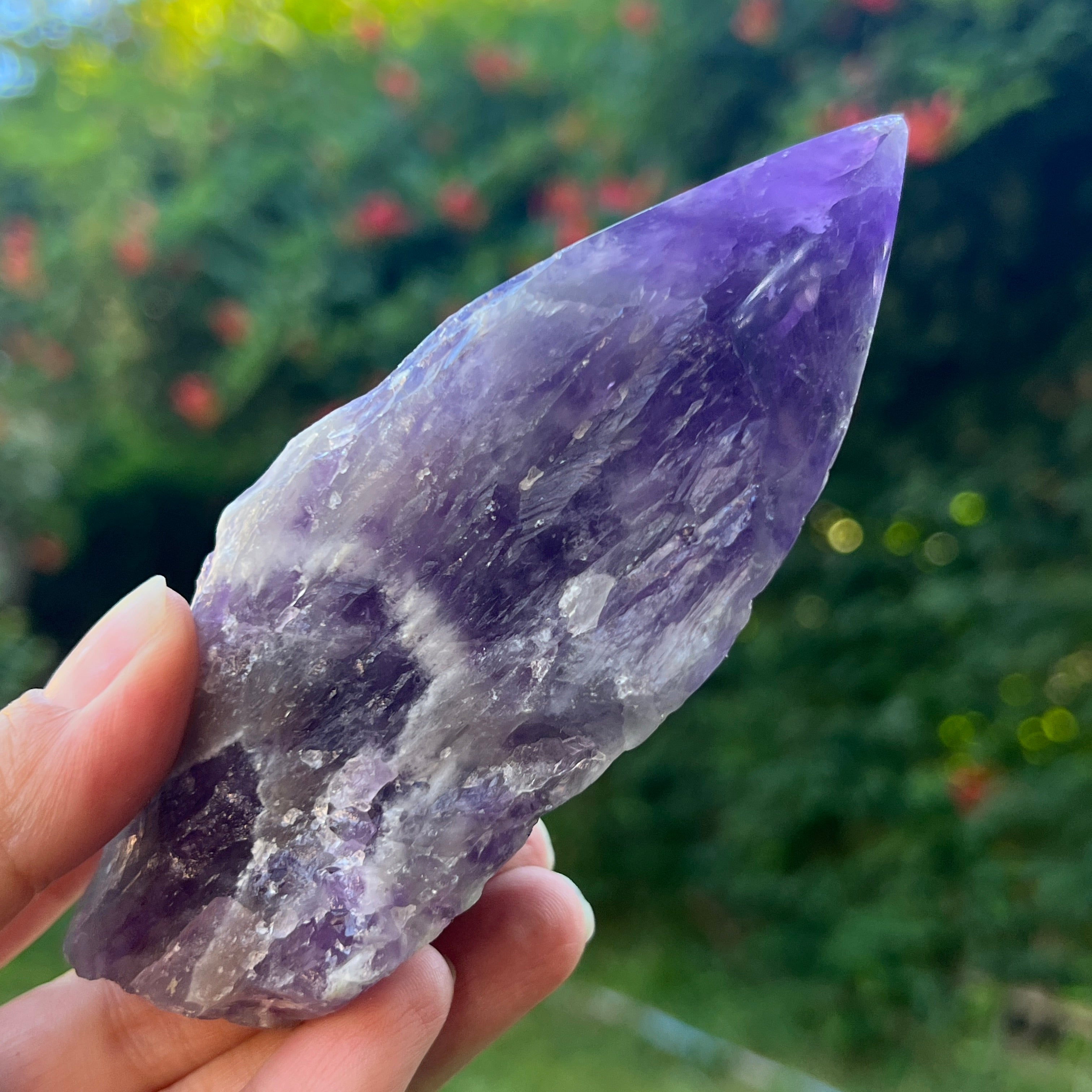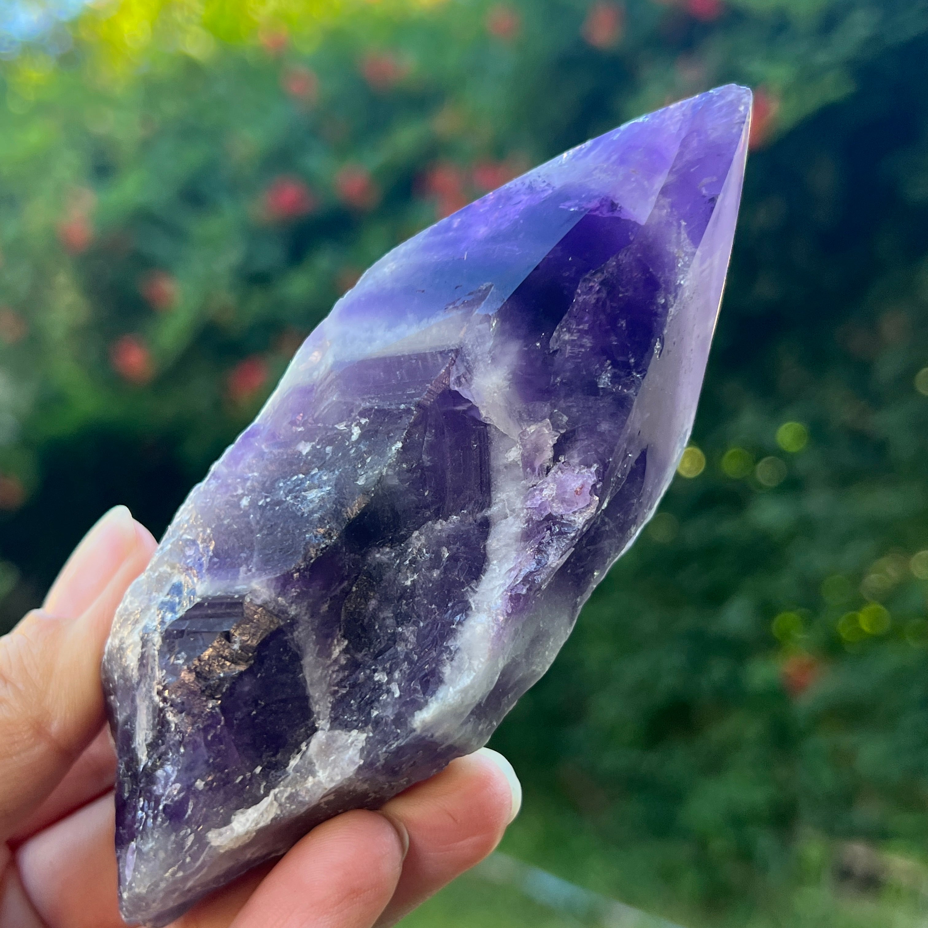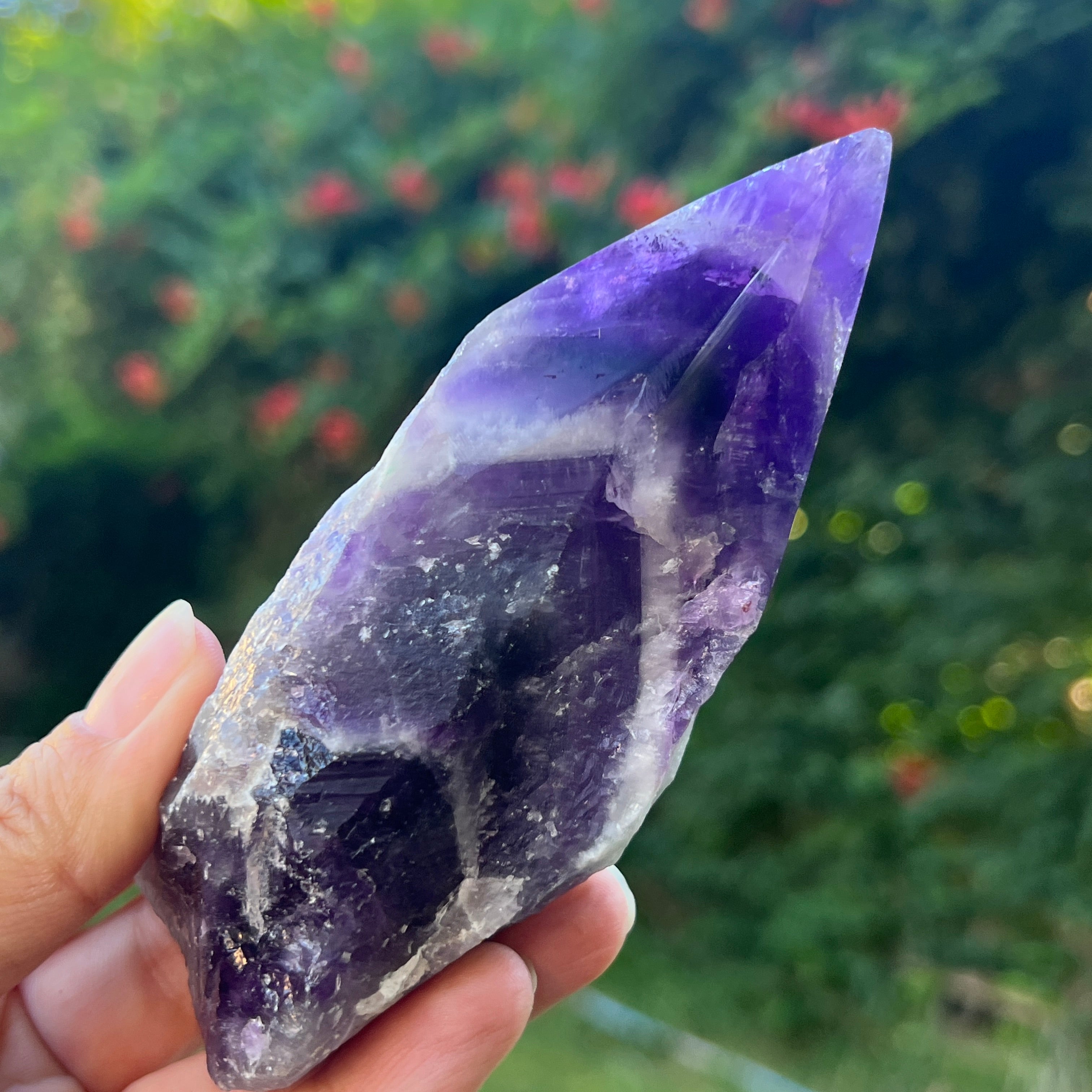 A chevron ametiszt használható meditációhoz, ékszerként, vagy hogy természetes és elegáns megjelenést adjon az otthonának vagy irodájának.