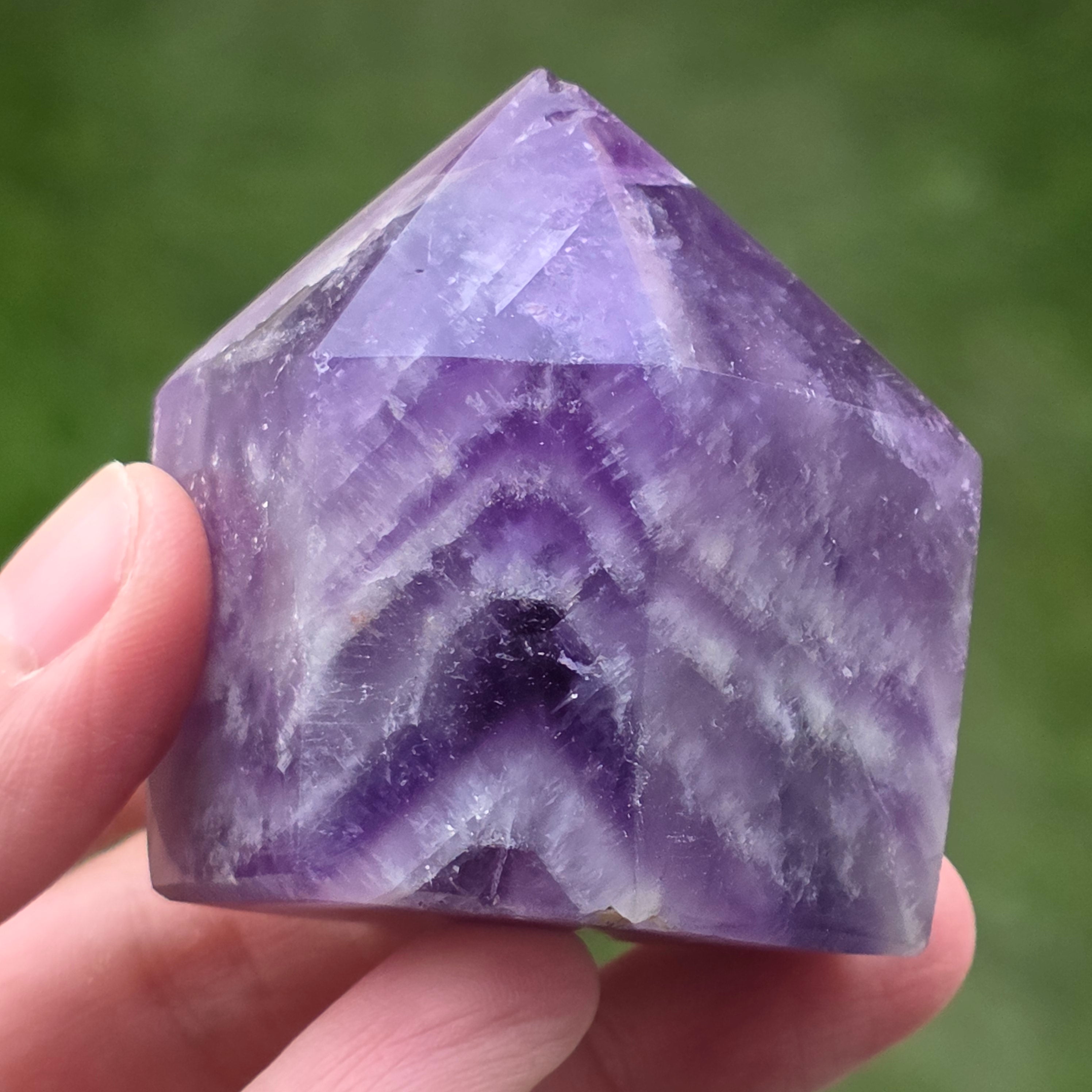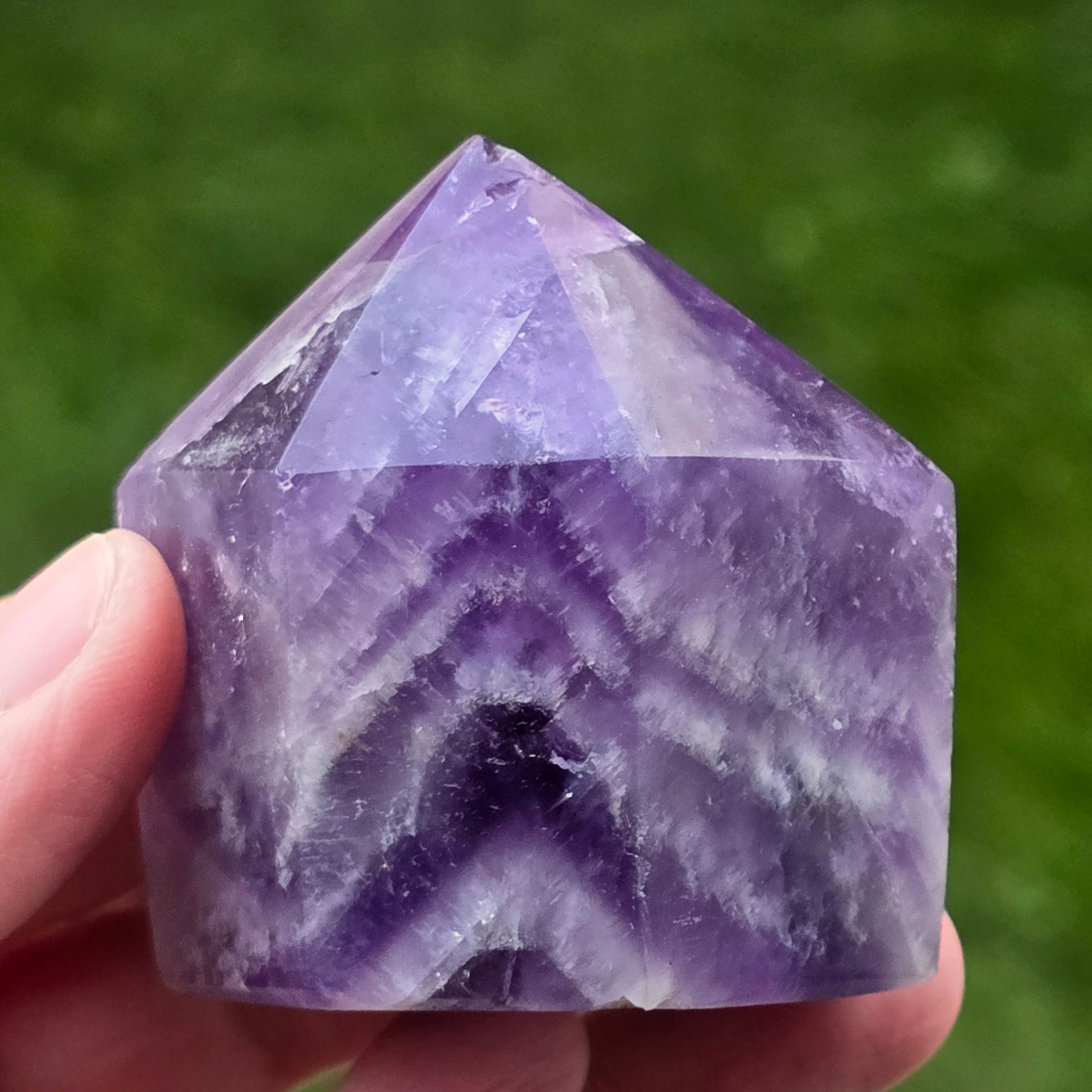 A chevron ametiszt használható meditációhoz, ékszerként, vagy természetes és elegáns megjelenést adhat az otthonnak vagy az irodának.