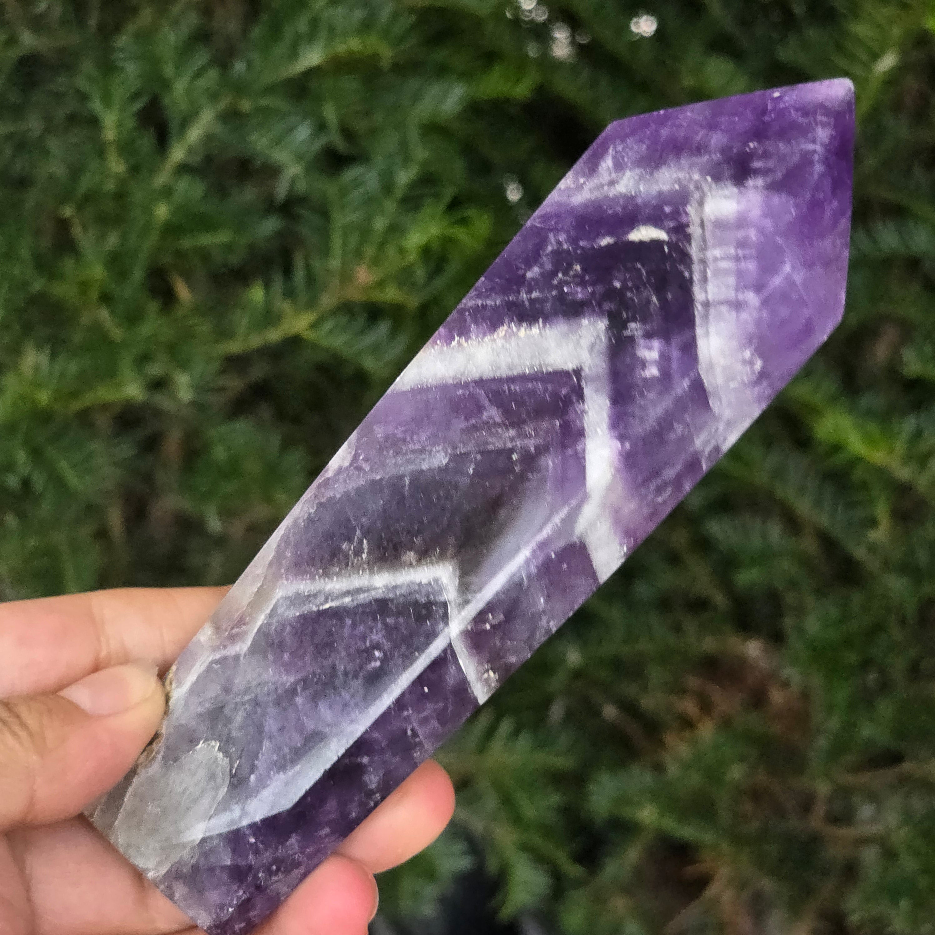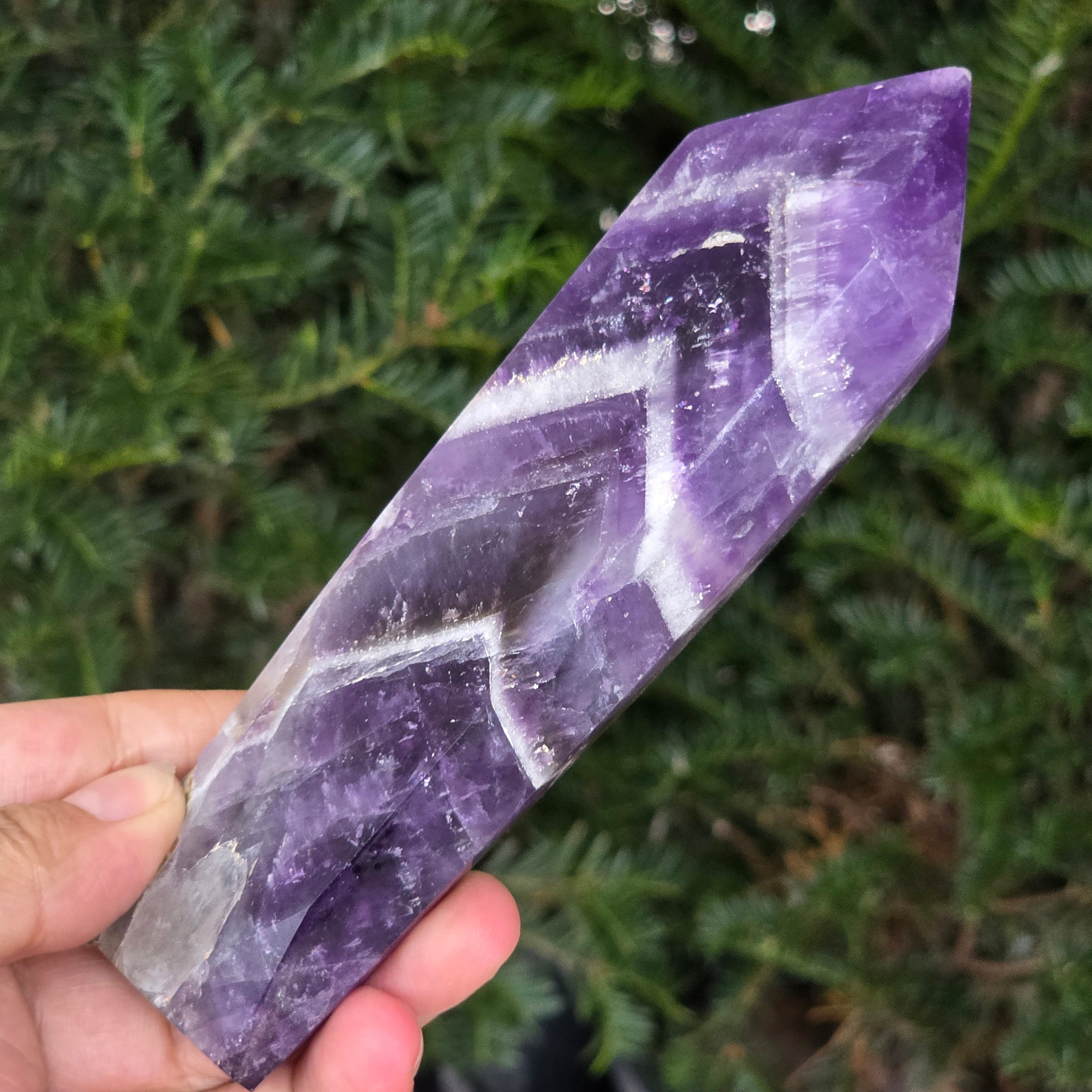 Válassz egy Chevron ametiszt obeliszket és hagyd, hogy energiát tisztító, egyensúlyt teremtő és misztikus eleganciát sugárzó hatása beáramoljon a teredbe — a tisztaság és spirituális védelem szimbóluma.
