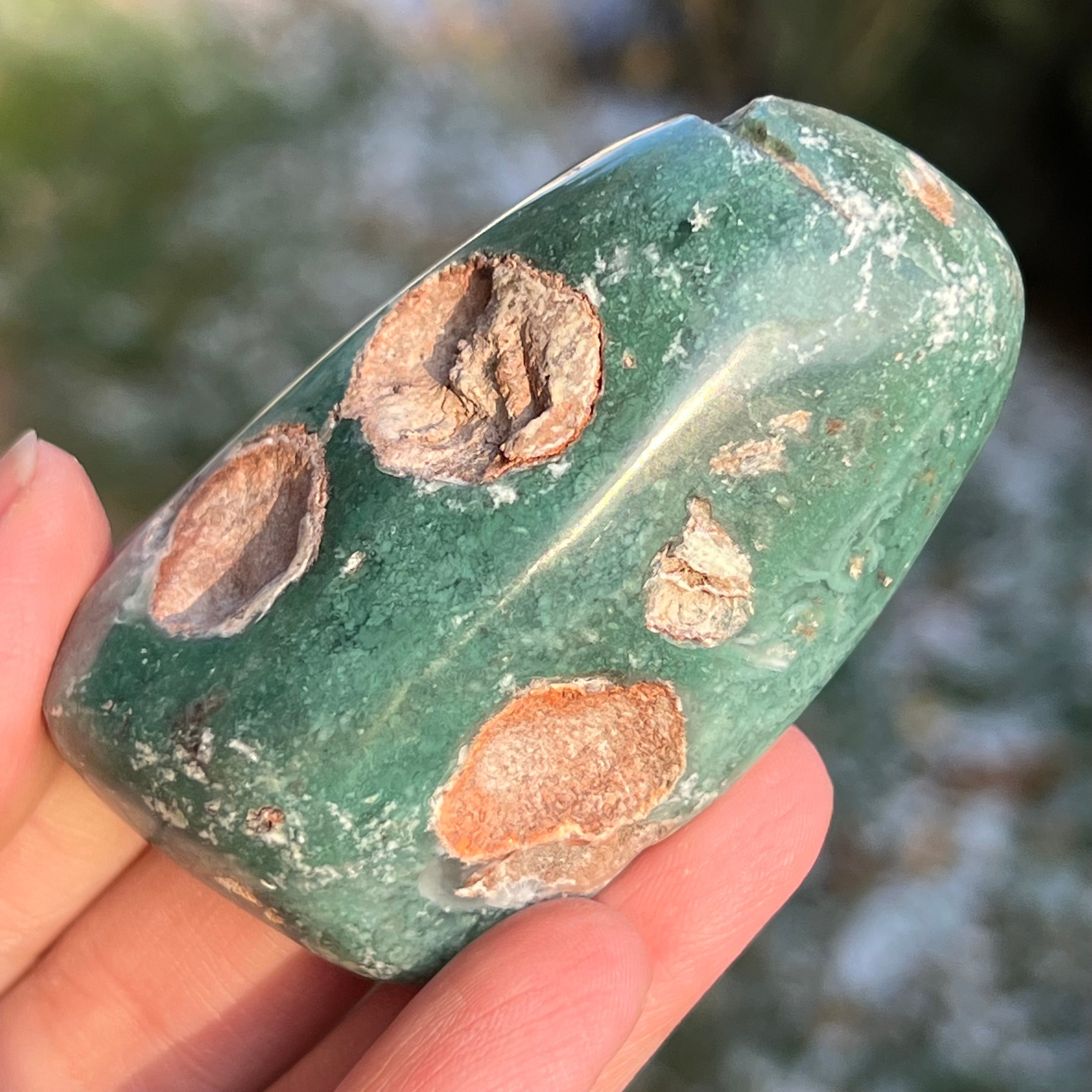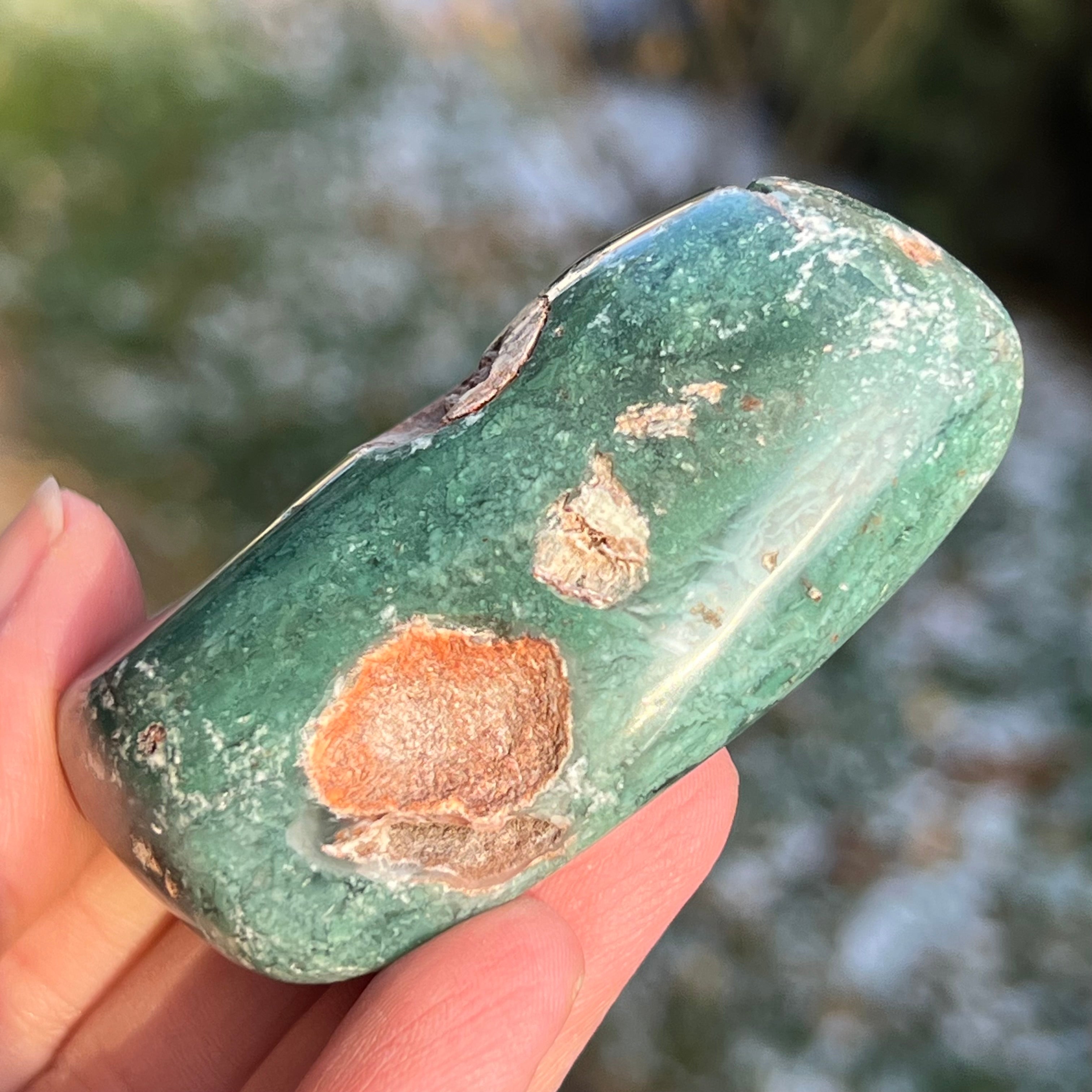 Chrysoprase smaragd pálmakő modell 3 Zimbabwéből, mérete: 7,1 * 4 * 2,5 cm