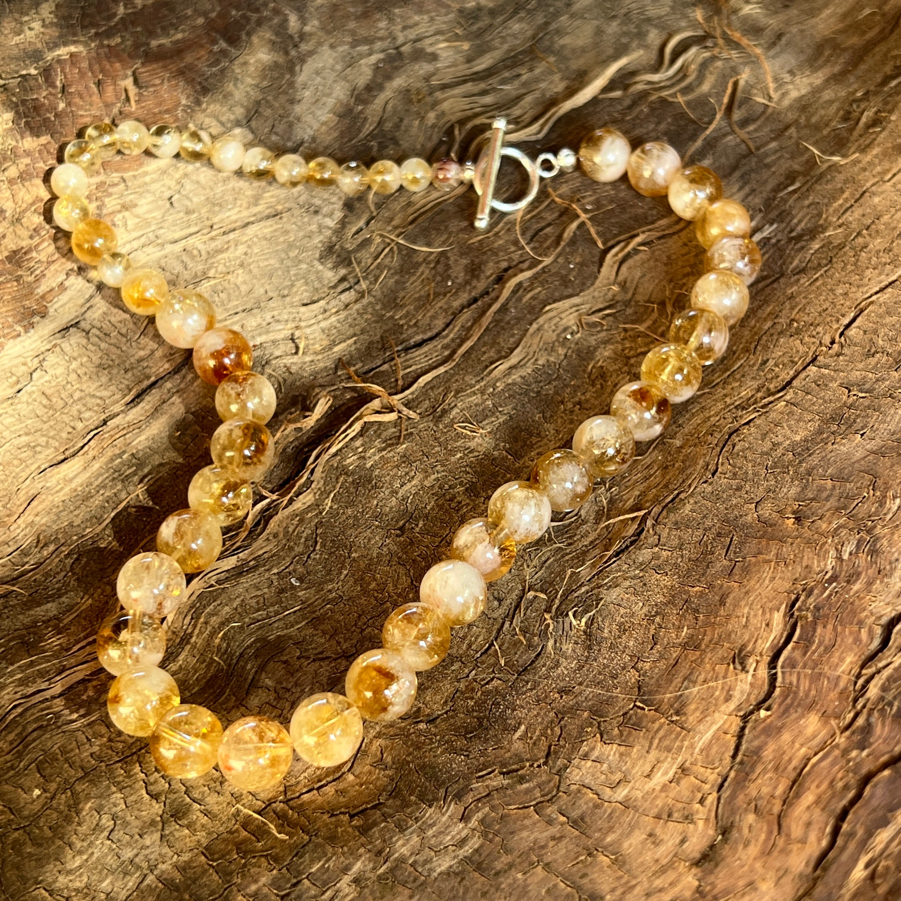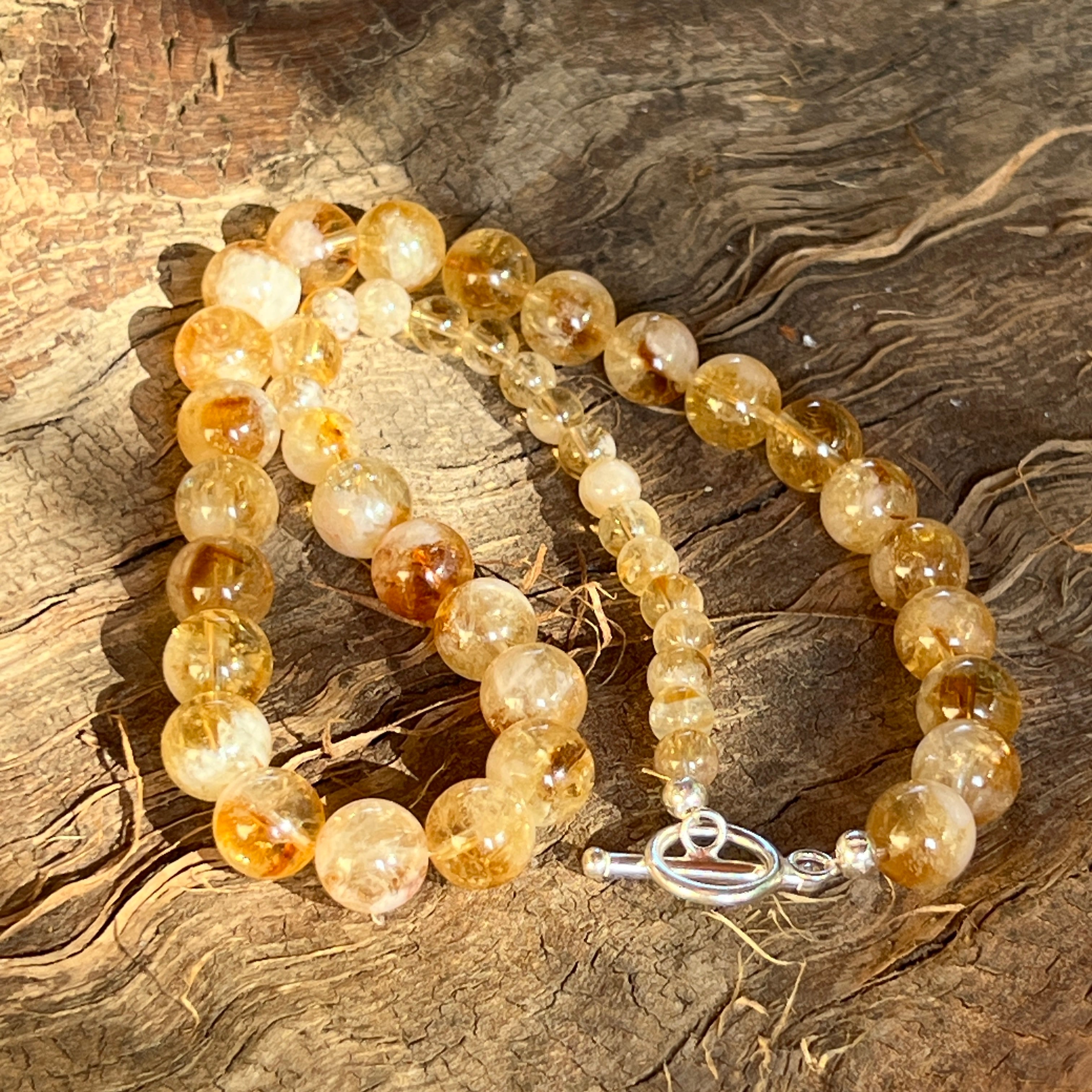 Egy nyaklánc, amely megragadja a fényt – egyszerűen. Természetes citrinből készült, csiszolt gyöngyökkel 10, 8 és 6 mm, ez a nyaklánc melegséget, örömöt és tisztaságot sugároz. Nem csak egy ékszer, hanem az optimizmus és a belső erő állandó emlékeztetője.