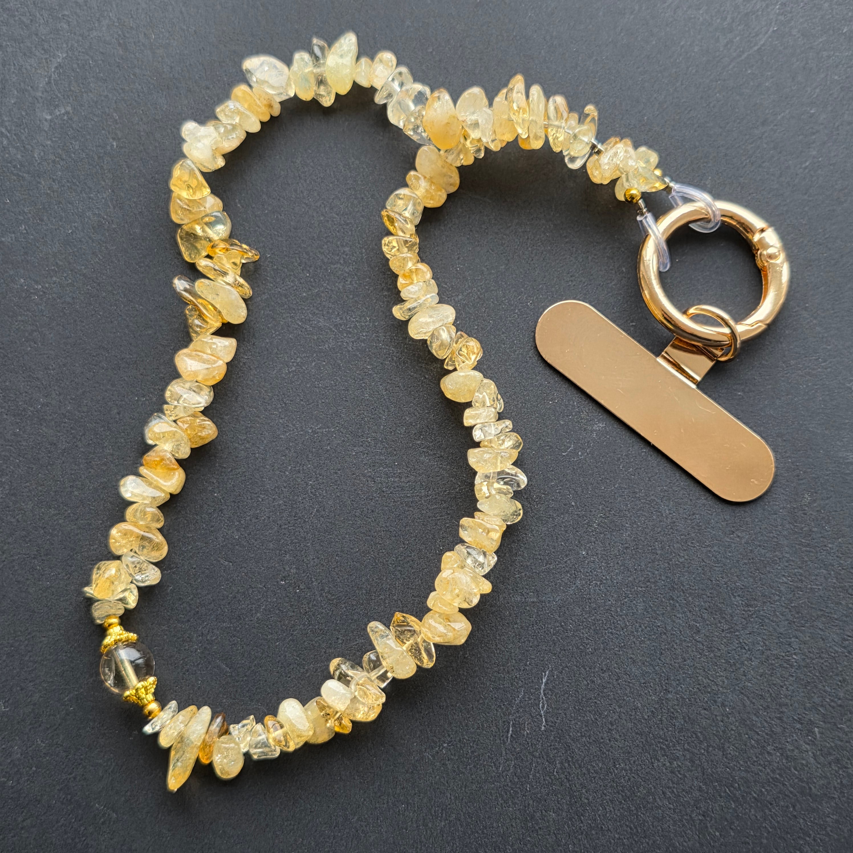 A citrin a napenergia köve, amelyet az optimizmushoz, mentális tisztasághoz és jókedvhez társítanak. Sárga-arany csipei fényes és vidám hangsúlyt adnak a telefonnak, így a praktikus kiegészítőt elegáns és élettel teli részletté változtatják.