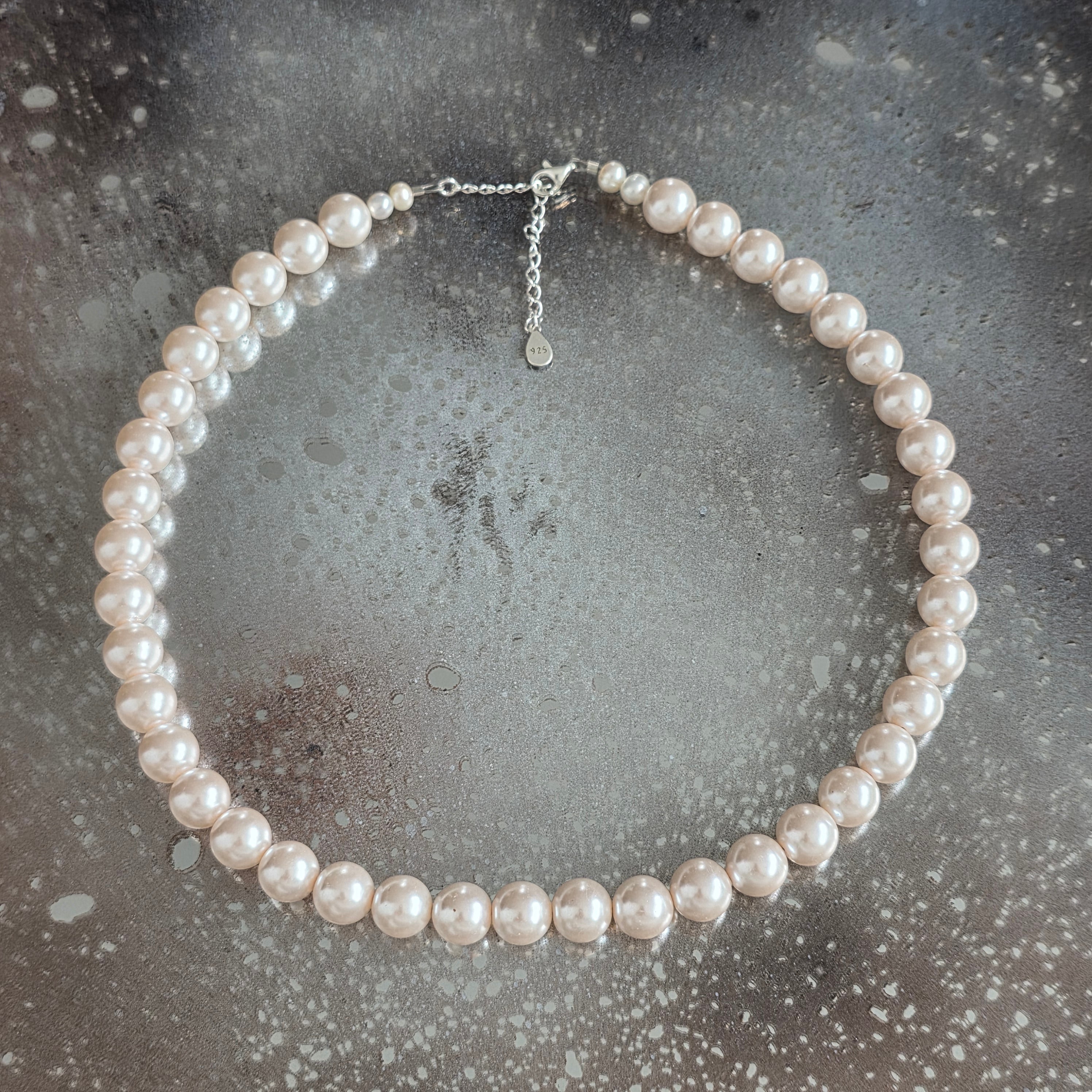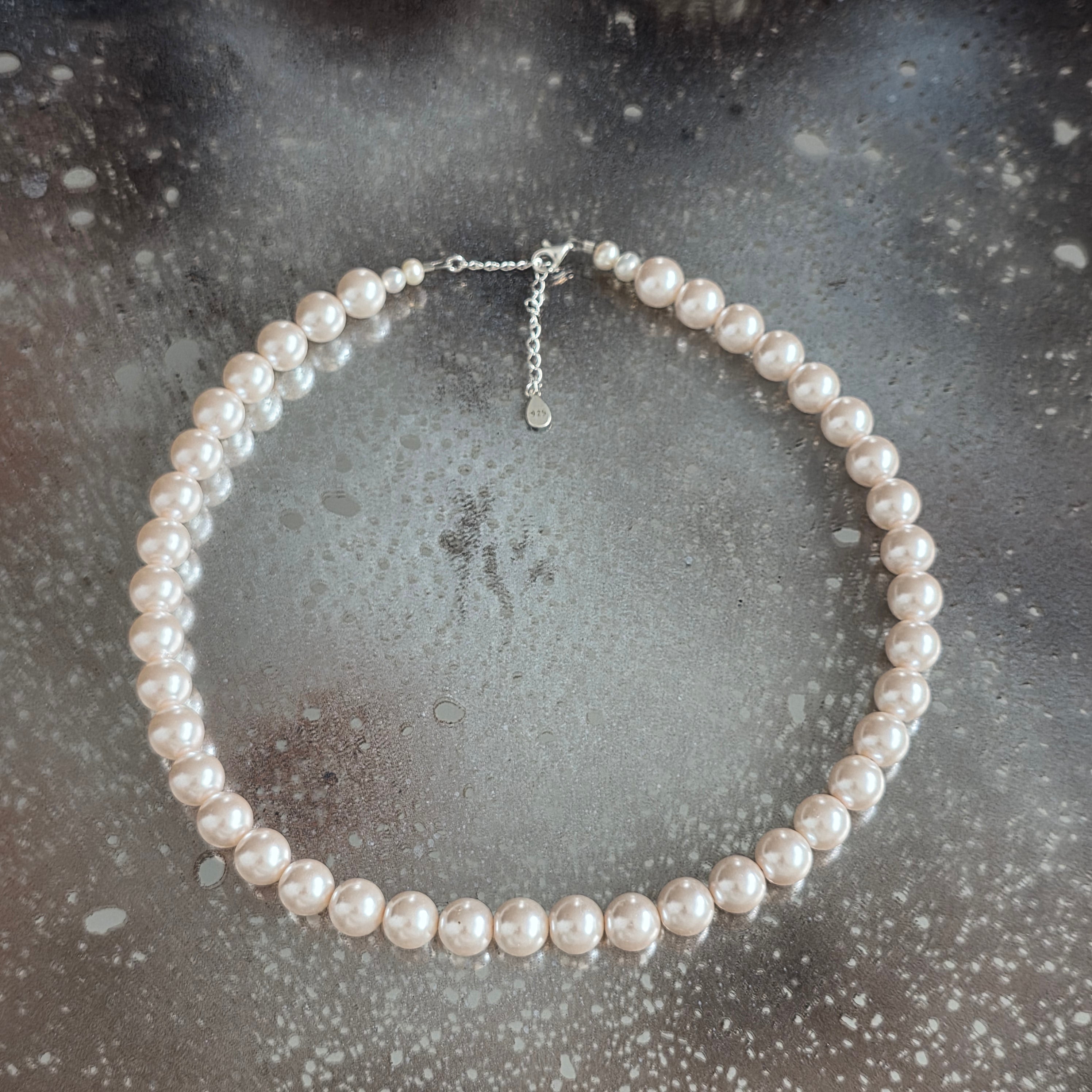 Egy klasszikus nyaklánc, amelyet az egyszerűség és az egyensúly révén újraértelmeztek, ahol a 9 mm-es kultúrmogyorók időtlen eleganciát hoznak, könnyen beilleszthető bármilyen stílusba. Minden gömb finoman tükrözi a fényt, nyugodt és kifinomult jelenlétet teremtve.