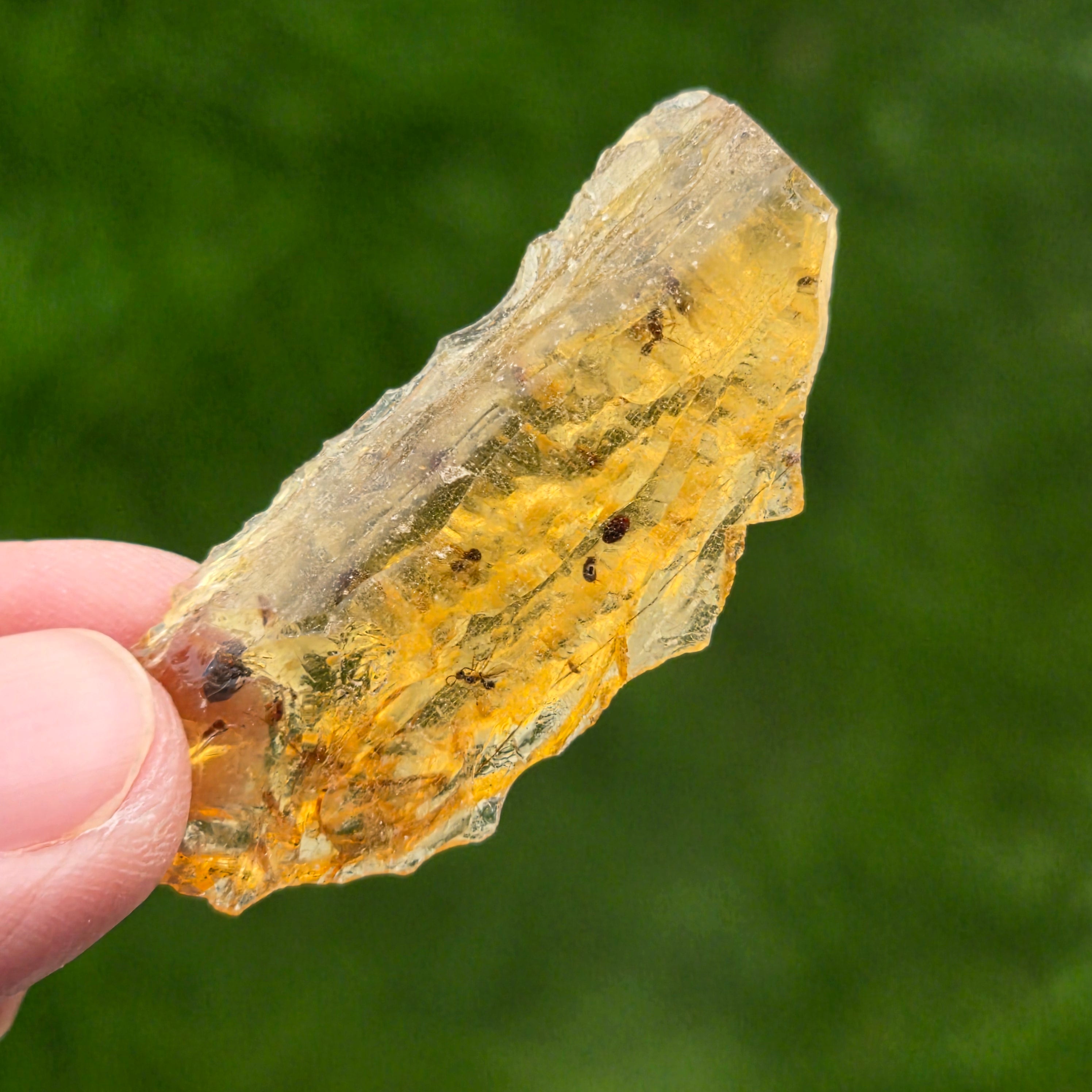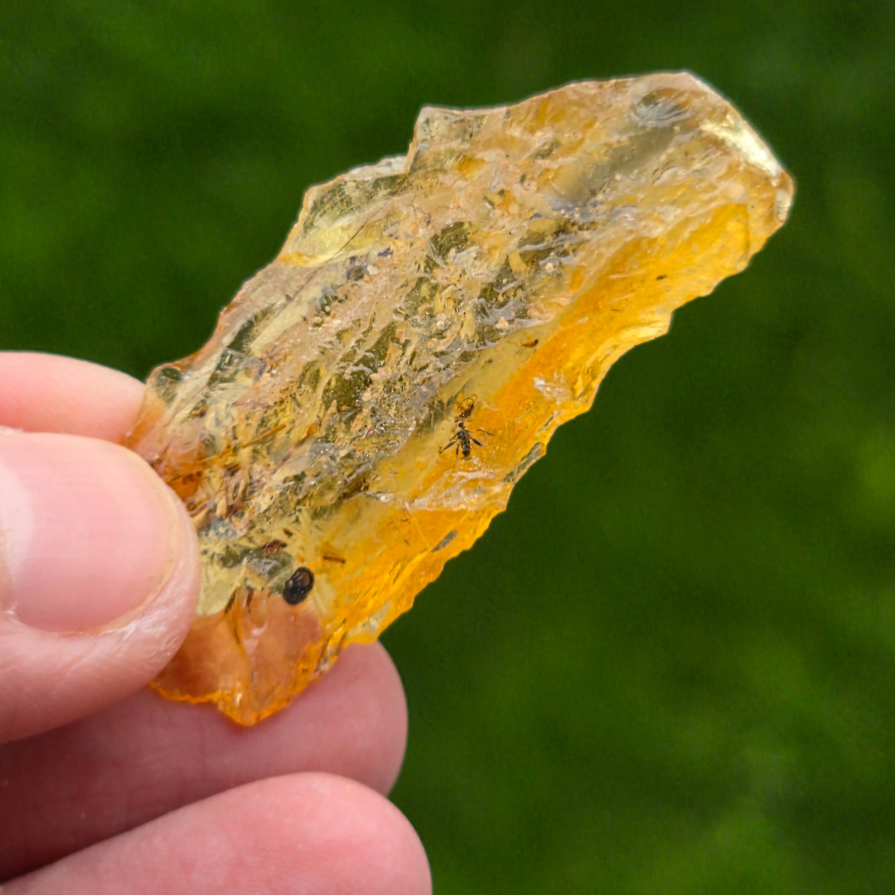 A Copal, amelyet gyakran szubfosszilis gyantának is neveznek, az amber korai formája – egy természetes gyanta, amely megőrizte napfényét és átlátszóságát, mielőtt valódi geológiai fosszilizációba lépett volna. Trópusi fákból származó ez a finom anyag több évszázad vagy évezred emlékét hordozza, megragadva az erdői élet töredékeit, ahogy egykor léteztek. Könnyebb, melegebb tapintásra, és világosabb, mint az érett borostyán, sima megjelenése pedig ideálissá teszi gyűjtőknek, ékszerkészítőknek és a természetes történetmesélő szerelmeseknek. A Copalban az idő még nem kő – még mindig fény, még mozgás, még mindig ígéret.