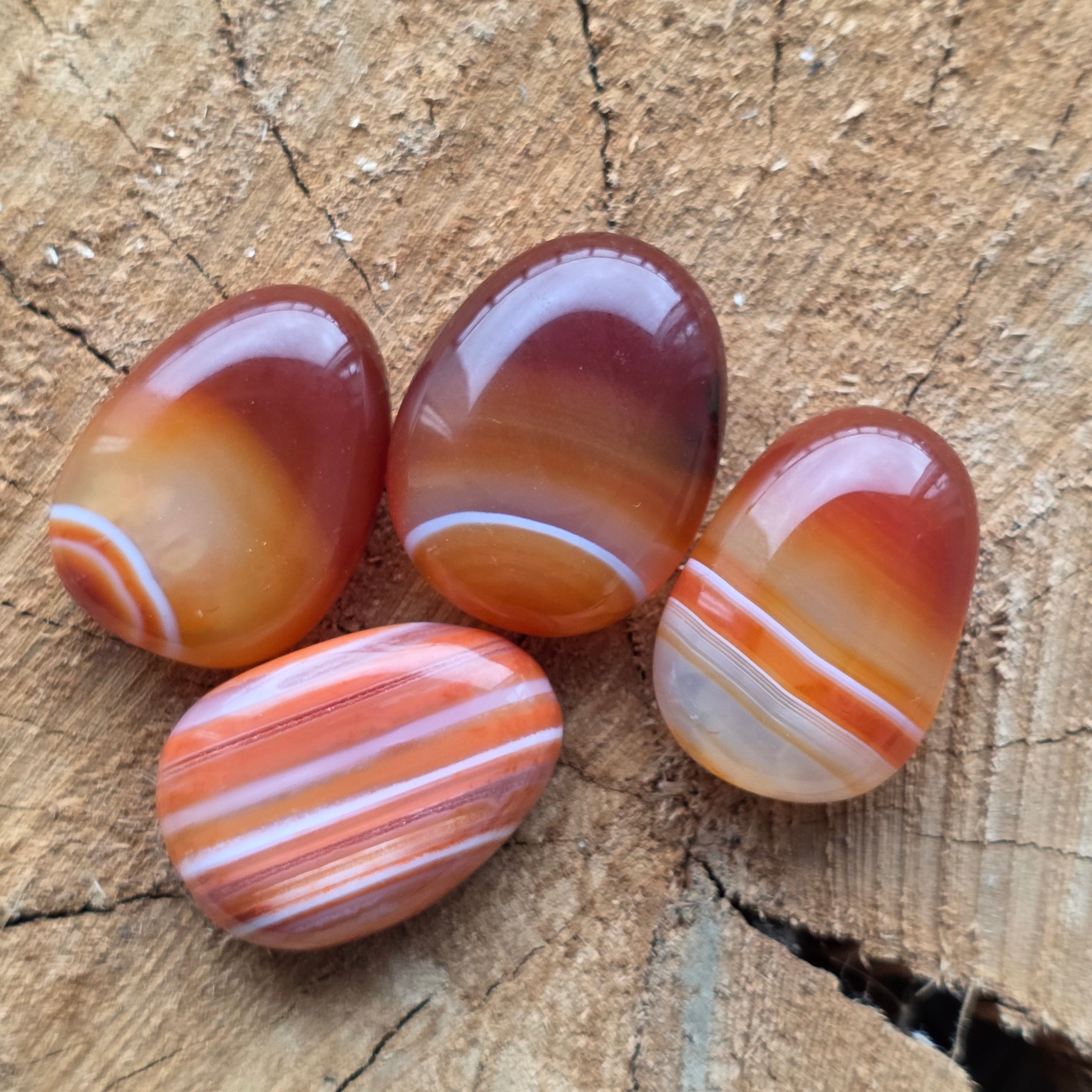 Csíkos carnelian kabochon, csiszolt