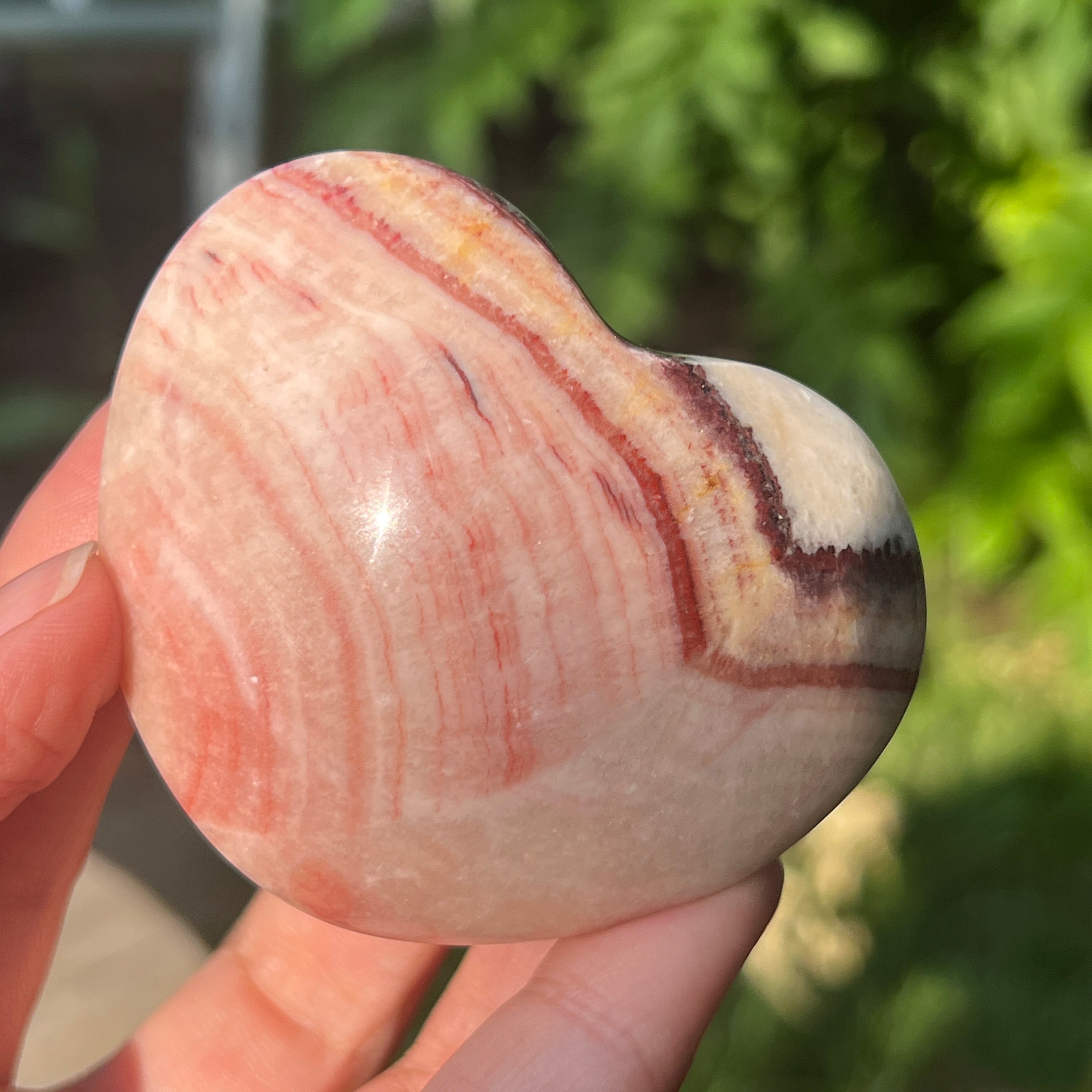 Csíkos rózsakvarc kalcit szív m4. Mérete: 6,7 x 5,9 x 3,2 cm