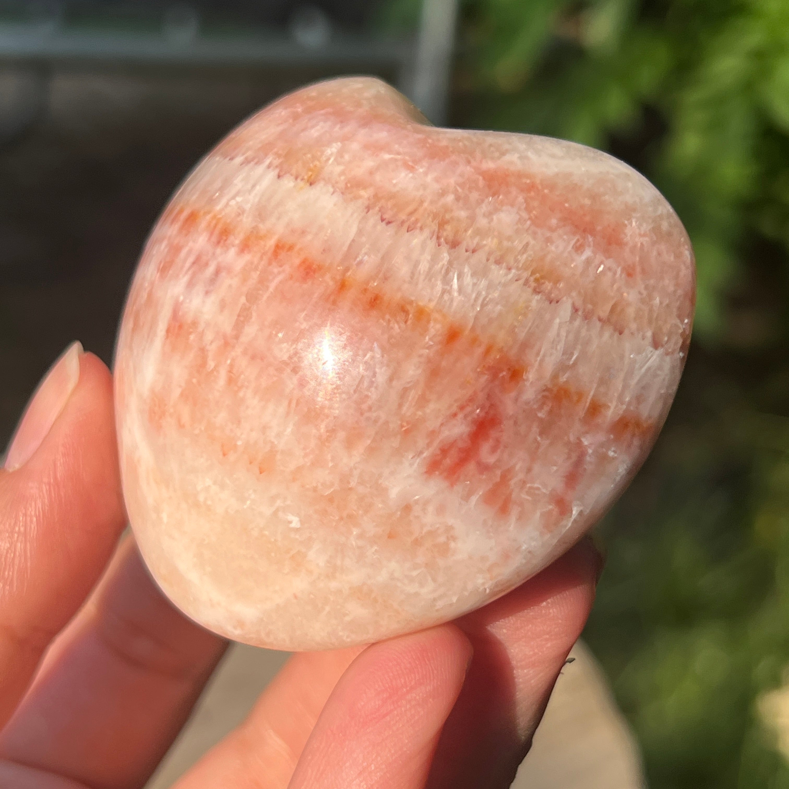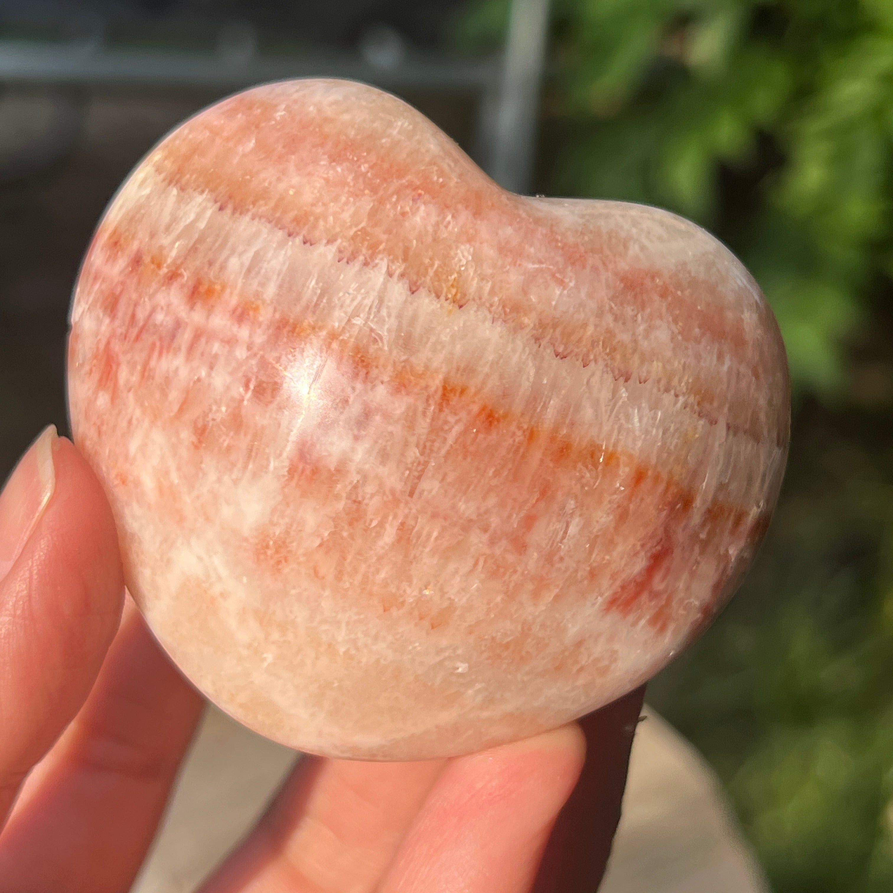 Ez a kézzel csiszolt csíkos rózsaszín kalcit szív melegséget és megnyugtató hangulatot hoz bármely térbe. Az enyhe rózsaszín árnyalatok, a fehér vagy krémes csíkokkal kombinálva, finomságot, belső egyensúlyt és lelki védelmet idéznek.