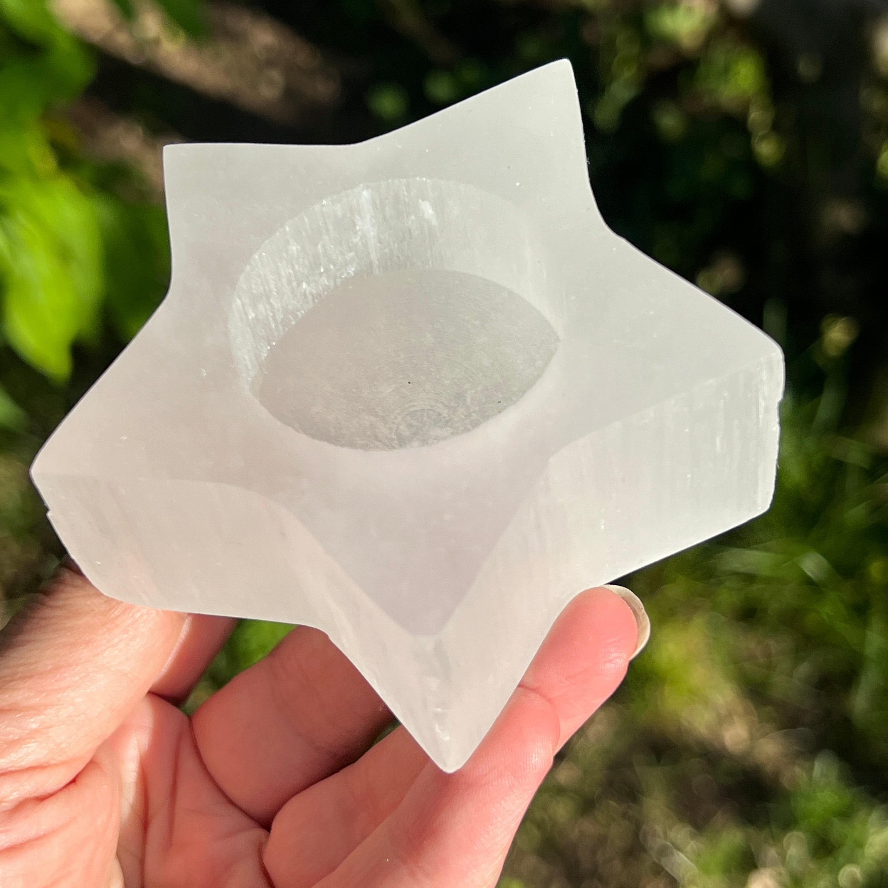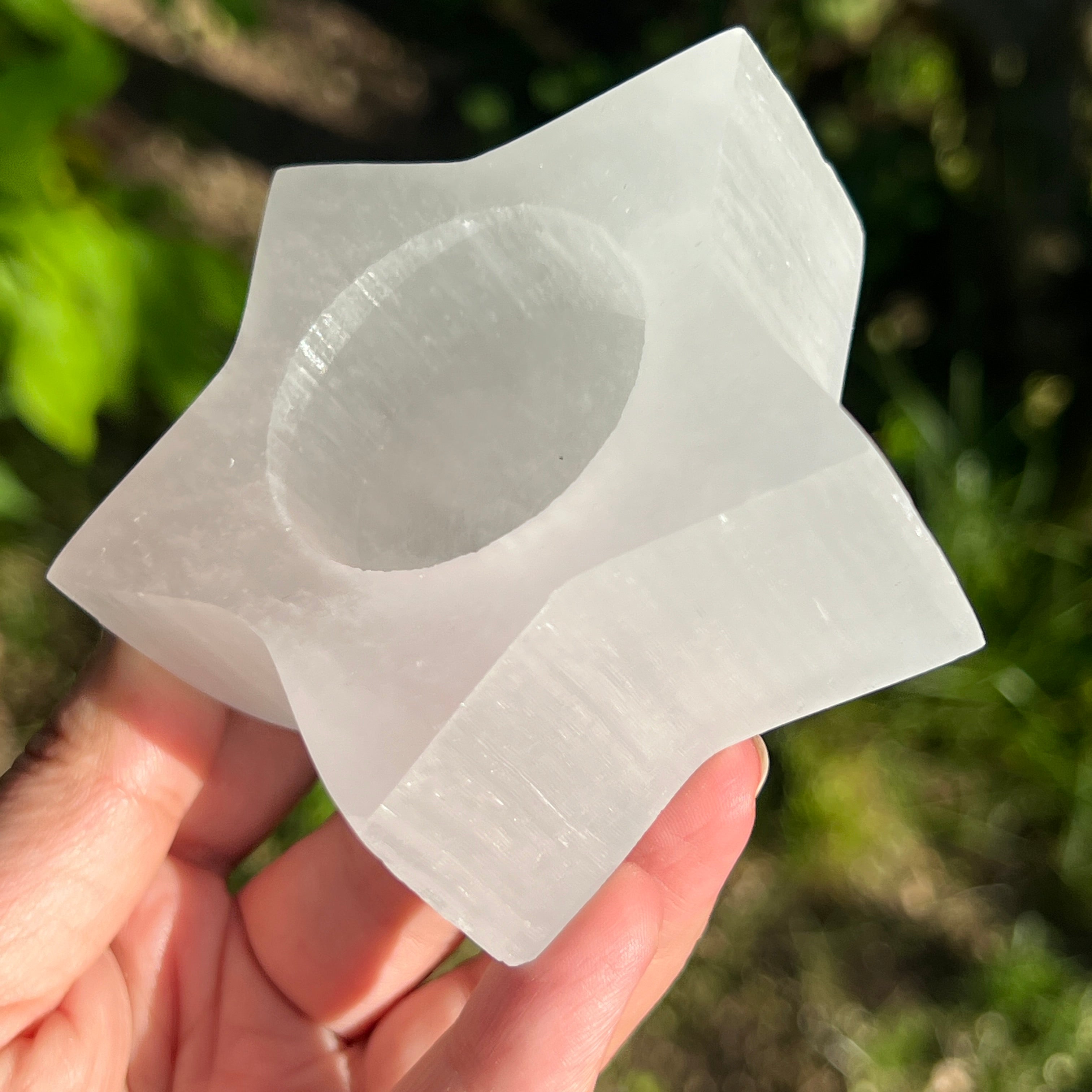 Csillag szelenit gyertyatartó, méret: 8,4*7,1*3,3cm.