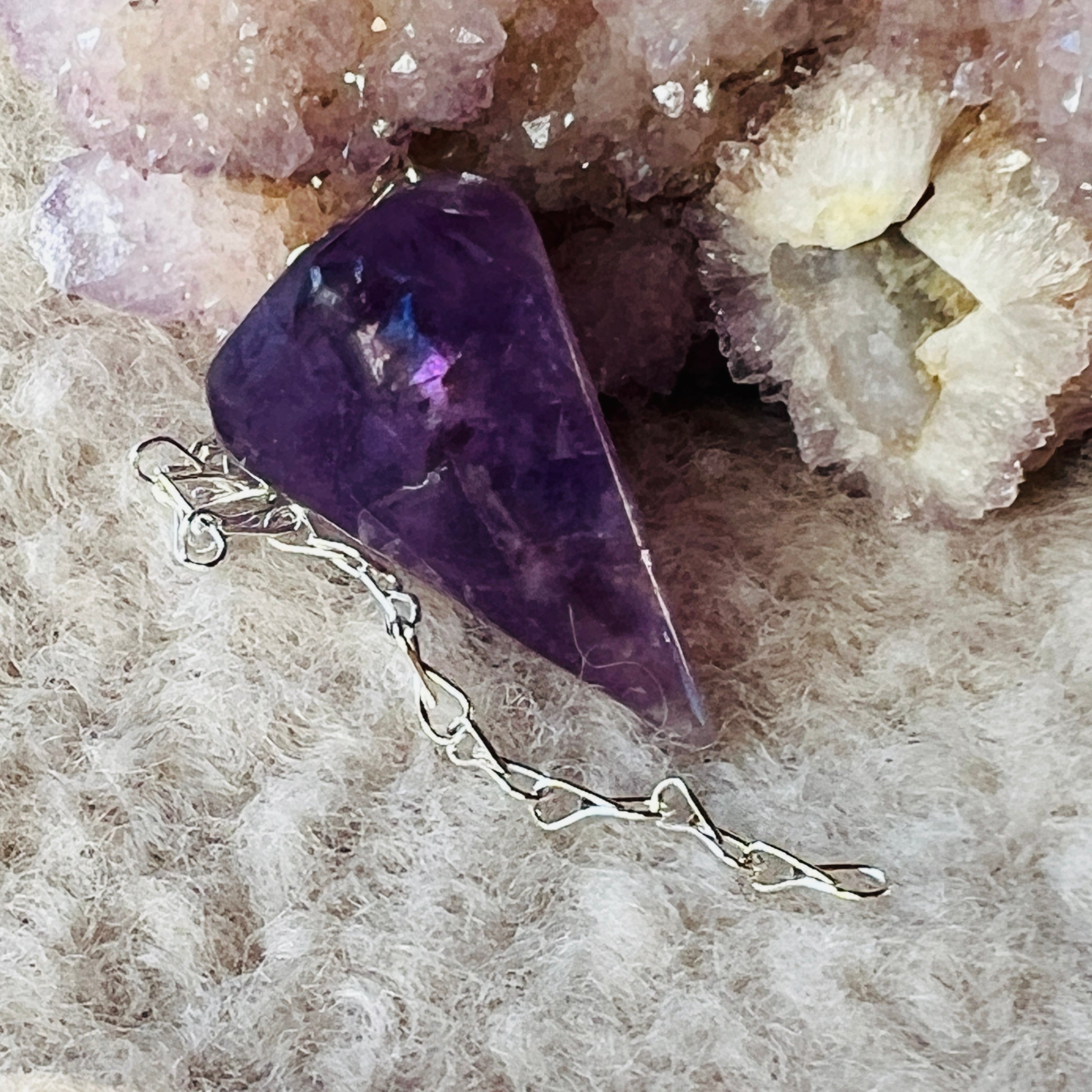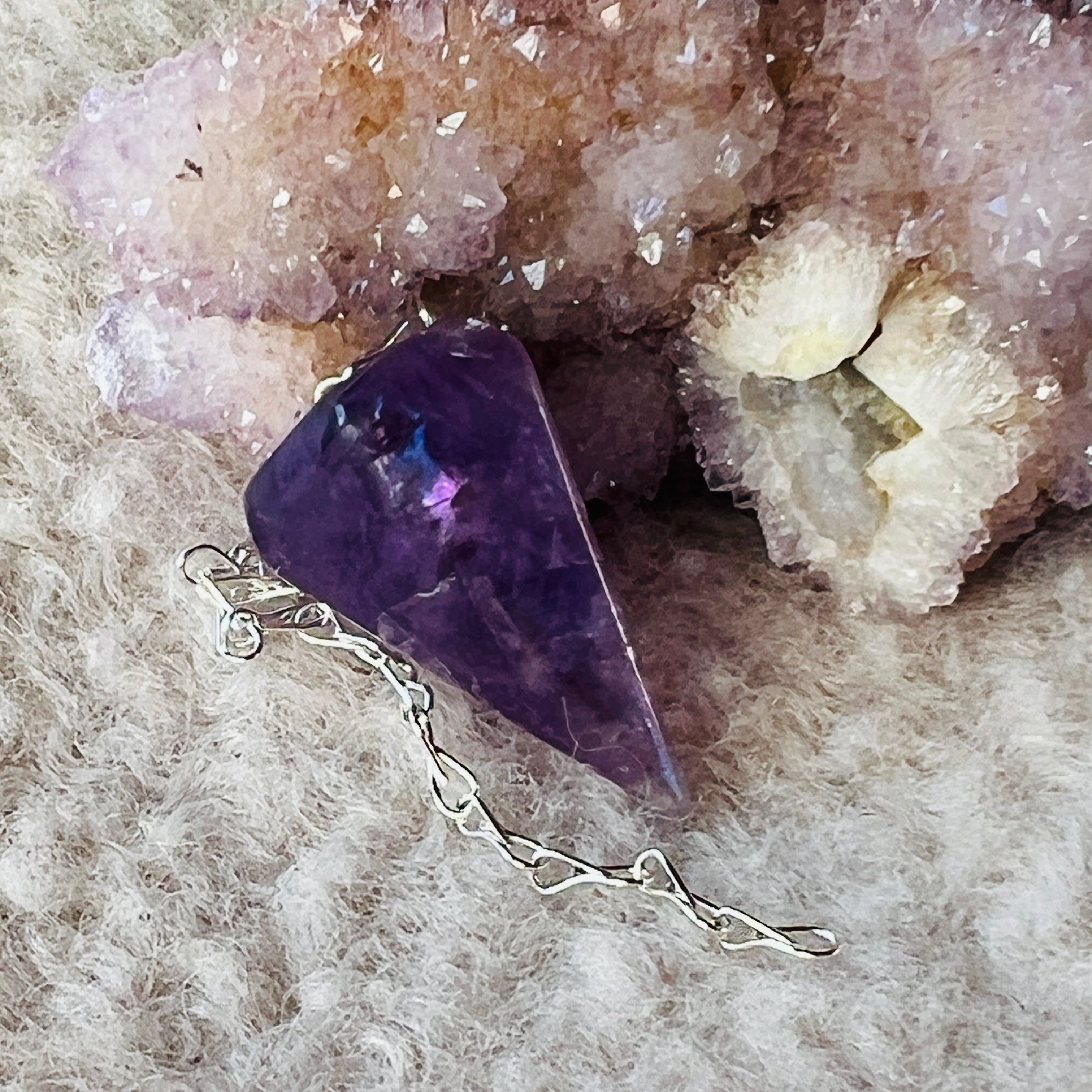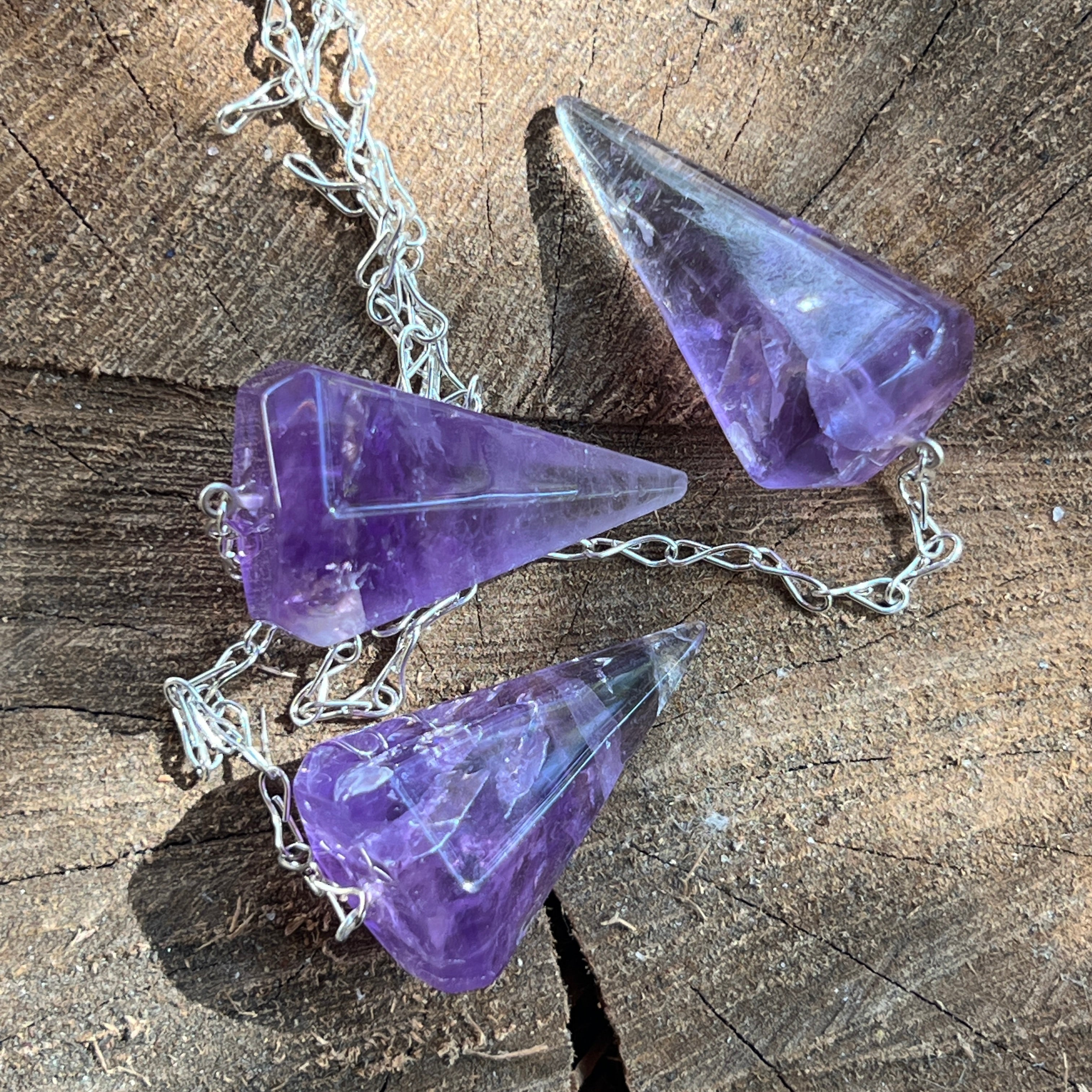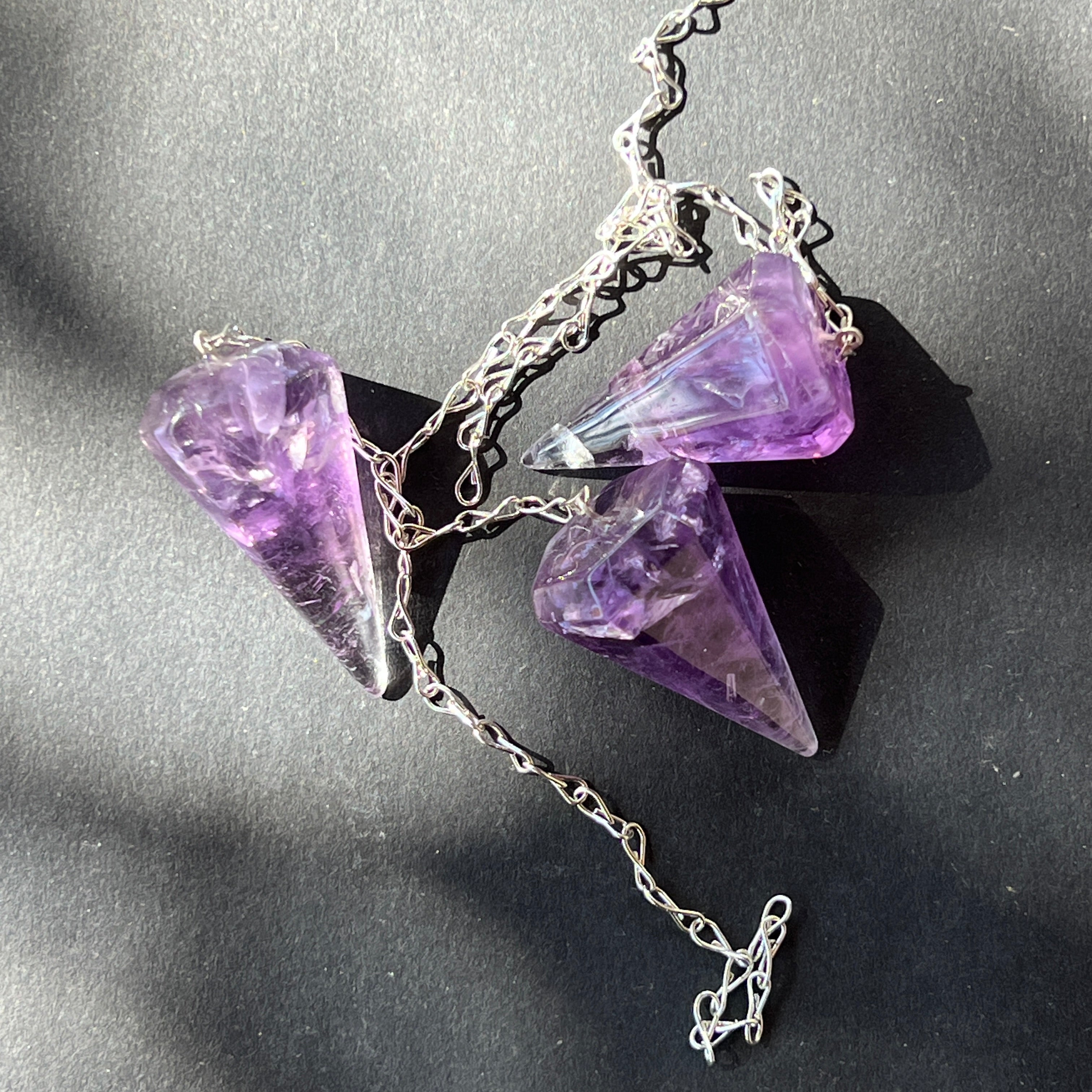 Csiszolt ametiszt inga, egyszerű zsinórral
