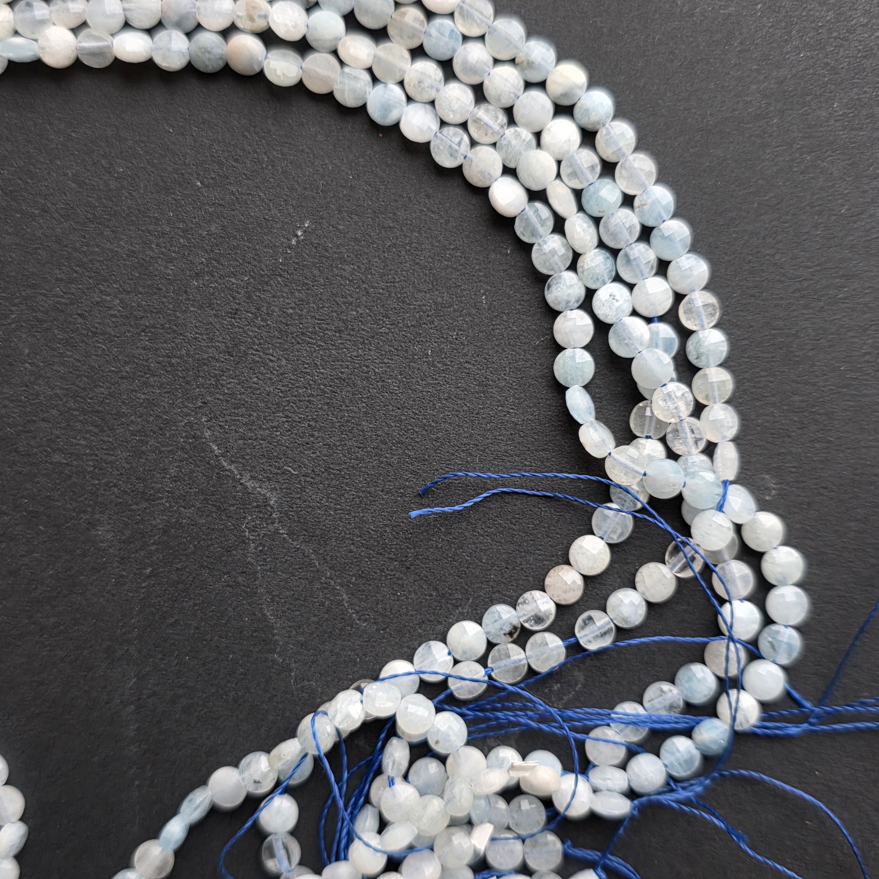 ACVAMARIN gyöngysor, természetes csiszolt tárcsákból áll, tökéletes nyakláncokhoz, karkötőkhöz vagy más kézműves ékszerekhez.