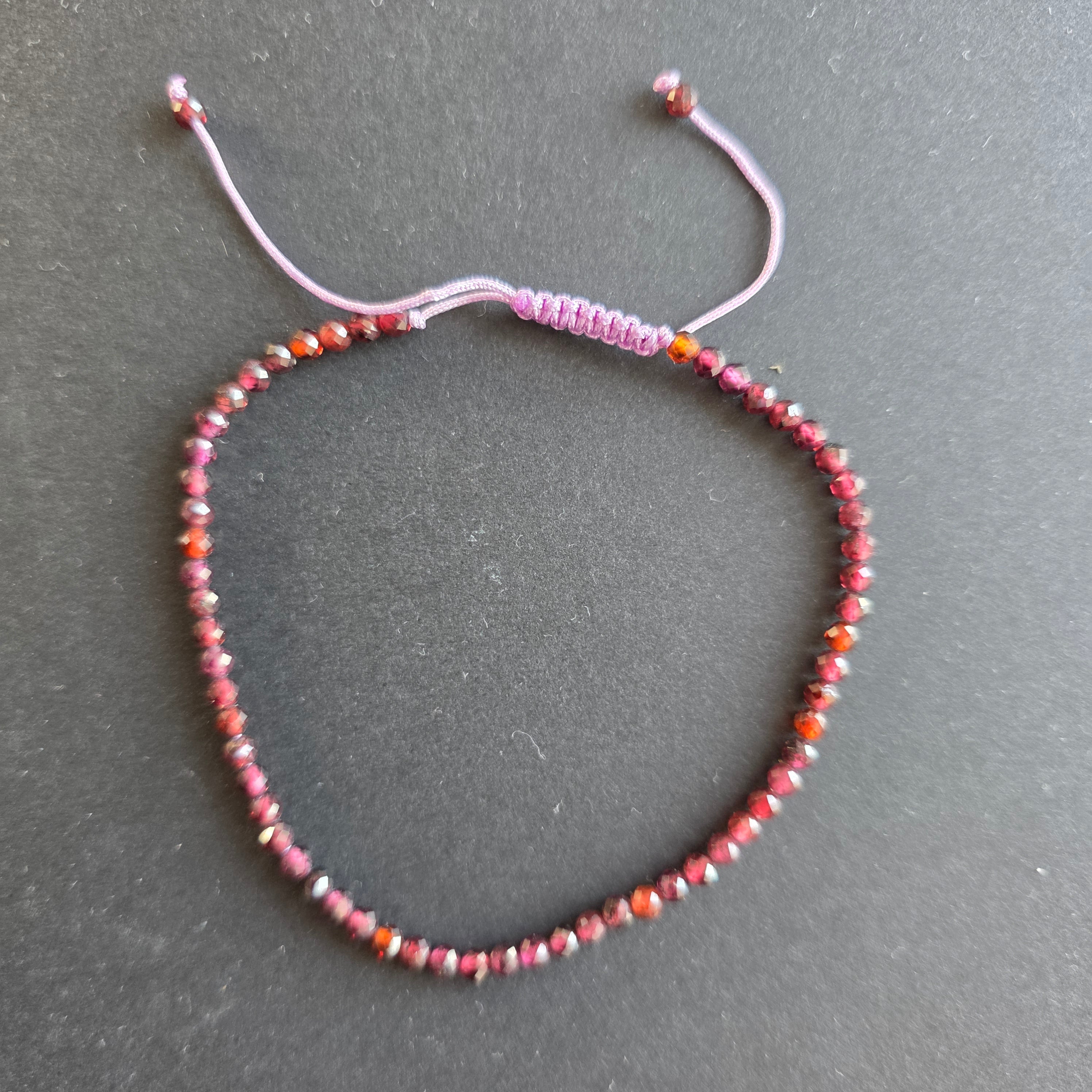 Csiszolt gránát karkötő 3 mm állítható zsinórral