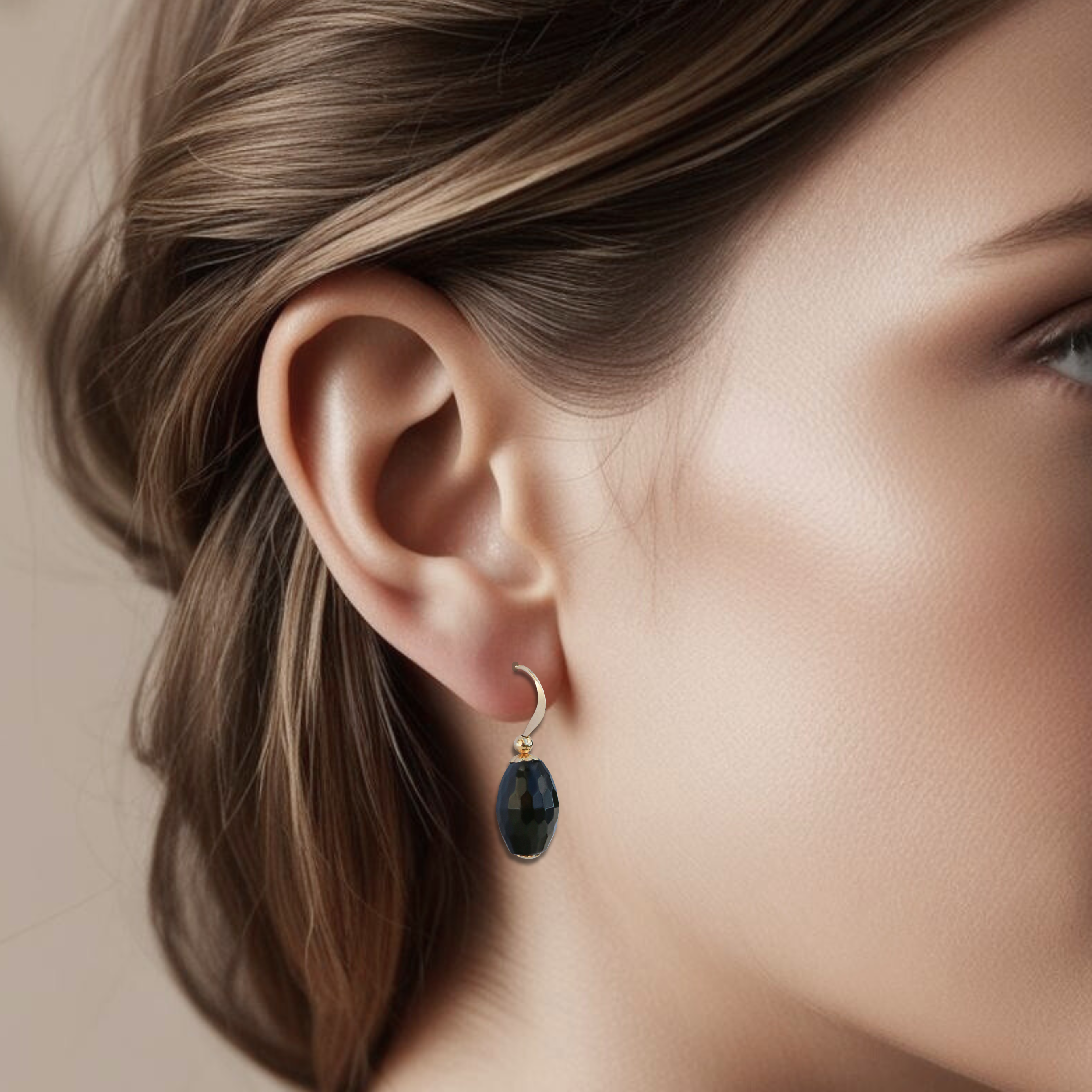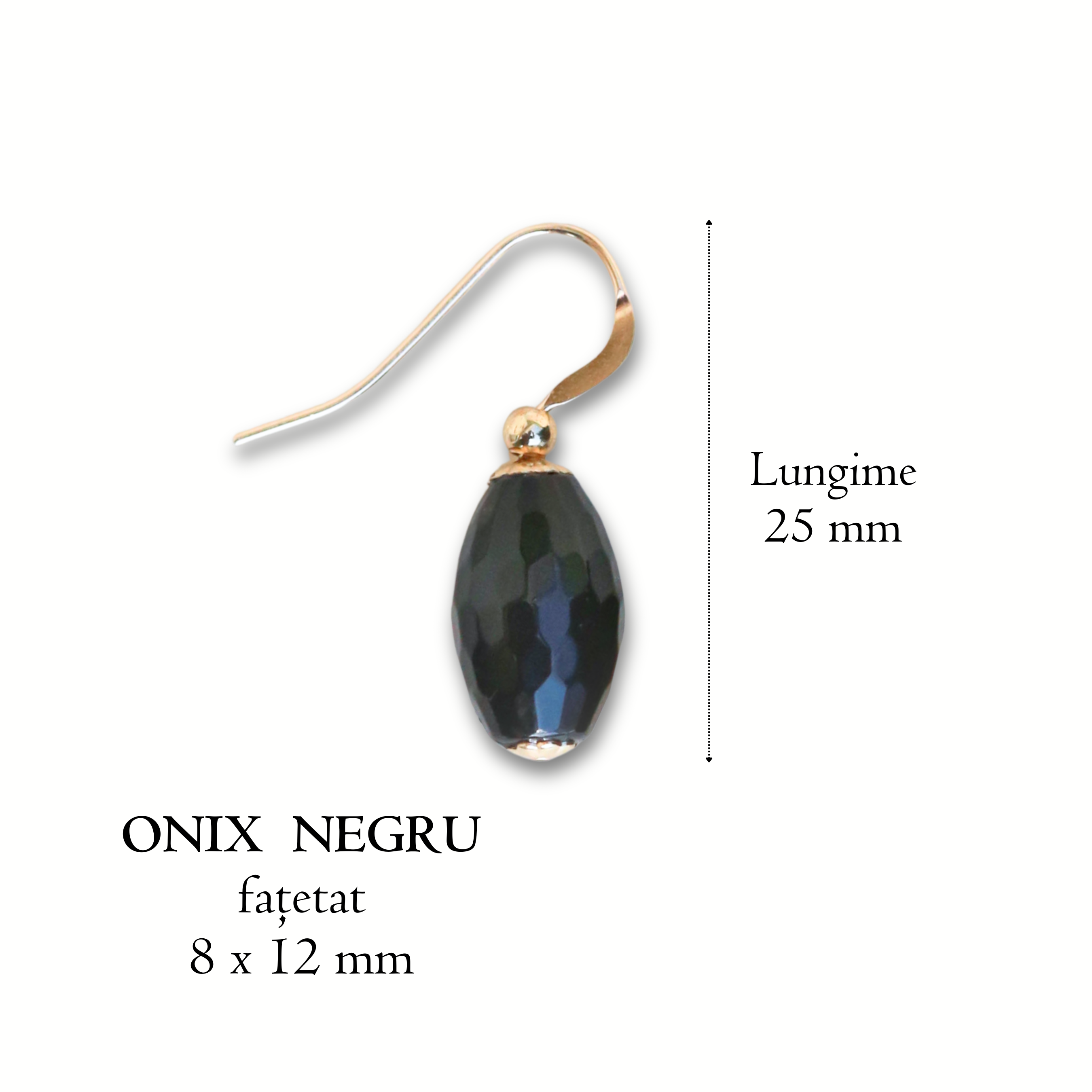 Descriere - Csiszolt ónix fülbevaló, aranyozott - Whisper of Strength #3